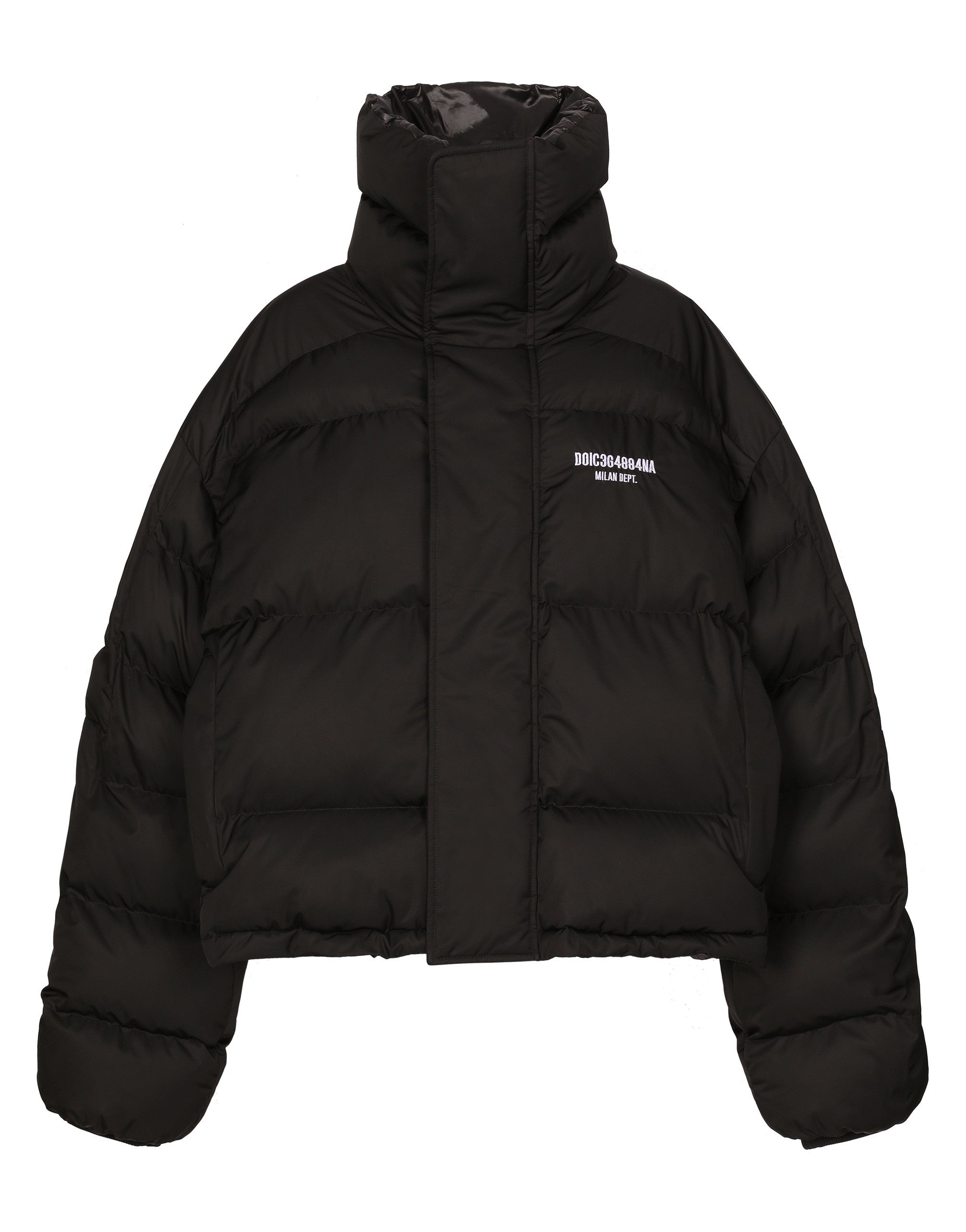 The new DGVIB3 collection is introducing us to the new language of Dolce&Gabbana: graphic taste and music are the keywords. All the prints, symbols, oversize volumes, new shapes, lengths and urban/street influences that we find in the collection are there precisely to recreate a unisex aesthetic, one that isn't tied to any specific physicality, yet with the specific desire to respect the characteristics of both sexes and convey a new and as-yet unexplored side of the Dolce&Gabbana world. Padded nylon down jacket with high neck: • Black • High neck • Long sleeves • Zipped front pockets • Wad padding • Nylon lining • Front zipper fastening • The piece measures 66 cm from the center back on a size IT 40 • The model is 175 cm tall and wears a size IT 54 • Made in Italy