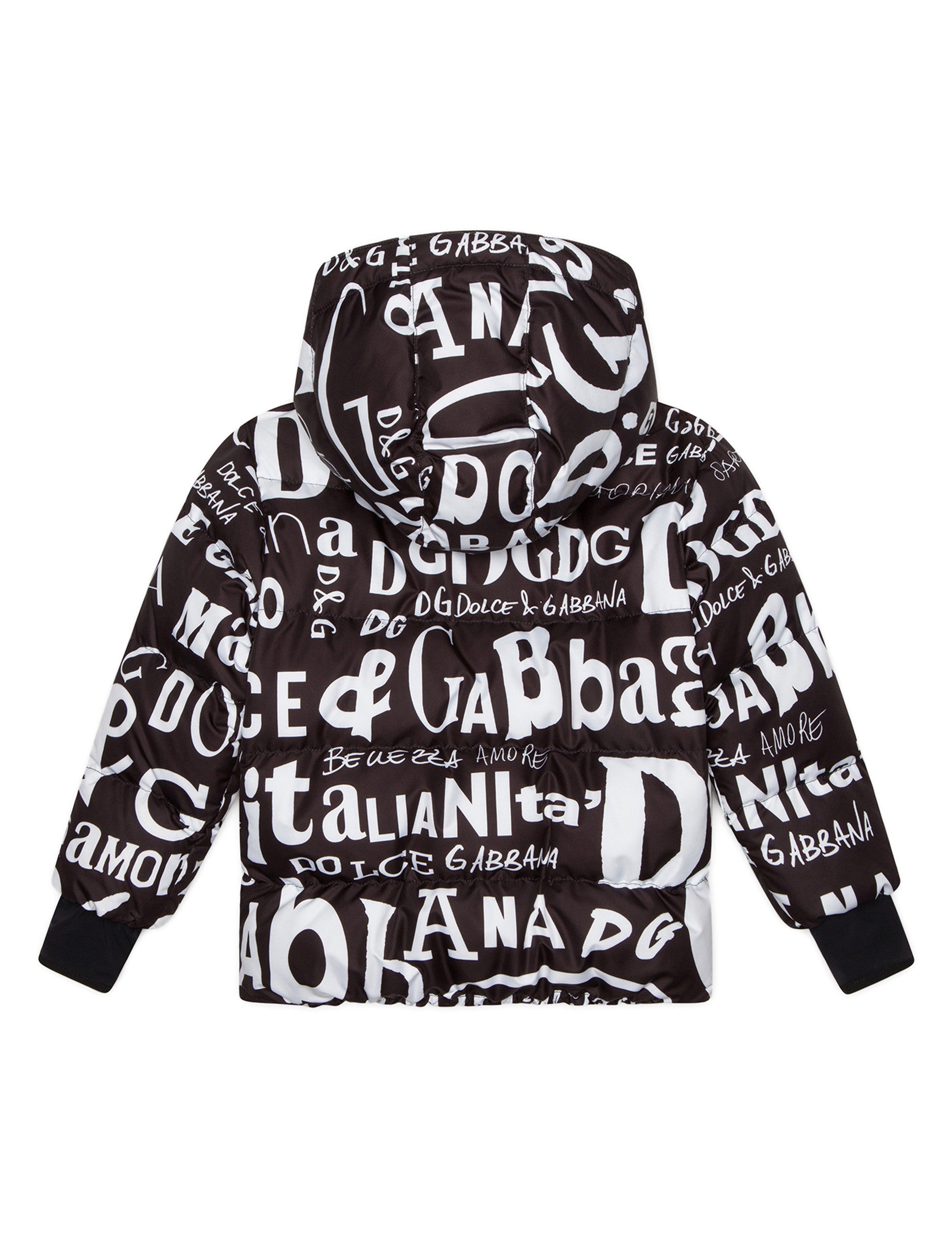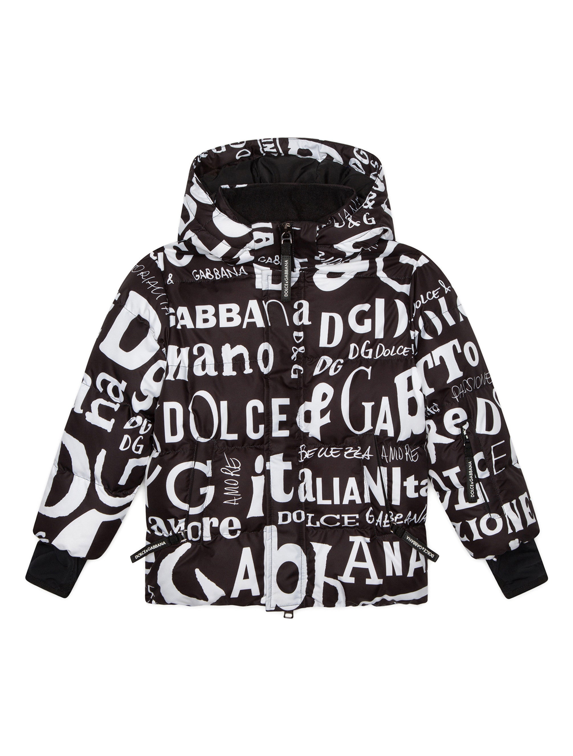 A staple of our winter collections and designed to add a glamorous touch to all children, even on the ski slopes, the Snow capsule collection is being presented with a new logo inspired by chalk writing on the chalk board. This water-repellent padded nylon ski jacket with print is a technical garment that is perfect for children who want to practice mountain sports, yet stay warm and comfortable. • Regular fit • Detachable hood • Long sleeves • Detachable windproof cuffs with thumb holes in run-resistant technical fabric • Zipped pockets and branded rubberized pull-tab • Inner, windproof powder skirt with jacquard logo • Zipped inner pocket with cable opening • Cloth for cleaning ski goggles • Lined • Padded • Front zipper featuring a double slider with pull-tab featuring the rubberized logo and concealed press-stud fastenings • The item in the size 3 years measures 45 cm from the shoulder seam • Made in Italy