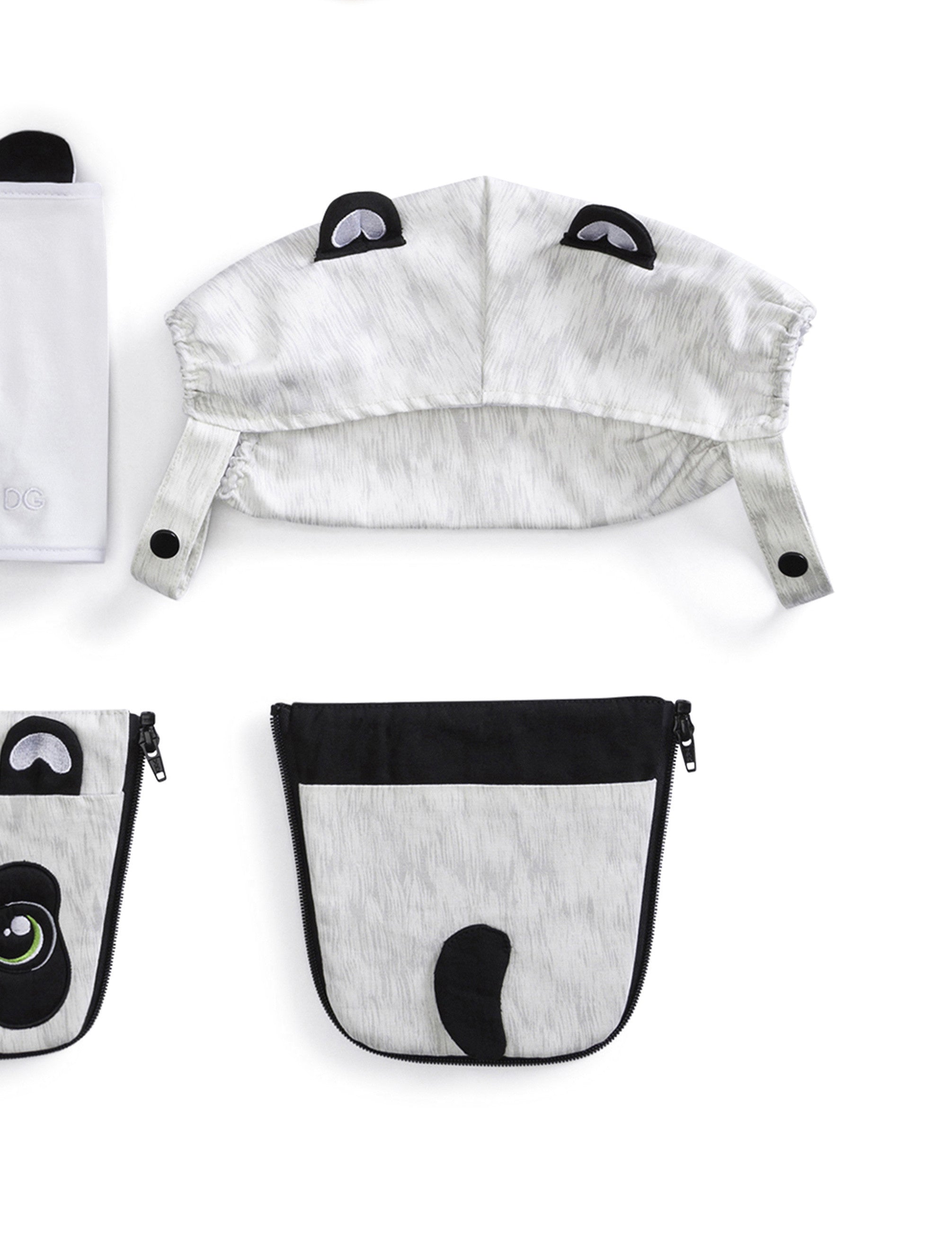The newborn collection is perfect to accompany children in their development and is designed to respond to the needs of little ones, in times of movement, play and creativity. Panda print cover for baby carrier. The package includes. • Panda snout pocket • Panda head cover • Back pocket with panda tail • Back strap covers with panda paws