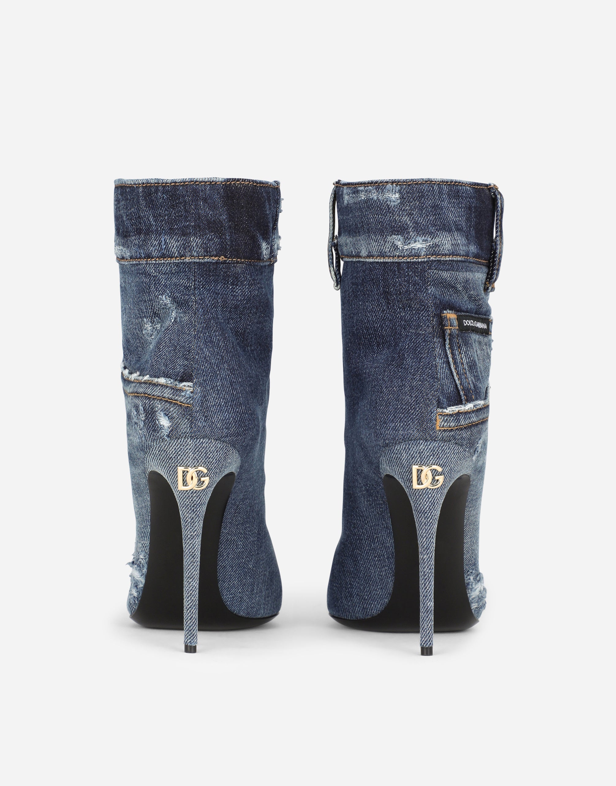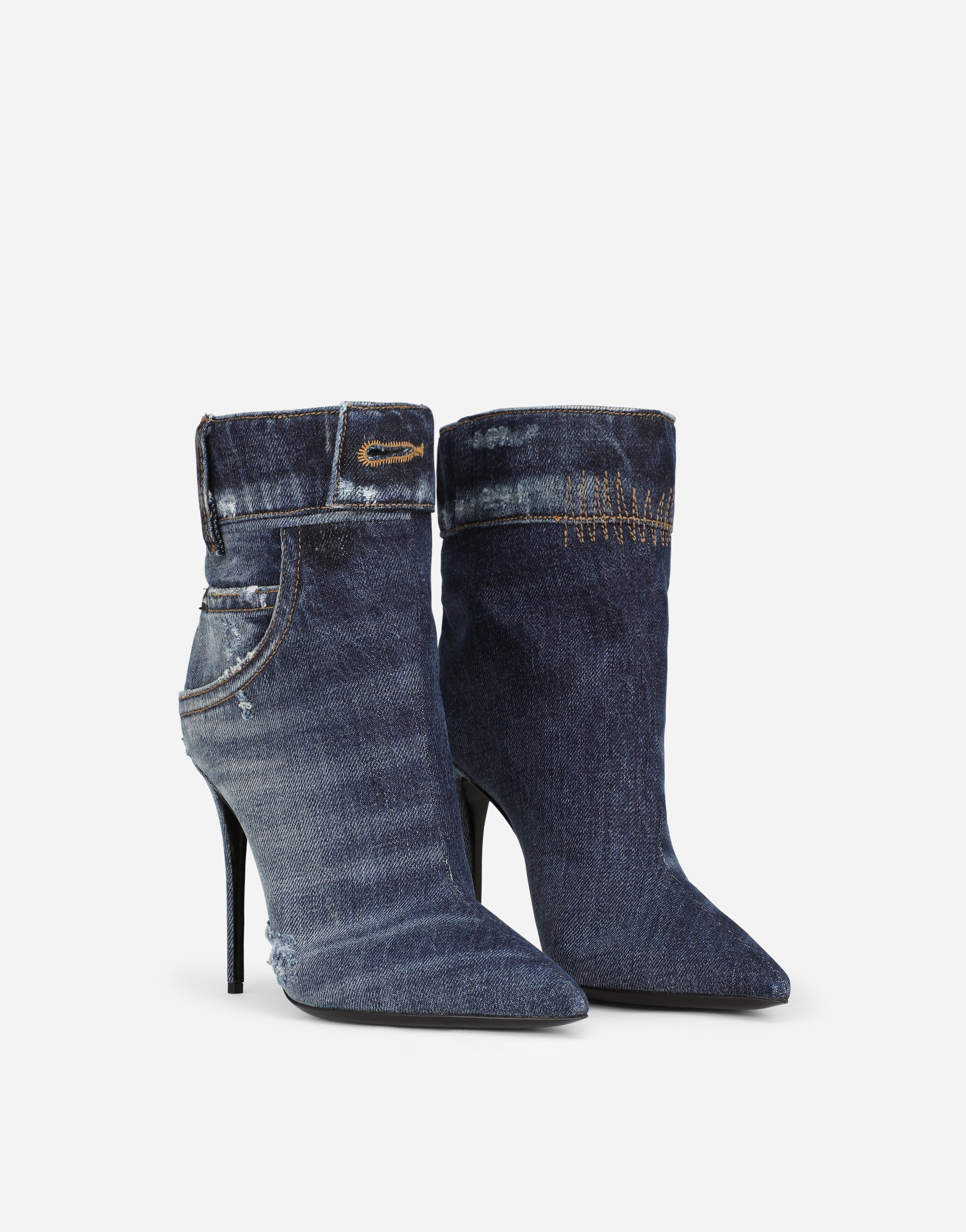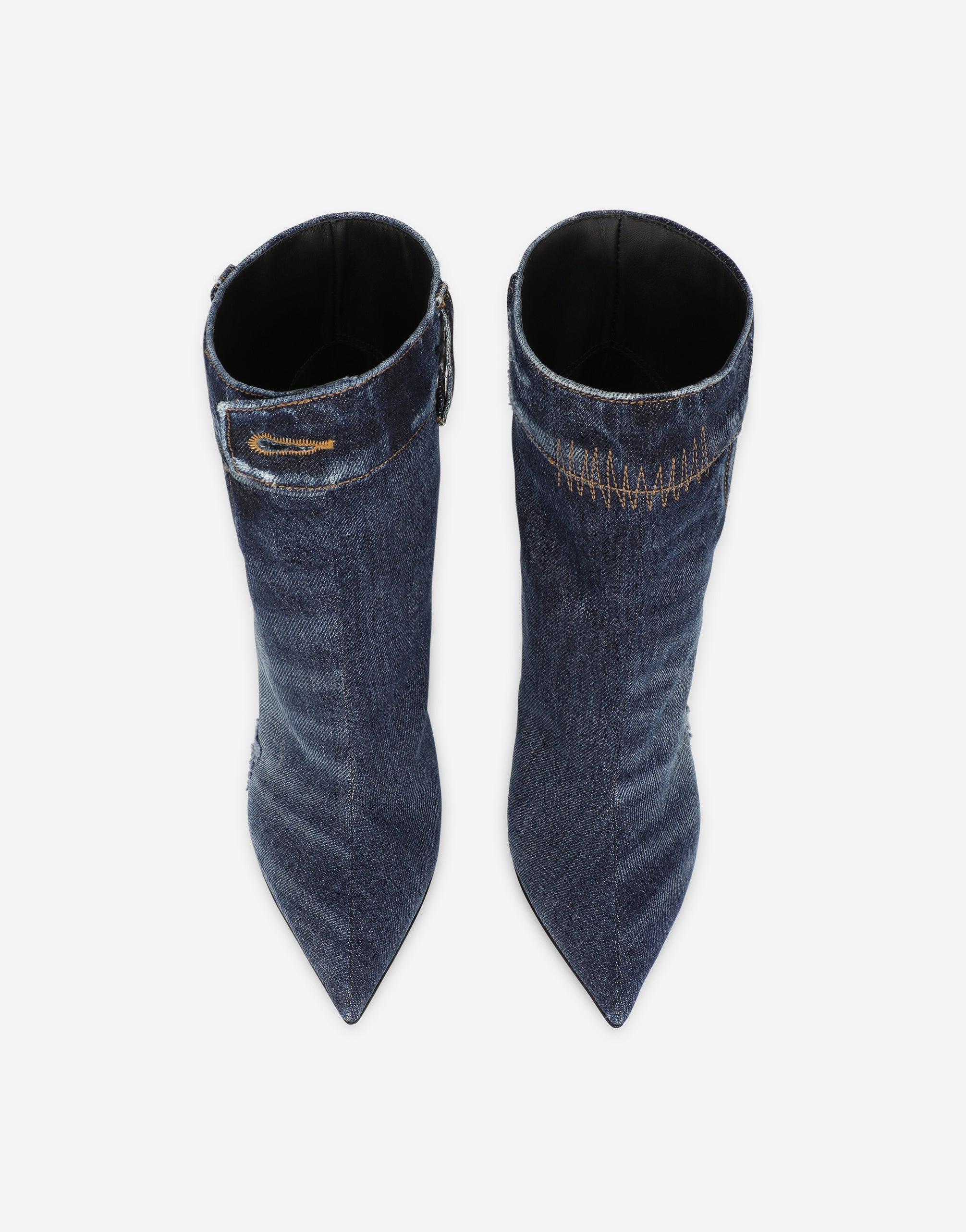 The new patchwork denim collection is the result of an evocative journey back to the brand’s roots, which have been reworked to add contemporary edge. A tribute to craftsmanship and the handmade, these Cardinale ankle boots come in patchwork denim and feature the new DG logo on the heel. • Patchwork denim upper • 105 mm - 4.1 inches heel • Kidskin insole with branded label • Branded leather sole • Item comes with themed packaging • Made in Italy