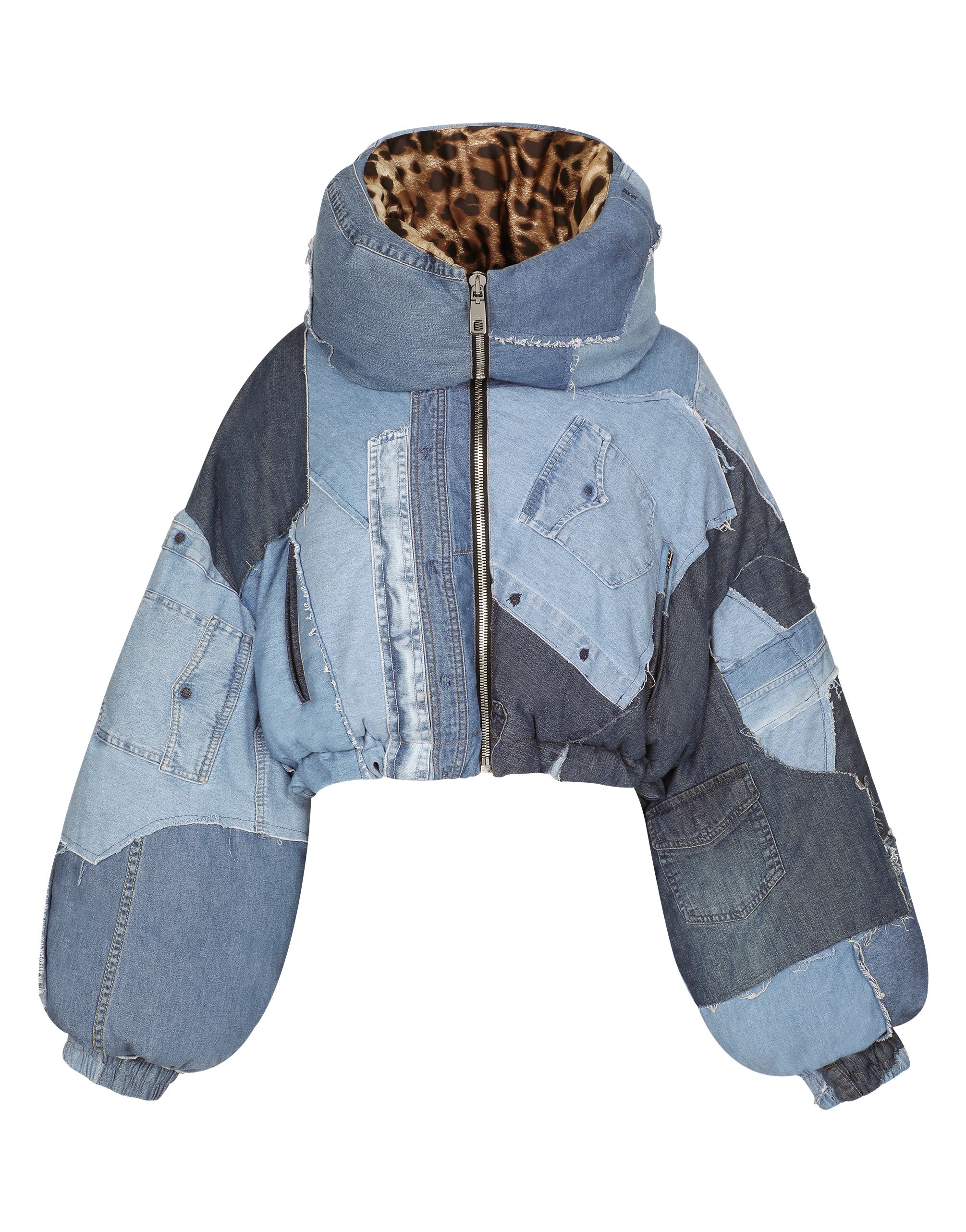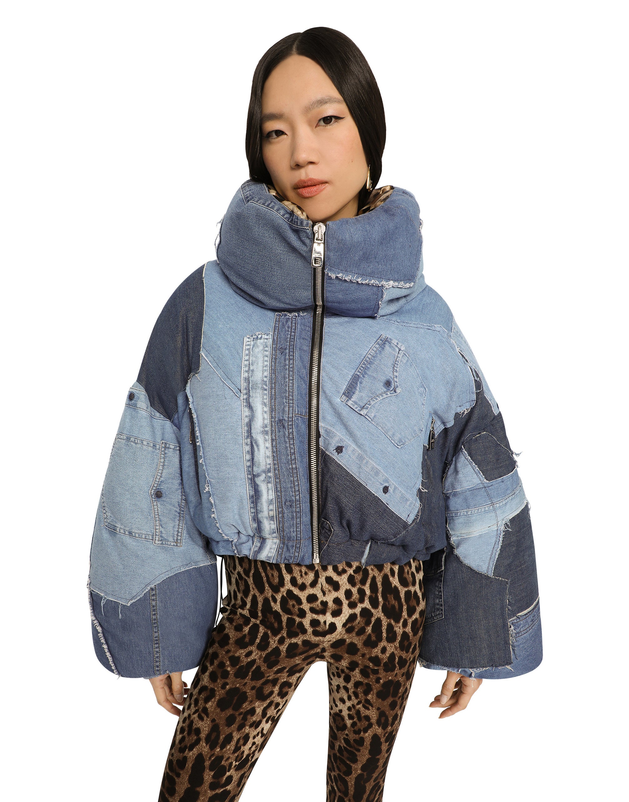 With its original flair, Dolce&Gabbana is reworking denim, a cult material that is rich in history, to create glamorous garments with patchwork detailing, which are unique and unmistakable and perfect for every style and personality. Patchwork denim down jacket: • Cowl neck • Long sleeves with elasticated cuffs • Cropped fit • Elasticated drawstring hem • Eco-sustainable padding • Leopard-print stretch satin lining • Zipper fastening • The piece measures 51 cm from the rear collar seam on a size IT 40 • The model is 175 cm tall and wears a size IT 40 • Made in Italy The difference in the print placement that you may find on this product is a feature of Dolce&Gabbana’s “Handmade” pieces. A detail that makes every garment or accessory unique and exclusive.