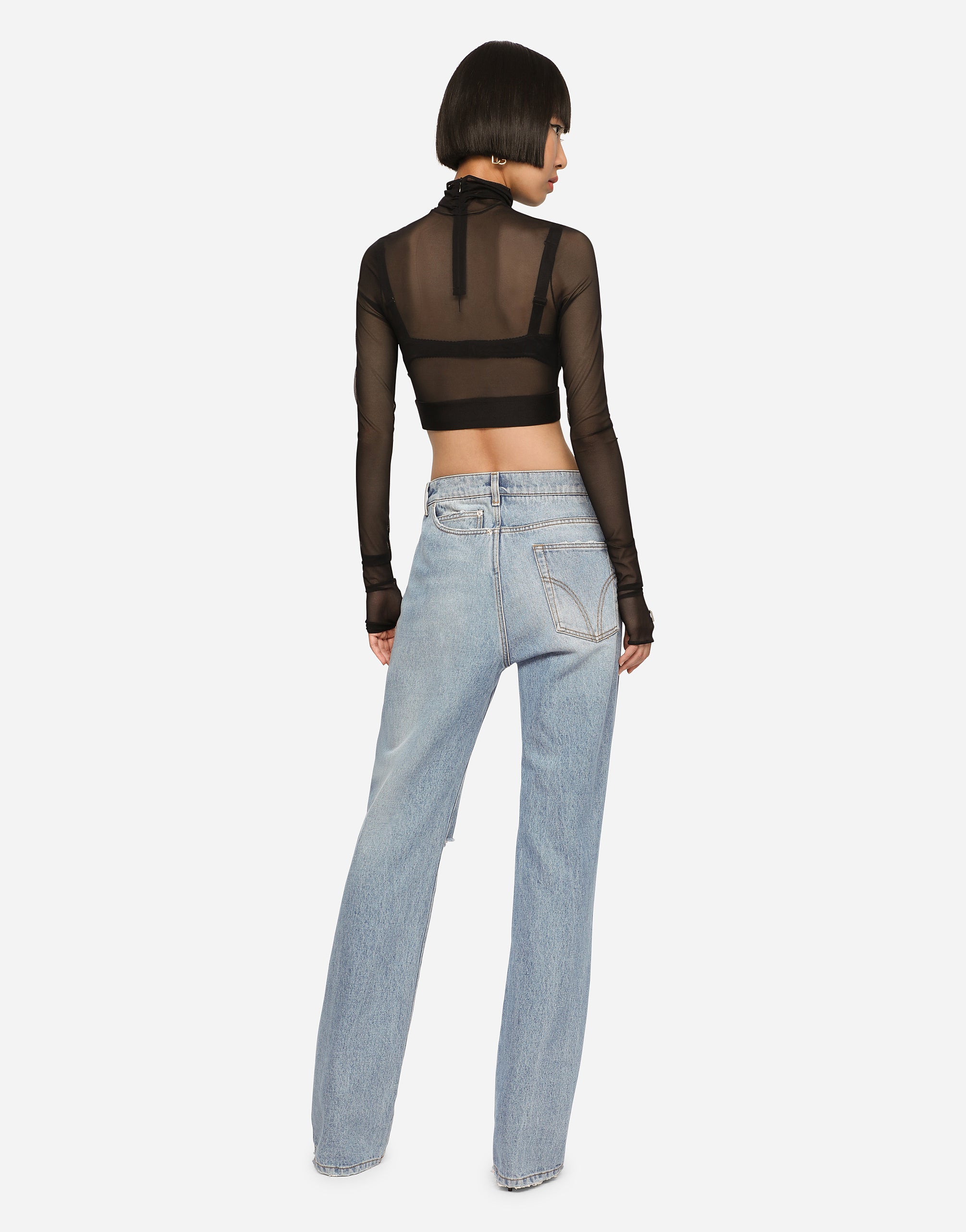 With its contemporary vision of denim, Dolce&Gabbana is thinking about a modern woman who is able to stand out on every occasion. Beauty and originality are the key words that provided the inspiration to give life to a collection of jeans with different silhouettes and rich details that flawlessly merges glamor and style. Patchwork denim jeans: • High-waisted • Branded metal and leather tag on the front pocket • Belt loops • Inner leg: 87.7 cm • Hem: 23.5 cm • Zipper and branded metal button fastening • The model is 175 cm tall and wears a size IT 40 • Made in Italy The difference in the print placement that you may find on this product is a feature of Dolce&Gabbana’s “Handmade” pieces. A detail that makes every garment or accessory unique and exclusive.