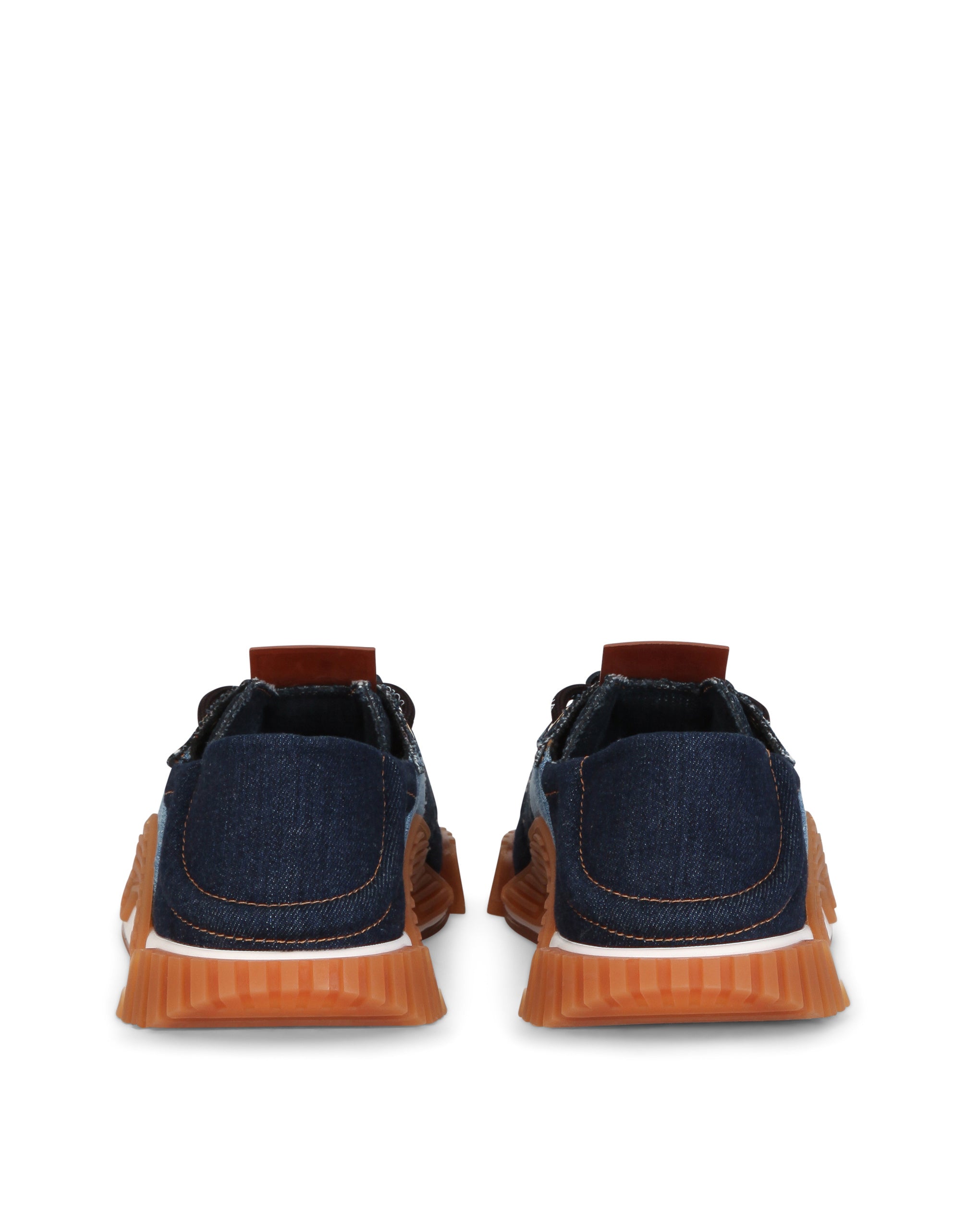 The “Parco dei Principi” collection has been inspired by the Italian architecture and design of the sixties, which have been translated into material, shape and volume layering. The sea and its colors are the key to this new collection, which represents an ode to the artistic beauty of our Mediterranean. Presented as the evolution of our iconic Sorrento style, these NS1 slip-on sneakers come in patchwork denim with rubber details and the leather tag with logo on the tongue. • Patchwork denim upper and rubber details • Branded leather tag on the tongue • Branded tubular laces • Calfskin footbed with branded label • Super-flex rubber sole with side details • Item comes with themed packaging • Made in Italy