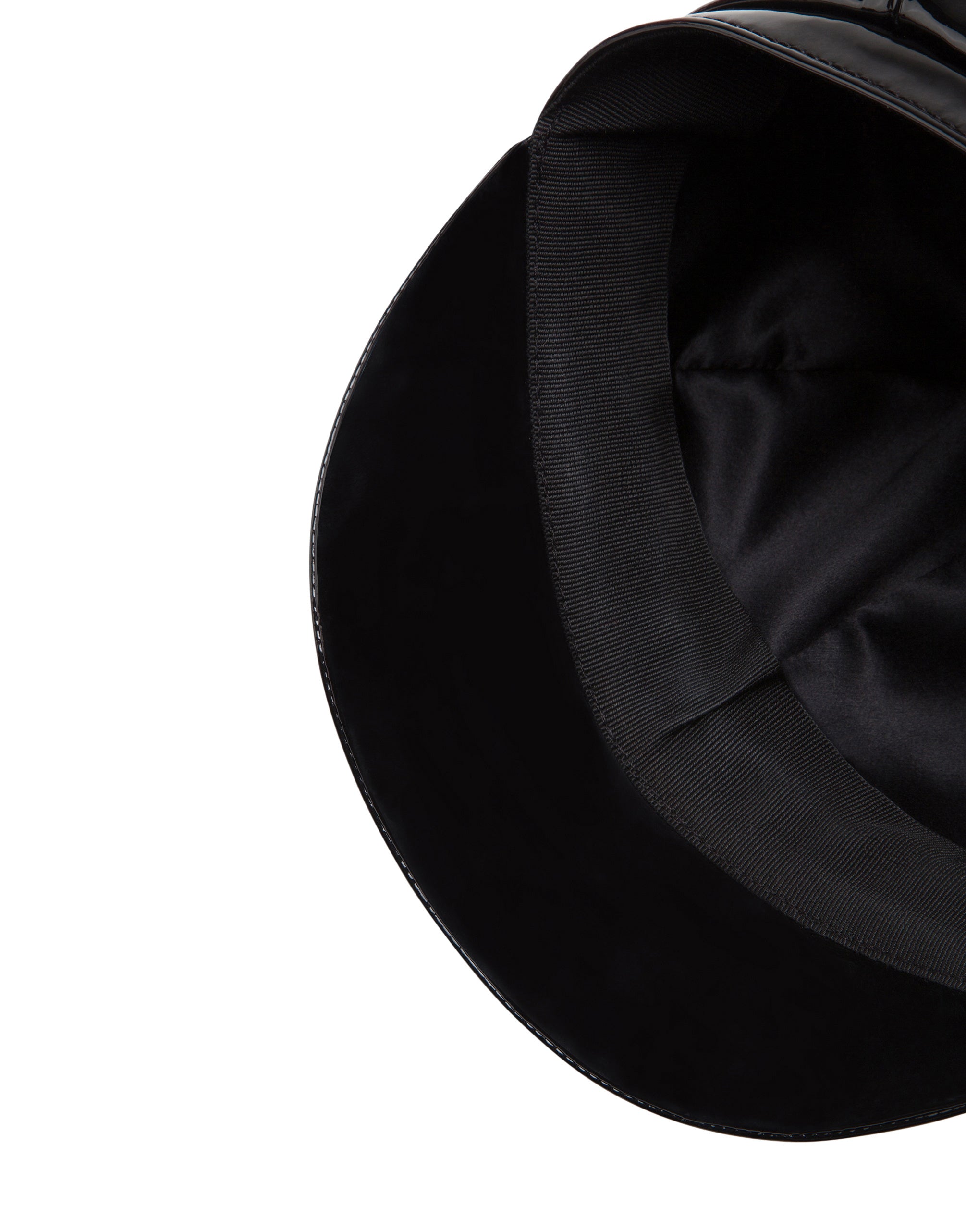 This hat takes us back to London during the Swinging Sixties. With its retro accent, it is sure to be the glam touch that you add to your looks: • Rigid peak • Inner gros-grain trim • Stretch silk satin lining • Branded metal DG detail • Made in Italy External composition: 100% Lambskin Internal composition: 100% Silk