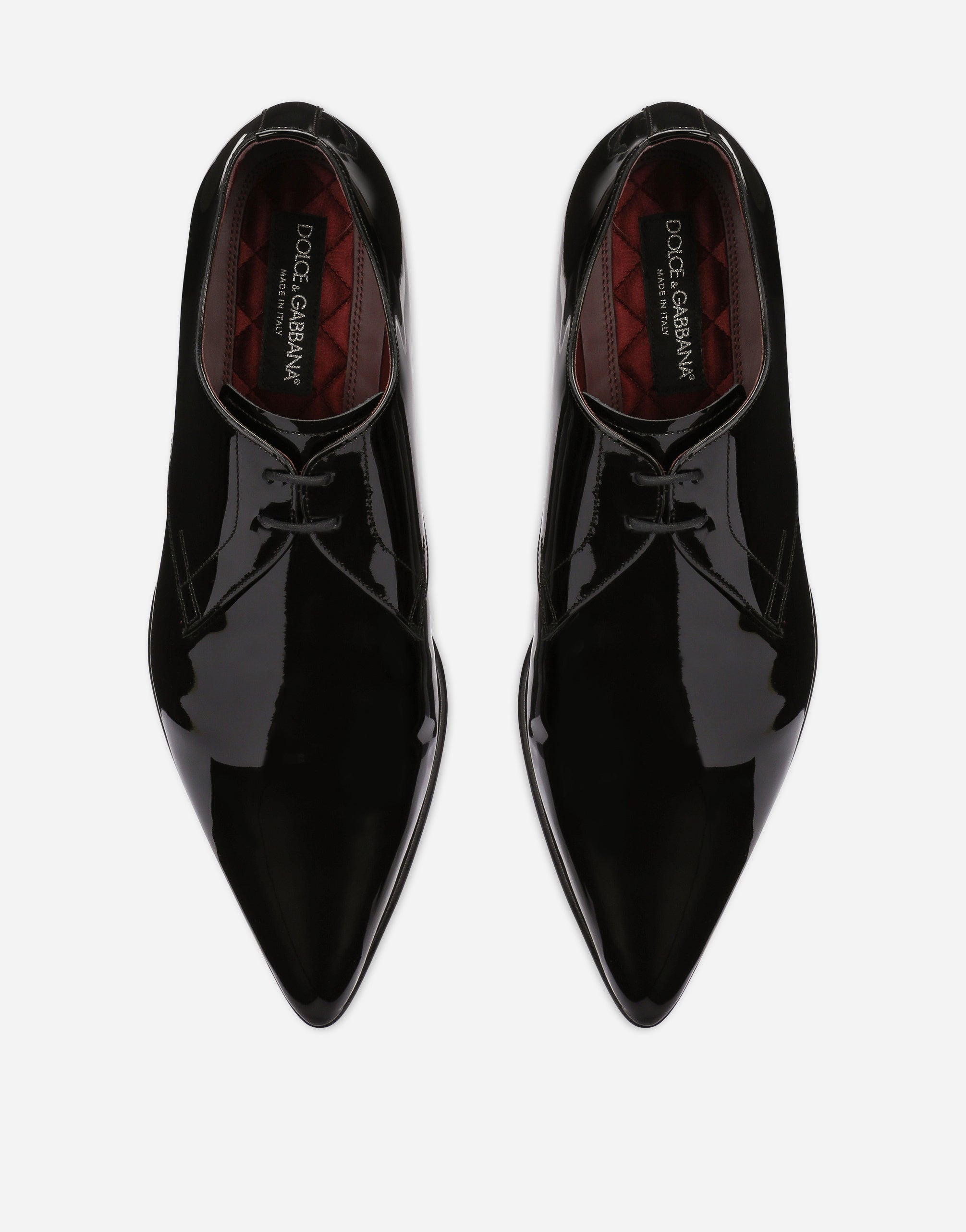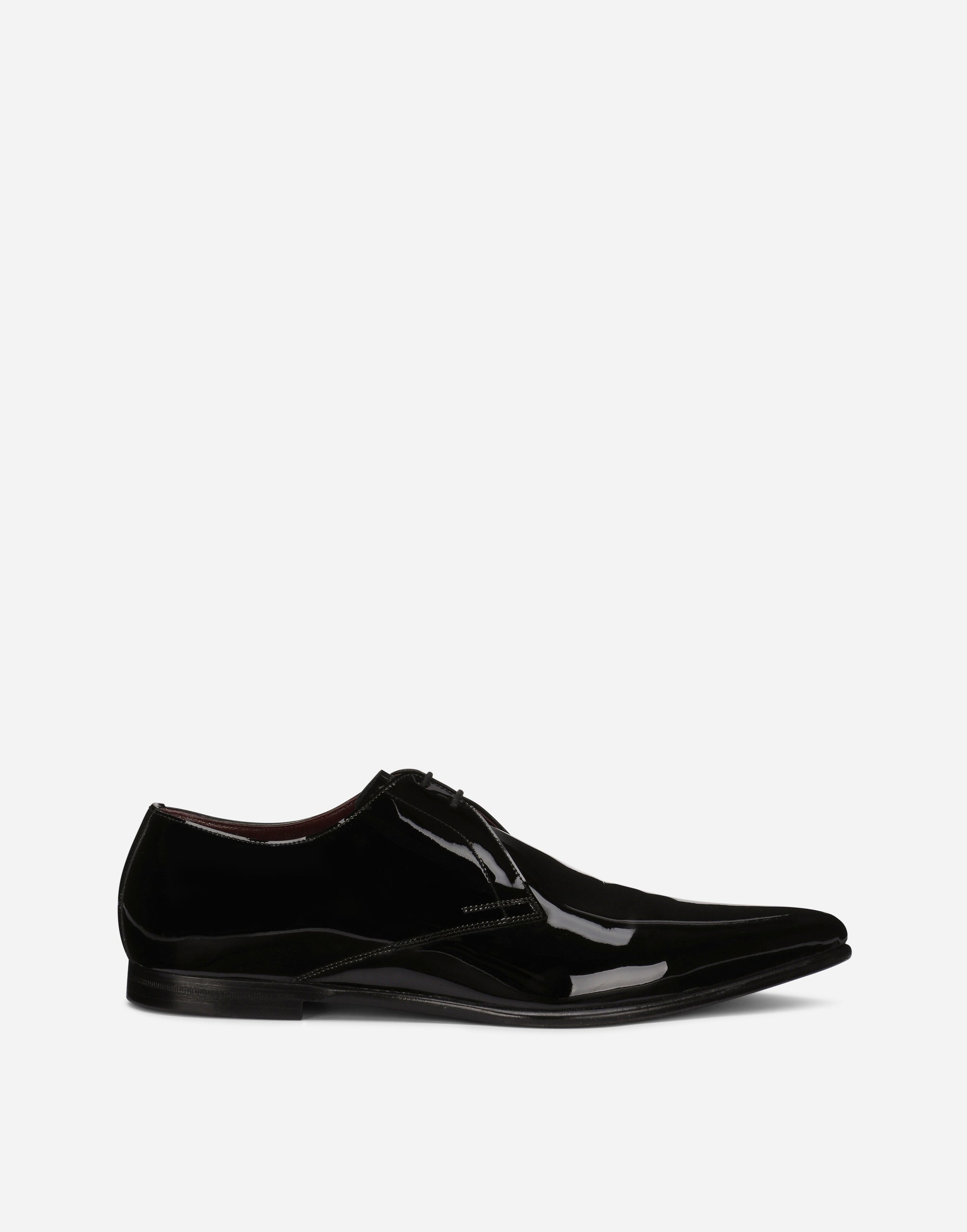 Flaunting bold, contemporary allure, these Achille Derby shoes come in 100% patent leather. • Waxed laces • Leather-covered heel • Leather insole with quilted satin insert and branded label • Leather sole • Made in Italy