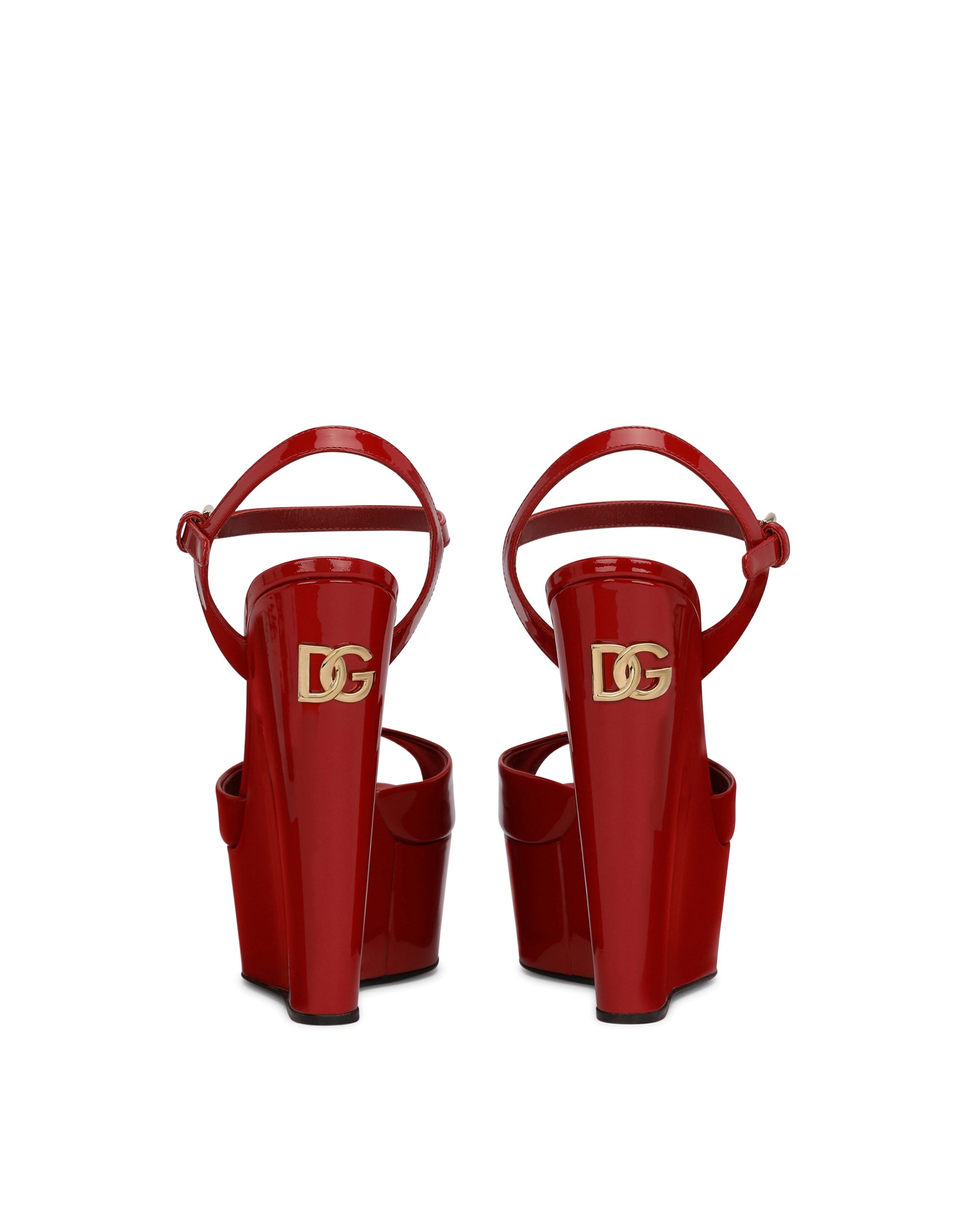 Feminine and versatile, these new Bianca wedges come in 100% patent leather with the gold-plated DG logo appliqué. Patent leather wedges: • Patent leather upper • 105-mm platform • Kidskin insole with branded label • Branded leather sole • Made in Italy