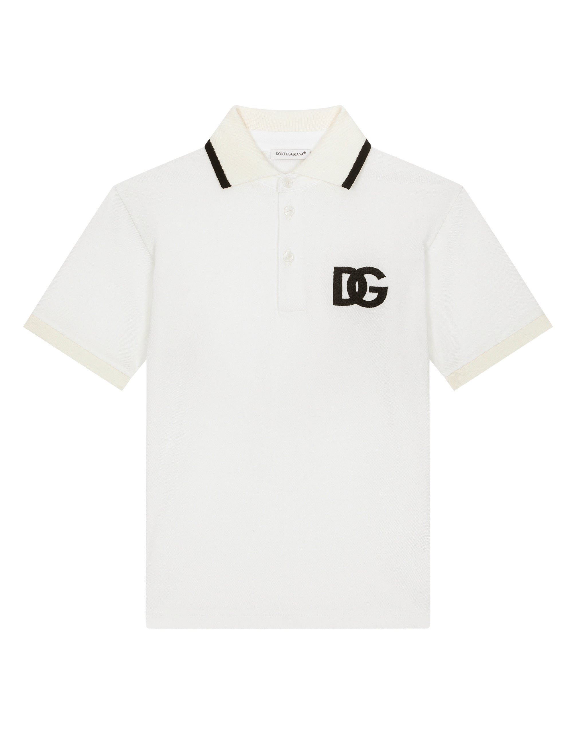 The DG Essential collection is a mix of iconic pieces that flaunt timeless design, the distinctive feature of Dolce&Gabbana’s style. The logo adorns sporty-chic pieces that are perfect for everyday wear. This piqué polo-shirt features the DG logo embroidery. • Oversize fit • Stretch knit polo collar • Short sleeves with stretch knit trim • DG logo embroidery on the front • Side slits • Logo-detailed button fastenings • The item in the size 3 years measures 46 cm from the shoulder seam • Made in Italy