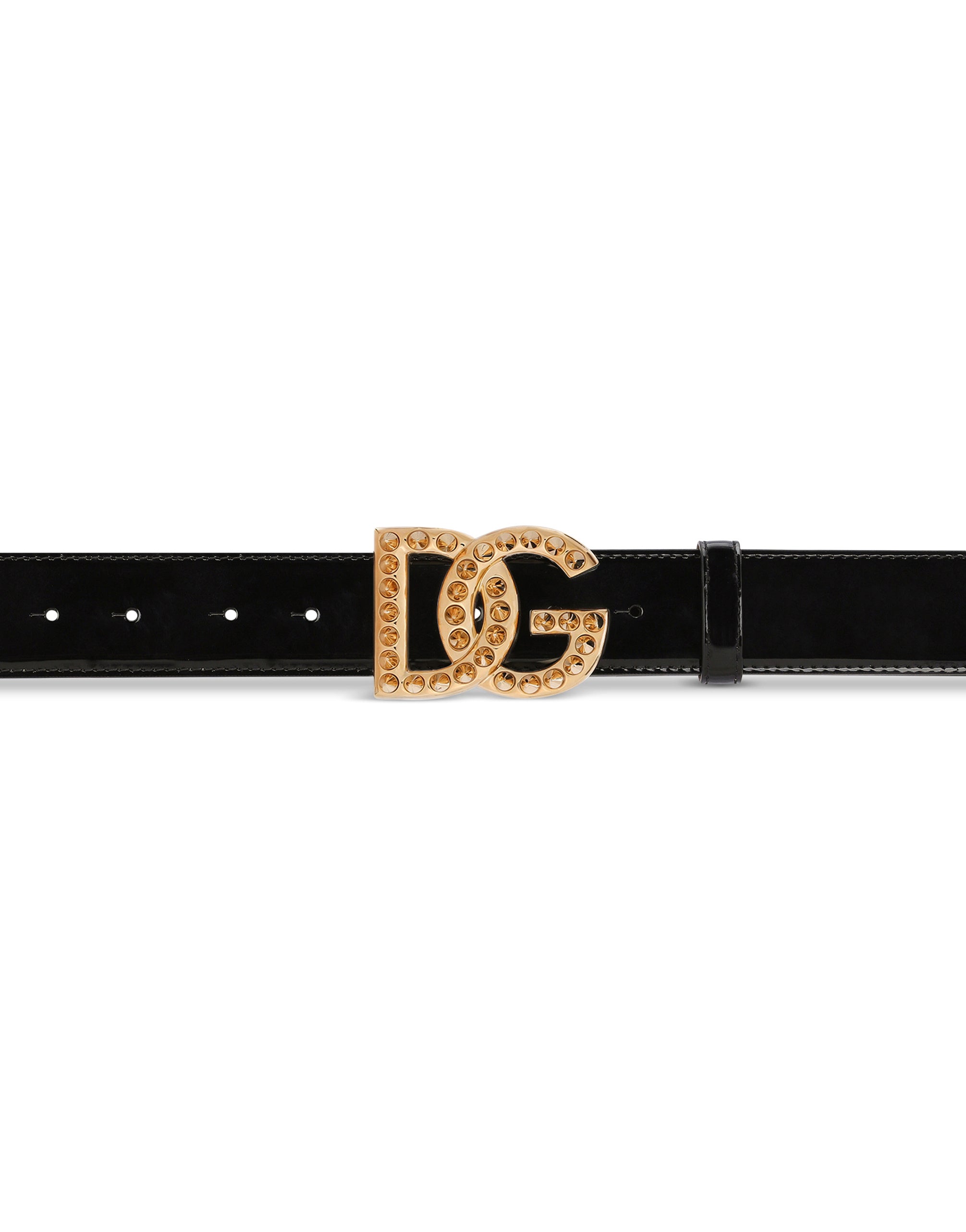 This new belt comes in polished calfskin. Flaunting bold allure, it features the DG buckle logo with stud appliqué. • The belt strap is 40 mm in height • Light gold-plated buckle • Dome popper fastening beneath the buckle and belt loop stop • Made in Italy