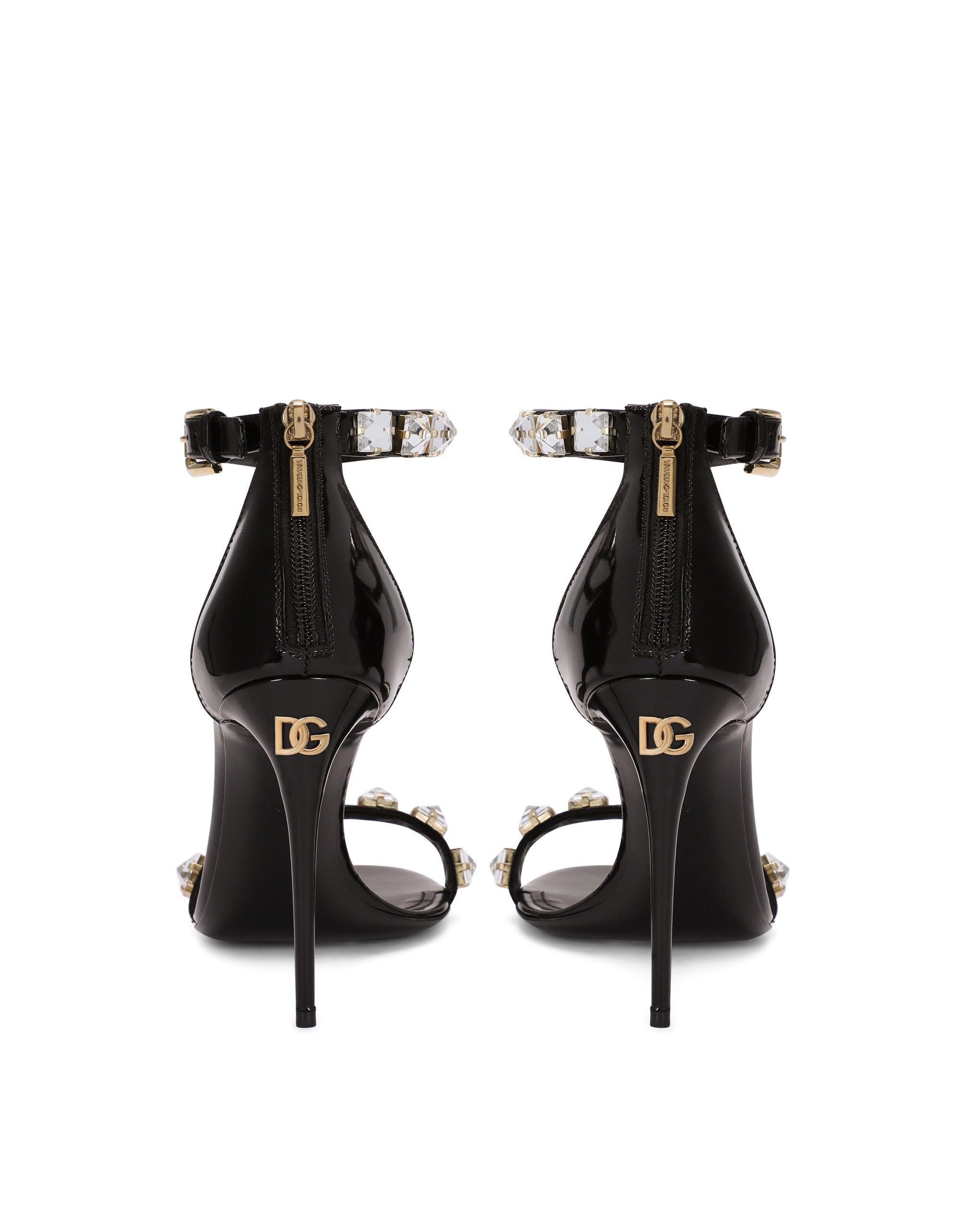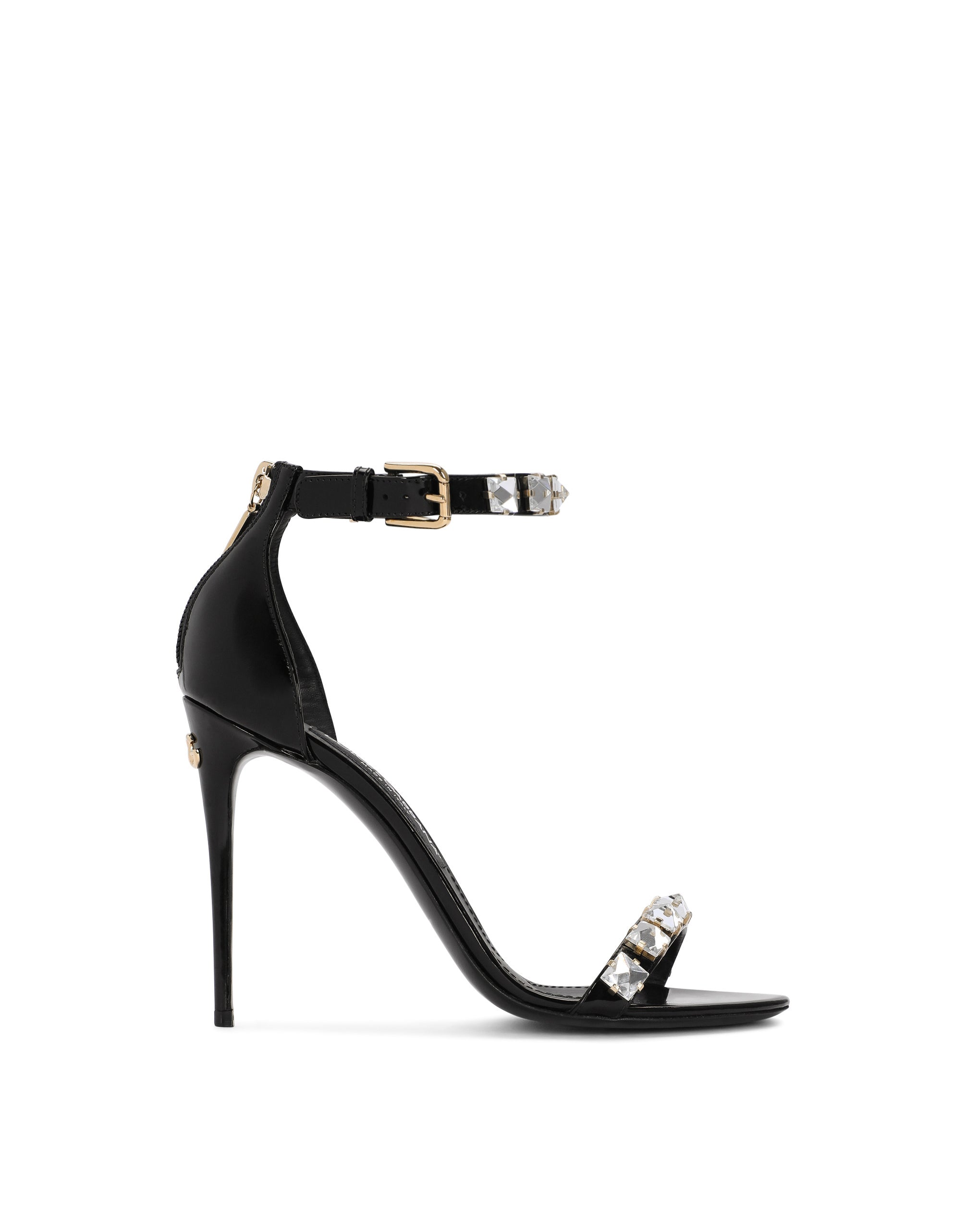 Iconic black and white are the key to the new DNA collection, where tradition and modernity merge to create unique, timeless style. Feminine and elegant, these new Keira sandals come in polished calfskin with rhinestone embellishment. Polished calfskin sandals with rhinestones: • Polished calfskin upper • Rear zip • 105-mm heel with DG logo • Kidskin insole with branded label • Branded leather sole • Made in Italy