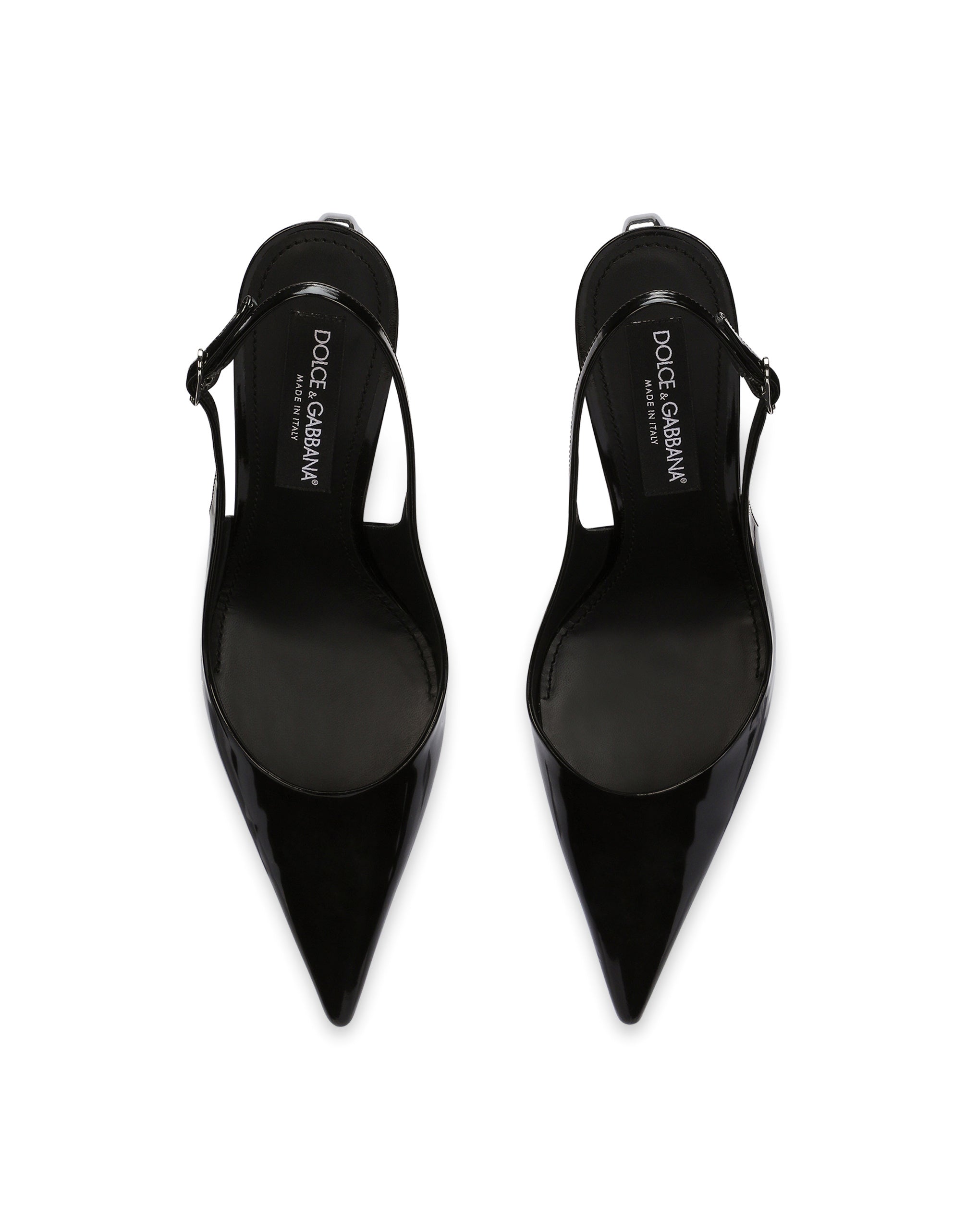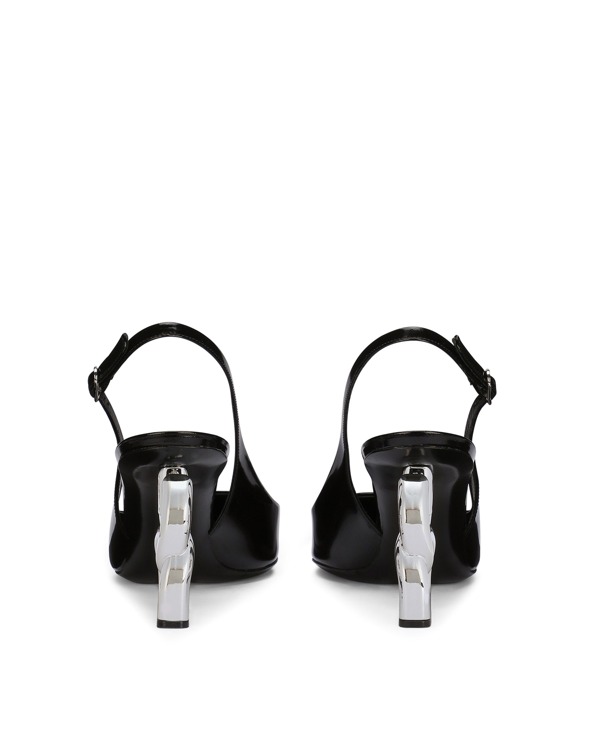 These new Lollo slingbacks feature a bold, tapered shape. Made from polished calfskin, they feature the palladium-plated carbon 3.5 heel. • 75-mm heel • Kidskin insole with branded label • Branded leather sole • Item comes with themed packaging • Made in Italy