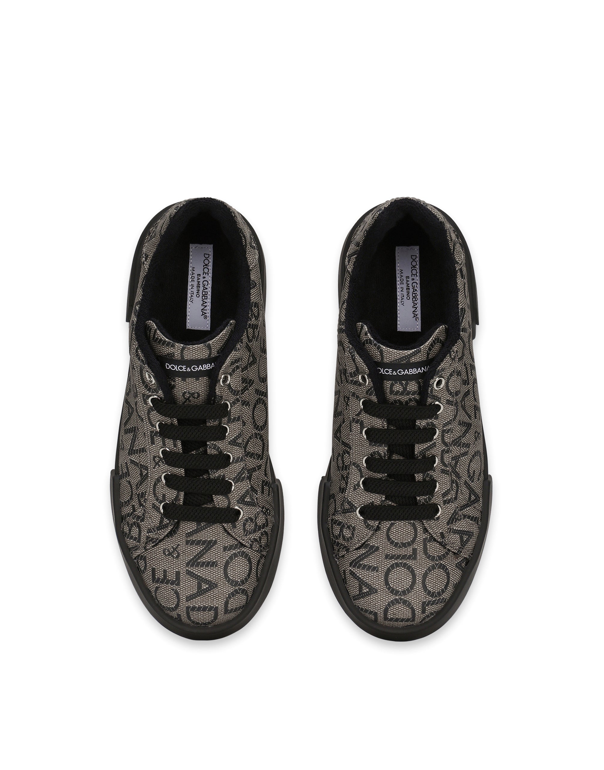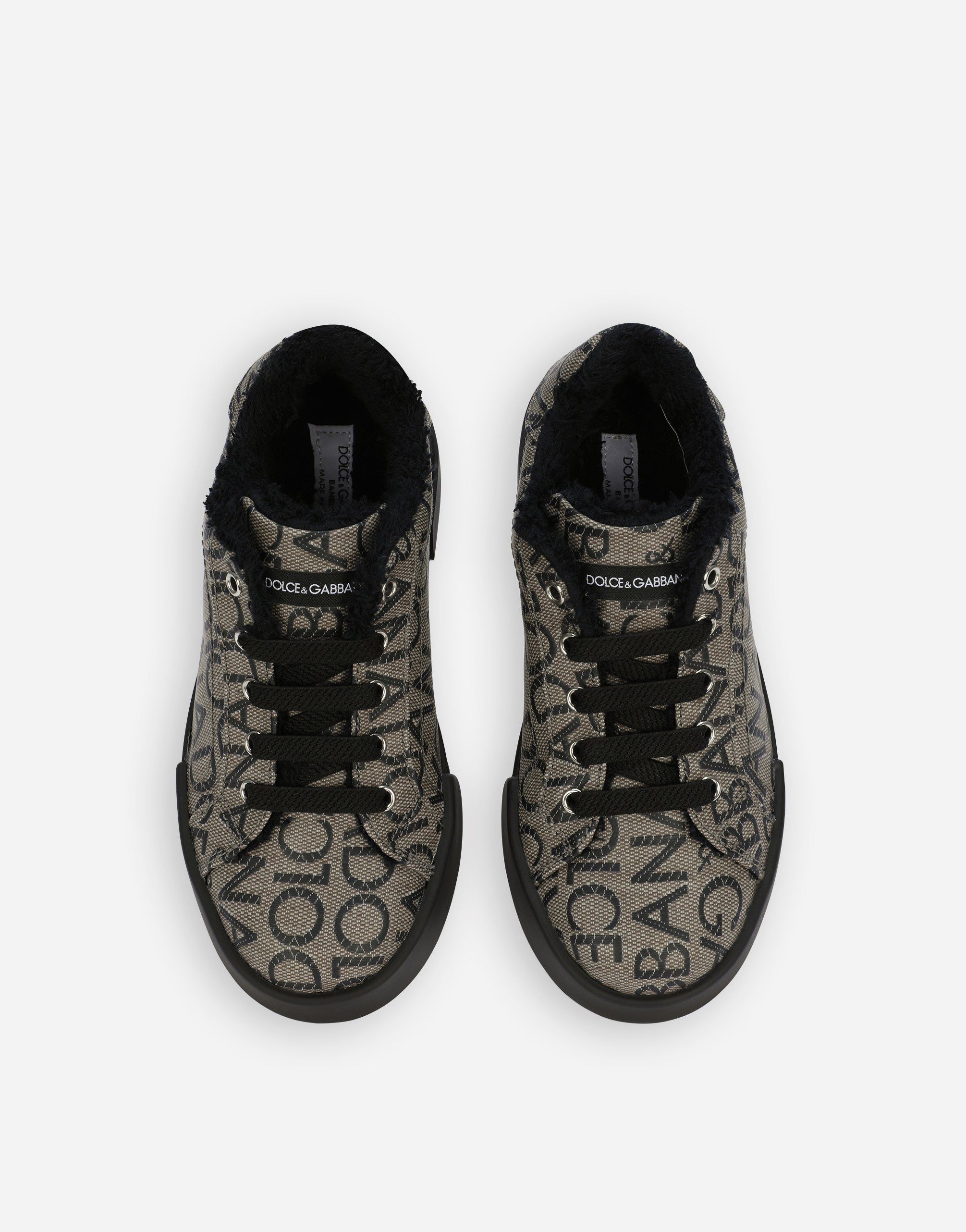 For the Kids Boy Collection, Dolce&Gabbana is drawing inspiration from the Re-Edition fashion show. An evocative journey back to the brand’s origins, where the past and present meet to give life to an innovative concept and interpretation of our archives. A contemporary vision that will allow the younger generations to discover a past rich in creative ideas and personal interpretations. Portofino Light sneakers in branded coated jacquard: • Branded coated jacquard upper • Flat laces • Tongue with branded label • Terry cloth interior • Terrycloth footbed with branded label • Branded rubber outsole and Portofino Light bottom assembly • Made in Italy