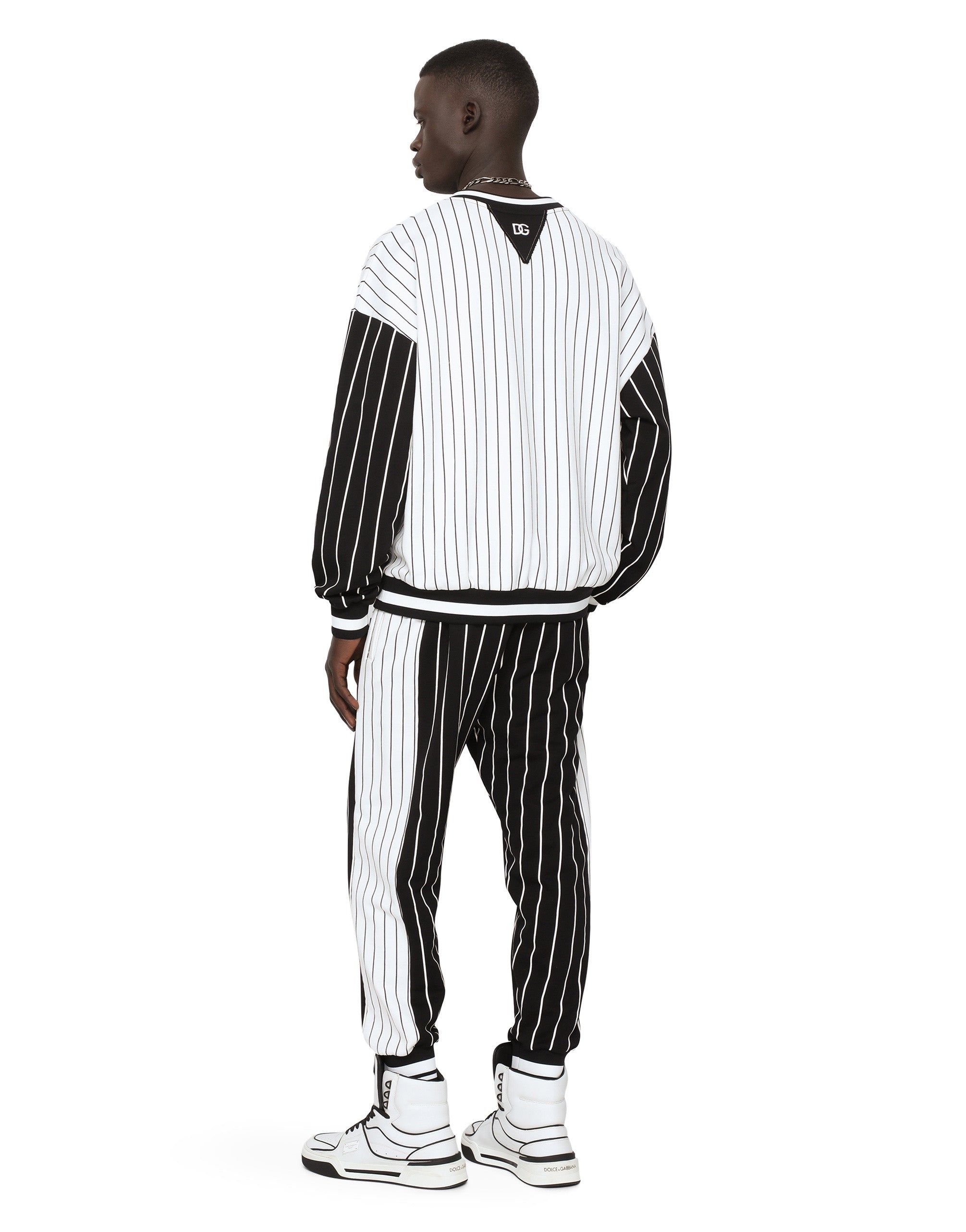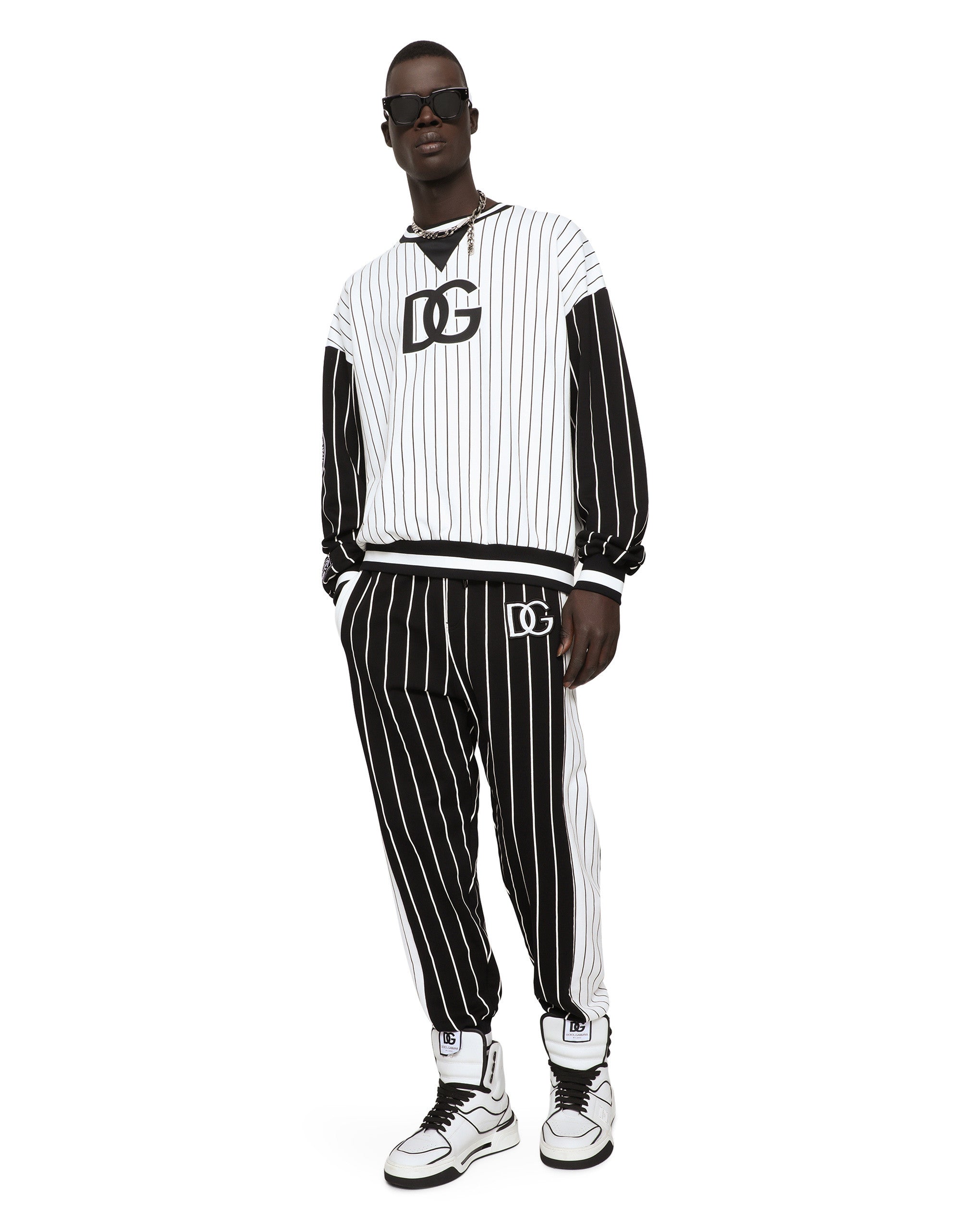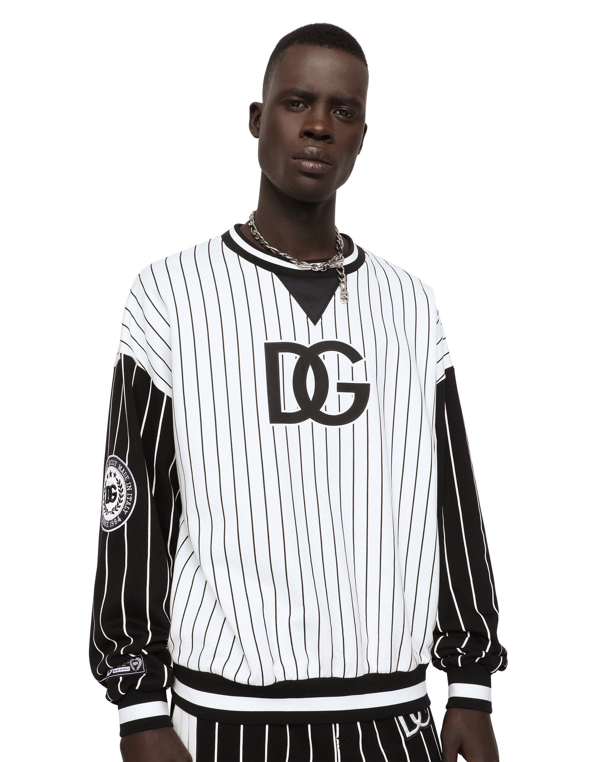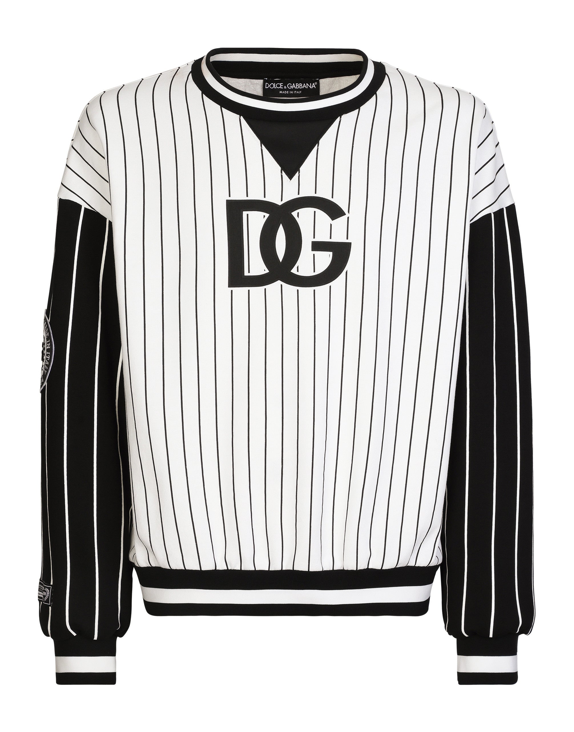 In the “Profondo Sud” Collection, Dolce&Gabbana’s signature aesthetic has undergone a contemporary evolution through the use and reworking of iconic fabrics and details that are reinterpreted in terms of shapes and pairings. The color black comes paired with polka-dot, stripe and DG-logo prints. Printed cotton jersey round-neck sweatshirt with DG embroidery and multiple patches. • Oversize fit • Stretch knit jacquard hem, neck and cuffs • The piece measures 69 cm from the rear collar seam on a size M • The model is 185 cm tall and wears a size M • Made in Italy