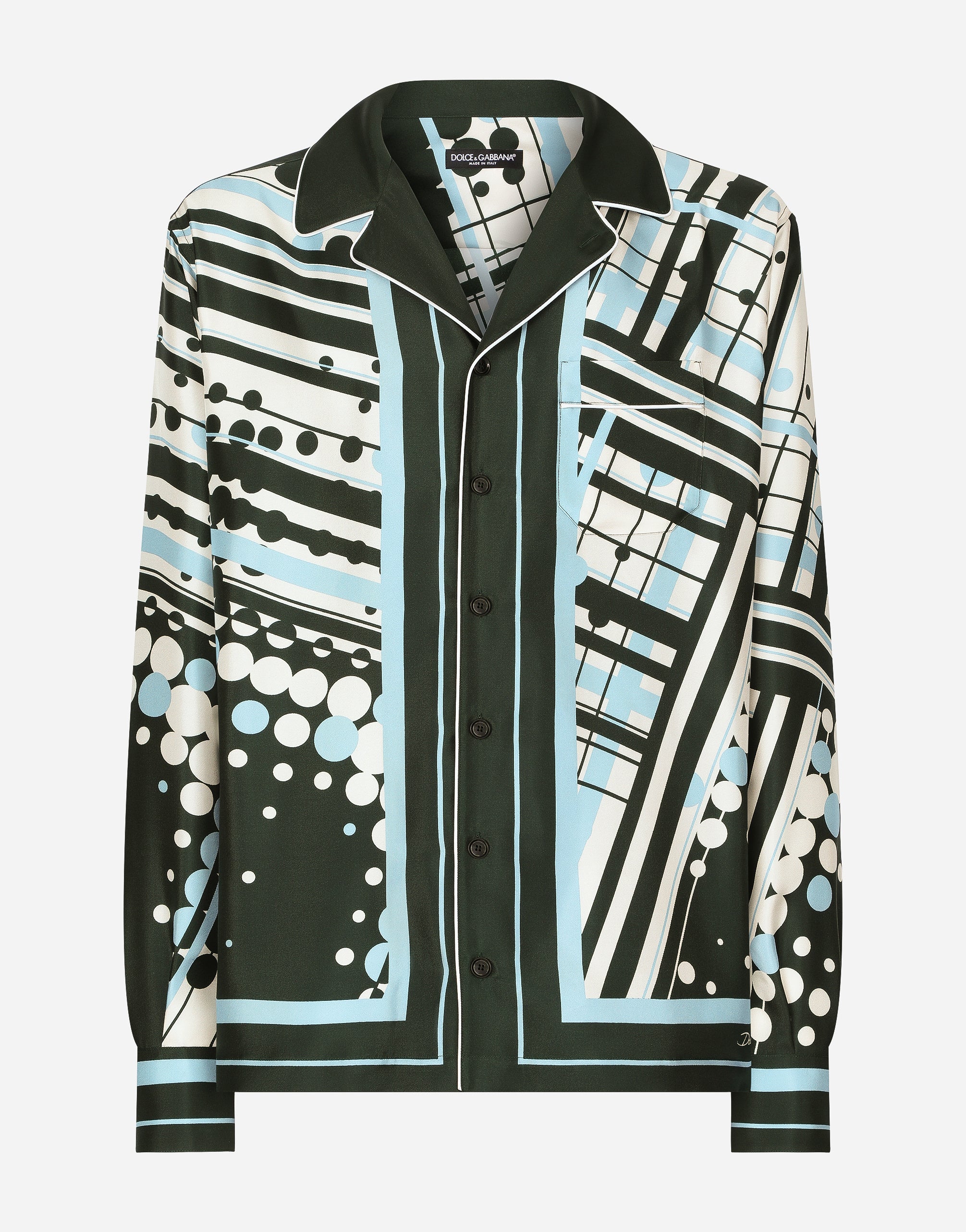 In the “Sartoriale” collection, iconic Italian sartorial heritage is presented from a new perspective, made up of lines, silhouettes and details, concealed buttoning, geometric lapels, and jackets that have seen their proportions completely overhauled. The tale is a journey embarked upon to discover a new kind of tailoring that is perfect in terms of fit, with meticulous attention to detail, that strives to speak and represent the style of the wearer, through small - yet significant - details that will make every piece unique. Silk twill shirt: • Multi-colored • Loose fit • Vanity collar • Button fastenings • Long sleeves • Breast pocket • The piece measures 78 cm from the rear collar seam on a size IT 40 • Made in Italy The difference in the print placement that you may find on this product is a feature of Dolce&Gabbana’s “Handmade” pieces. A detail that makes every garment or accessory unique and exclusive.