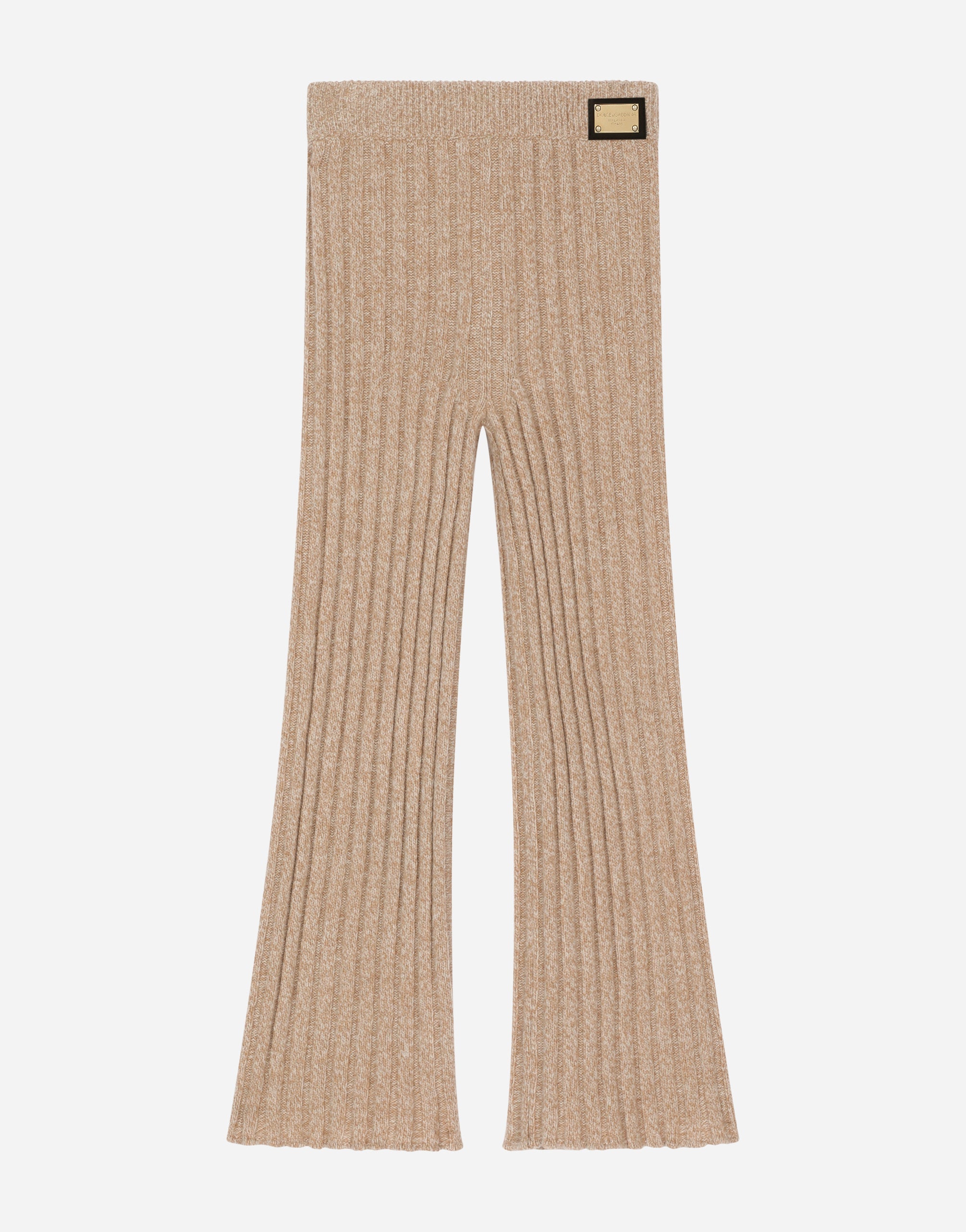 The girl’s Prateria Collection is inspired by the women’s 2001 New Hippy Collection, where the desert and meadows become bohemian and glamorous. Vaguely vintage/grunge looks come made up of volume and special pieces flaunt light printed and solid-color fabric details, smock stitching, corduroy, faux fur and a print distinguished by delicate and joyful multi-colored wildflowers for fun and ironic little girls. Rib-knit pants with logo tag: • Beige • 7-gauge knit • Ribbed knit • Knit waistband •Metal logo tag • Unlined • The item in the size 6 years measures 68 cm from the shoulder seam • Made in Italy