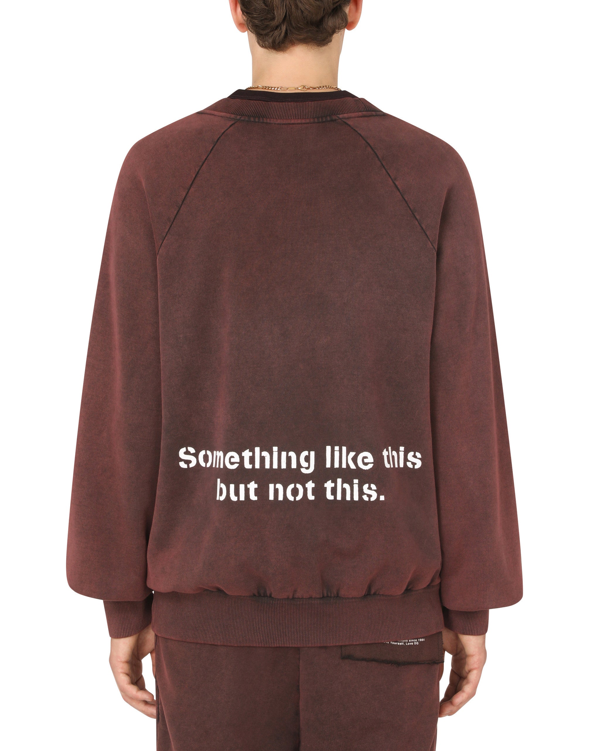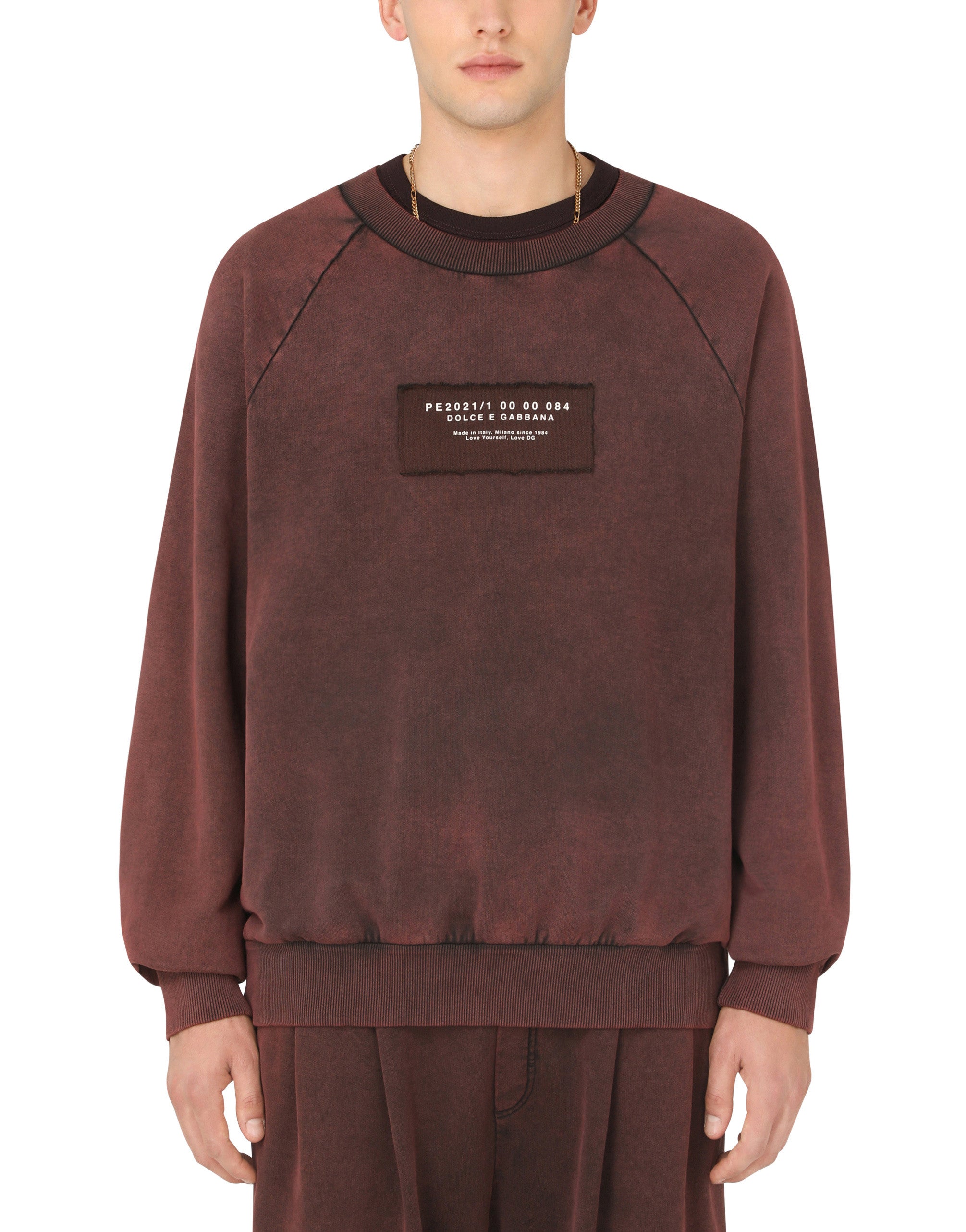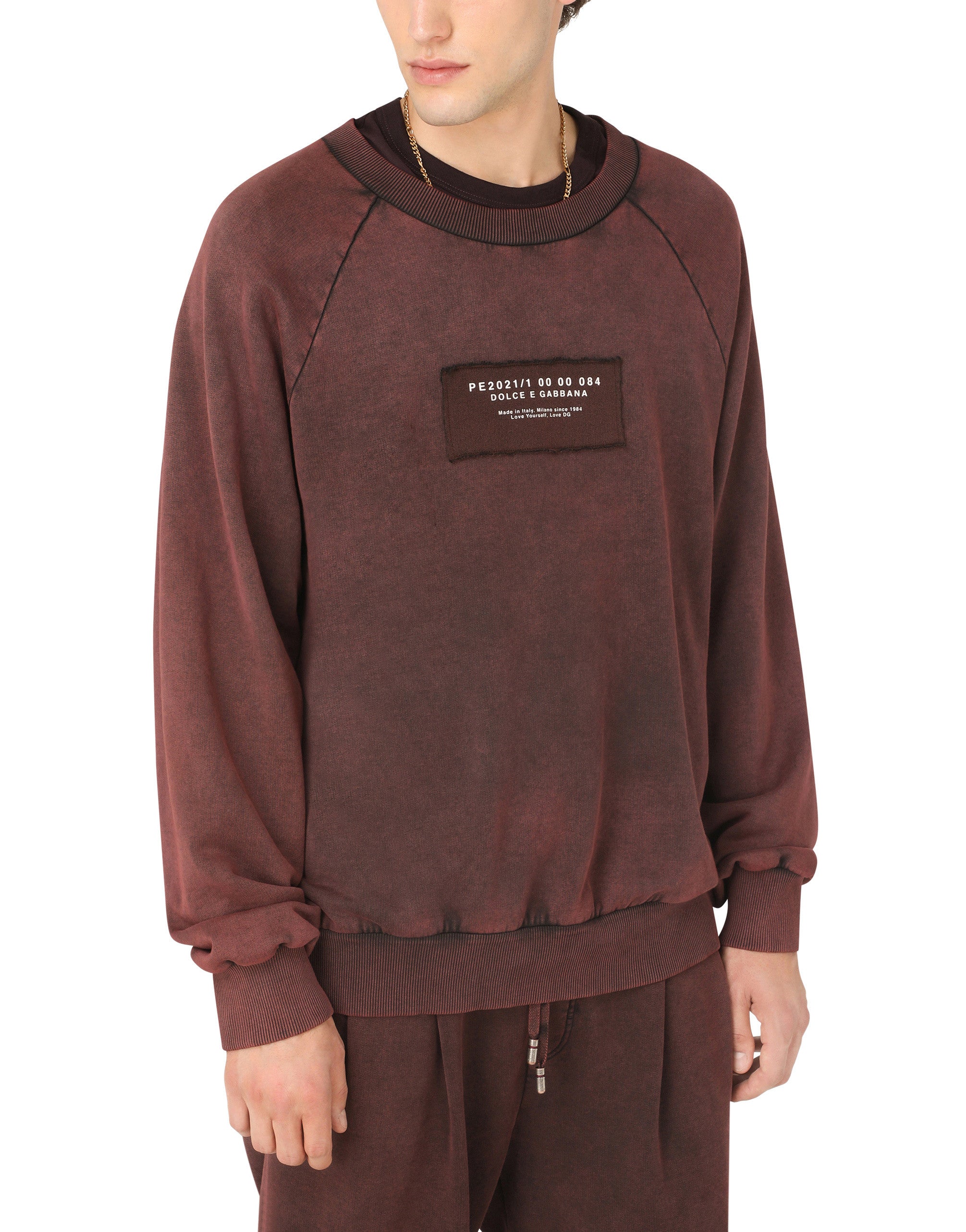 Camouflage, a signature Dolce&Gabbana print, has been given a contemporary makeover. Coming in burgundy, black/white and pure white, it pairs perfectly with the floral, stripe and iconic polka dot motifs. Round-neck washed cotton jersey sweatshirt with the 3D logo and print: • Regular fit • Raglan sleeves • Stretch knit hem, neck and cuffs • The piece measures 68.5 cm - 27 inches from the rear collar seam on a size IT 48 • The model is 185 cm - 72.8 inches tall and wears a size IT 48 • Made in Italy External composition: 100% Cotton