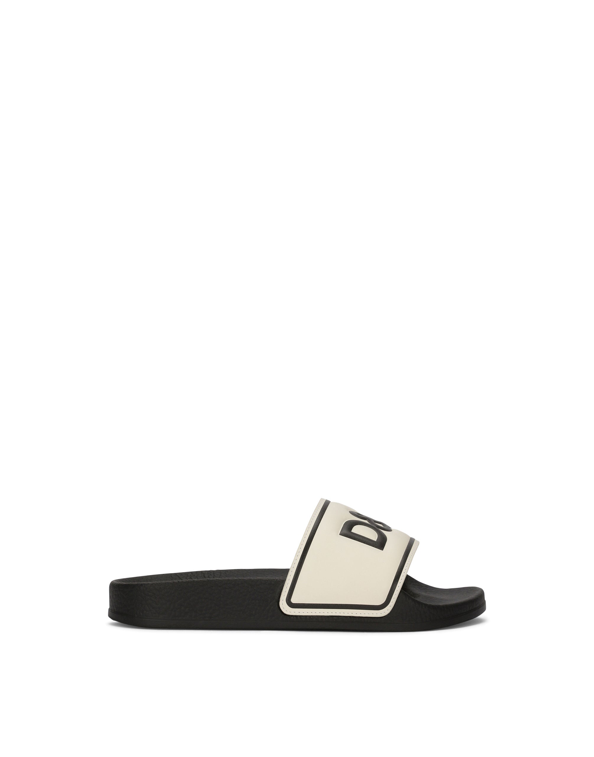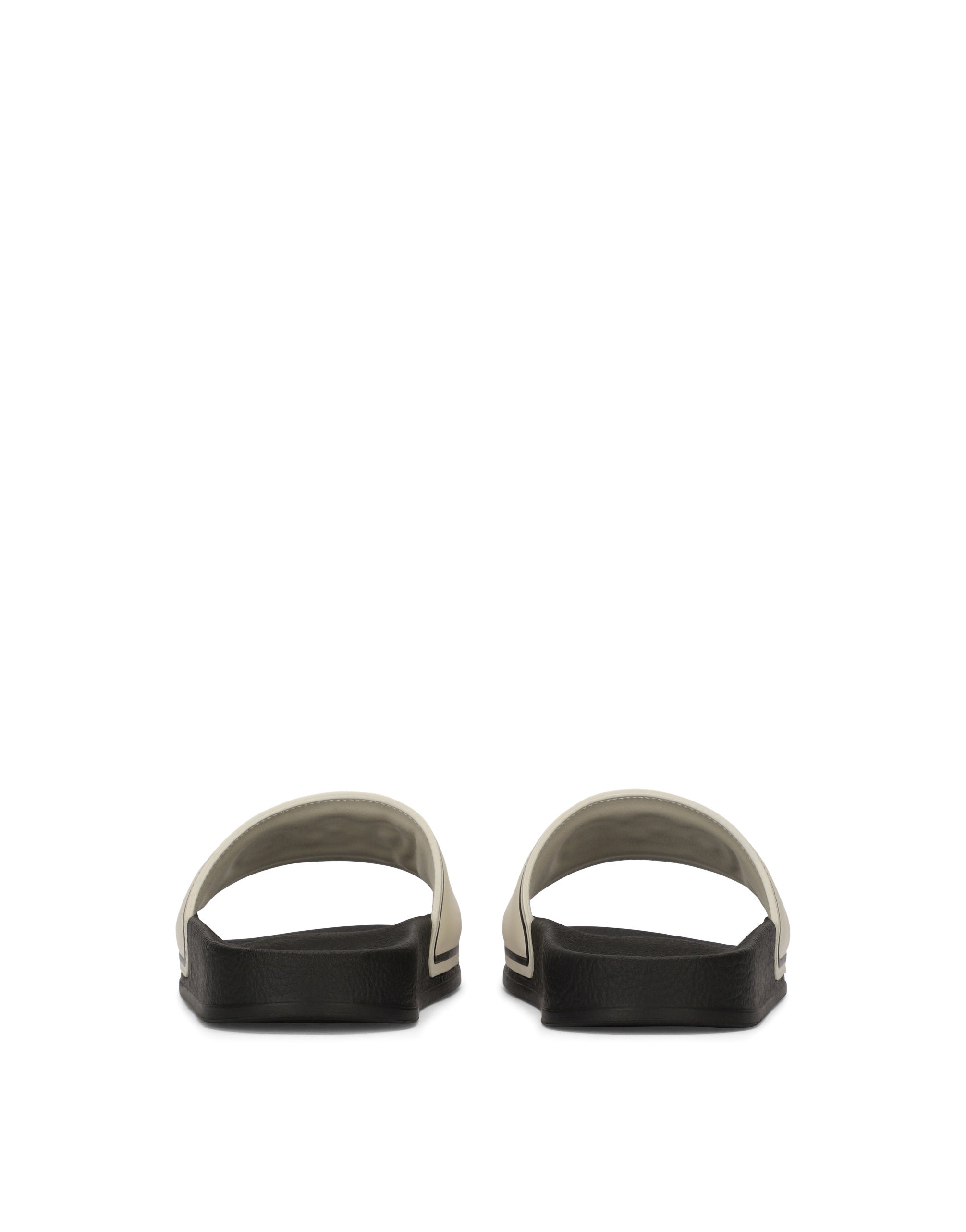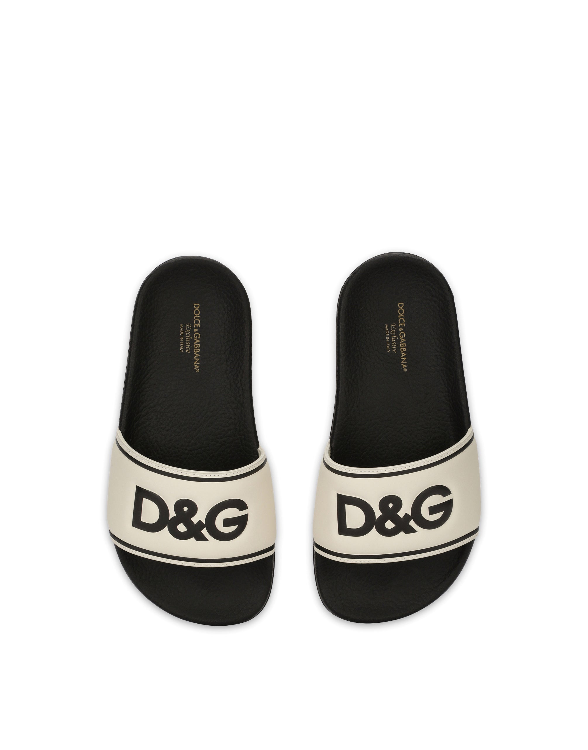 The DG Sunrise Collection celebrates the unique and special world of precious stones, gold and emeralds paired with Italian tradition and the iconic DG logo. The style is formed out of prints with warm, vibrant logo hues, such as brown, sand, terracotta, garnet red and carnelian orange, for understated sportswear. Stefano and Domenico have dreamed up a new, special journey, creating a style with a myriad of influences, merging the brand’s signature aesthetic, logo and traditions into a new expressive language. Rubber and calfskin sliders with logo print. • Calfskin upper with heat-stamped embossed logo • Insole with logo print • Rubber outsole • Made in Italy