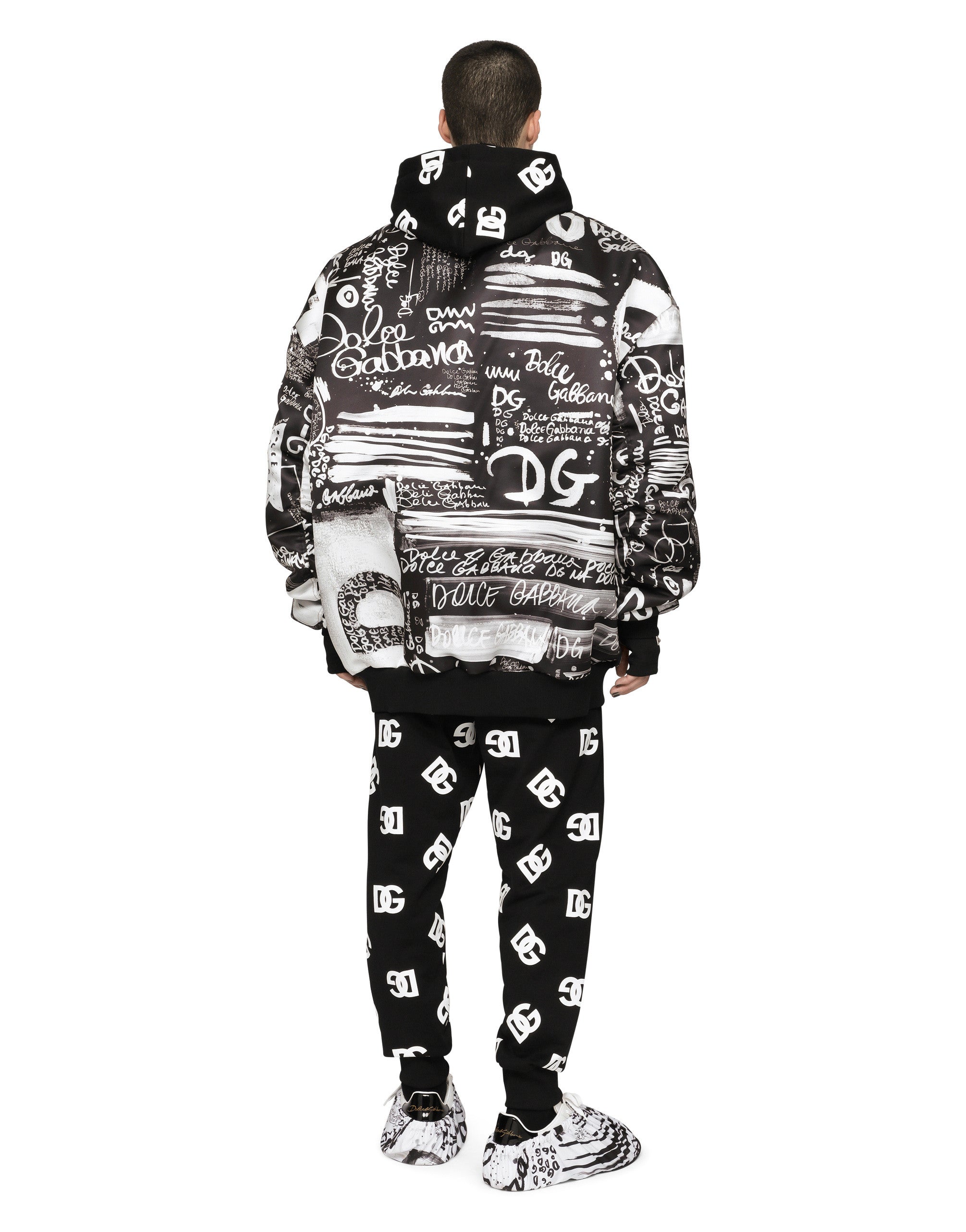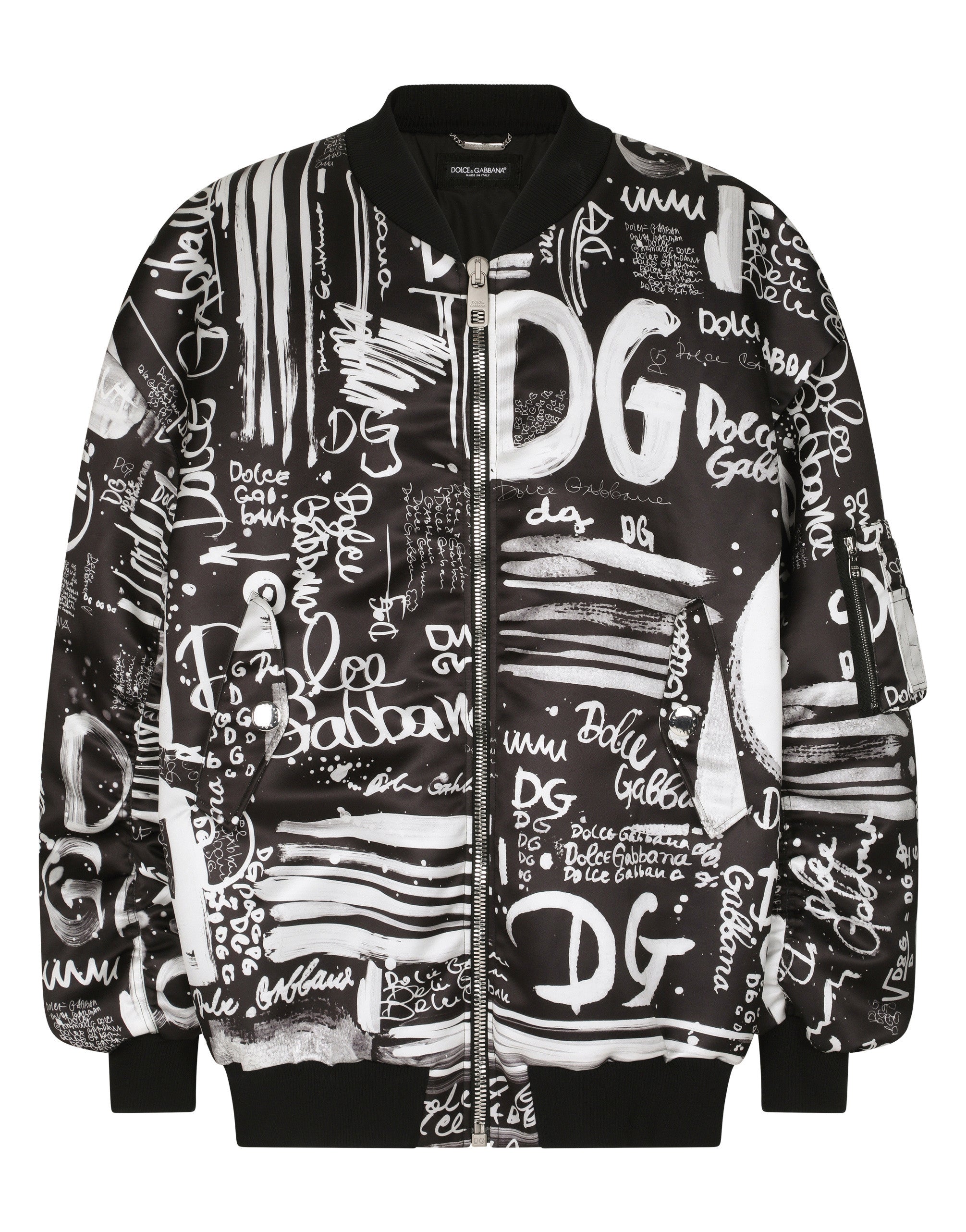 The FW22 Fashion Show was built around new proportions and geometries and features silhouettes and lines that have been created with technical fabrics, graffiti prints and all-over logo detailing. A collection that looks to the future, conveying the current world through technology, the metaverse, the virtual world and the younger generations. Satin jacket with all-over logo print. • Light insulated padding on the interior • Oversize fit • Front zipper fastening • Outer welt pockets with zipper • Stretch knit neck, hem and cuffs • Lined • The piece measures 80 cm from the rear collar seam on a size M • The model is 185 cm tall and wears a size M • Made in Italy