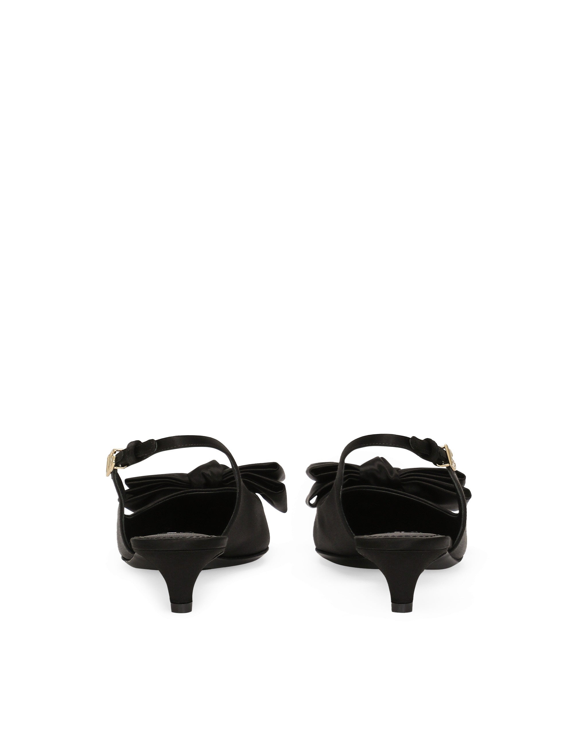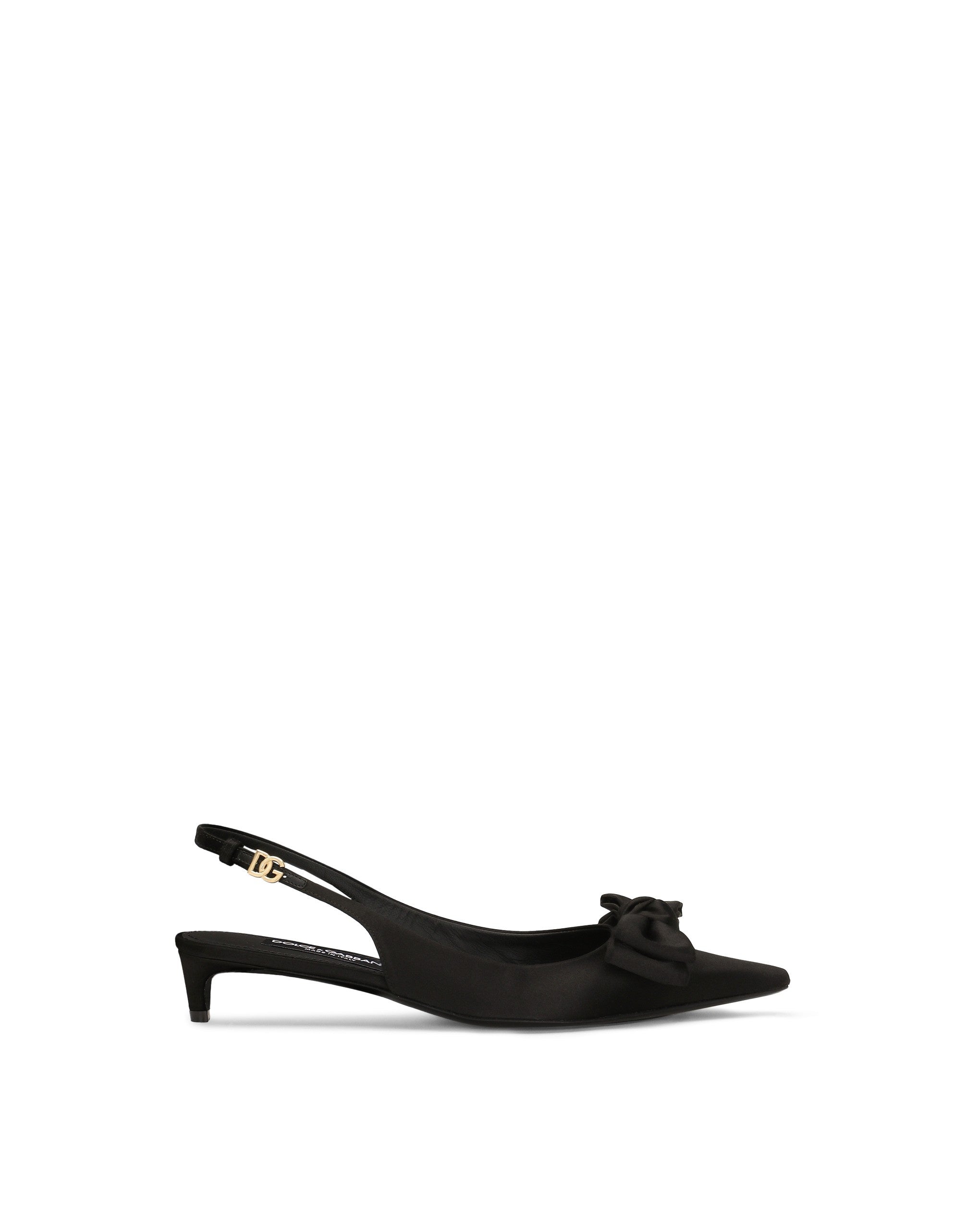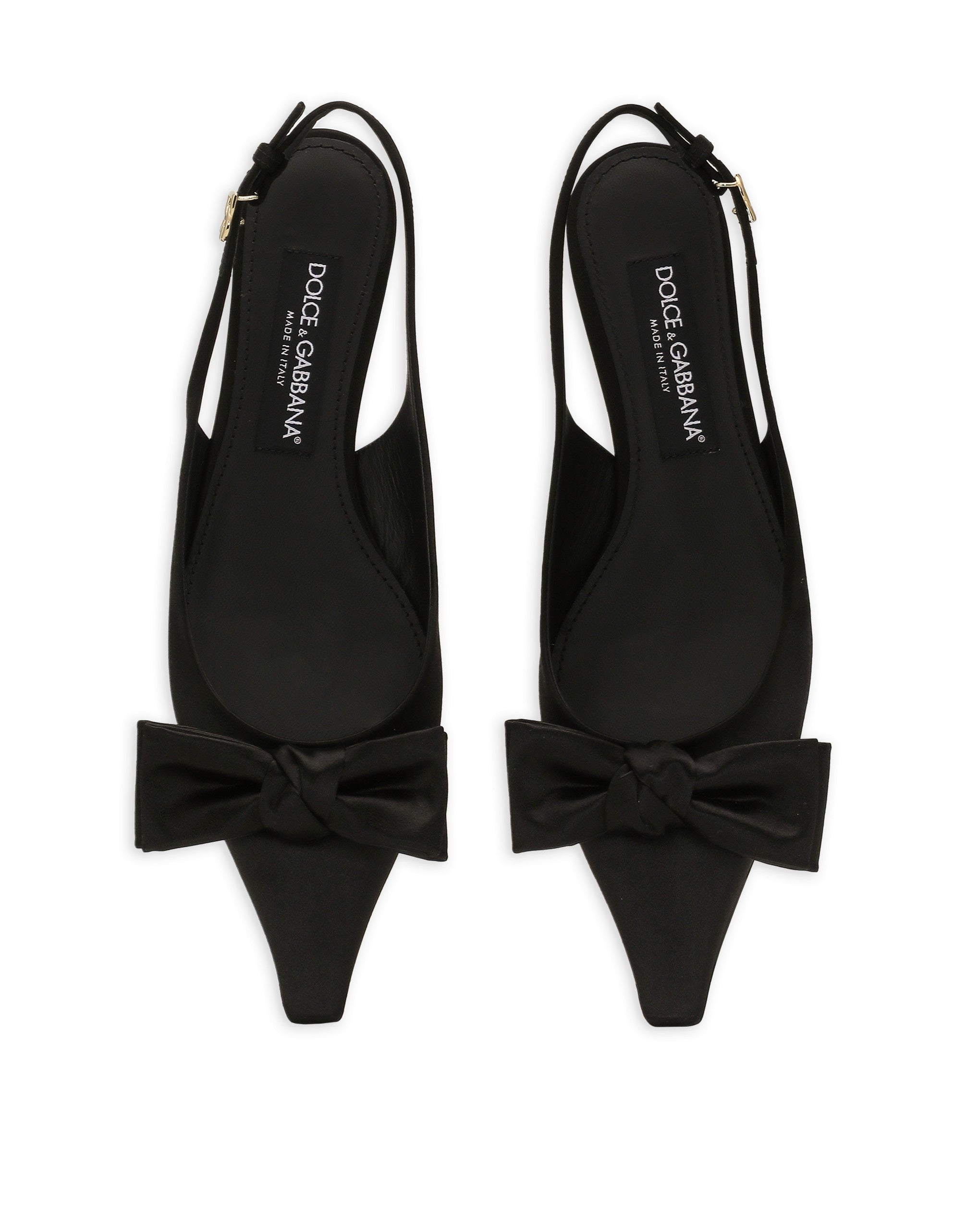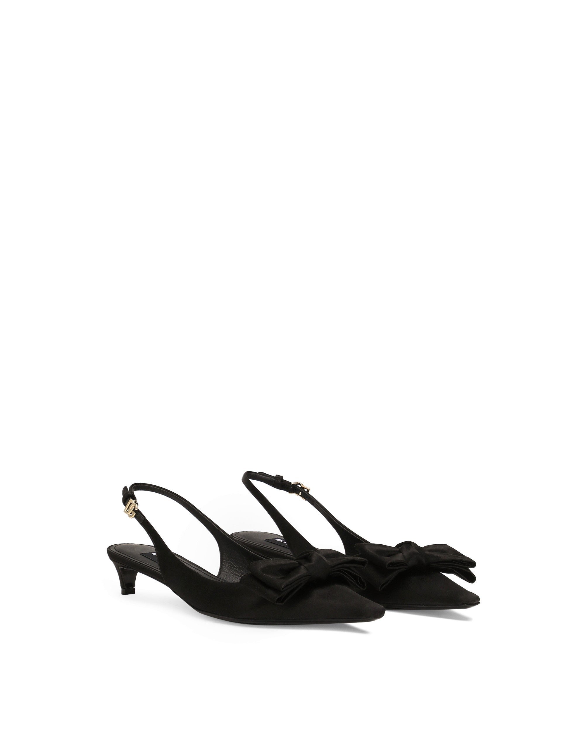 Elegant and refined, these new satin Mun slingbacks feature bow appliqué on the upper. Satin slingbacks with bow detail: • Black • 30-mm heel • Kidskin insole with branded label • Branded leather sole • Item comes with a branded dust bag • Made in Italy