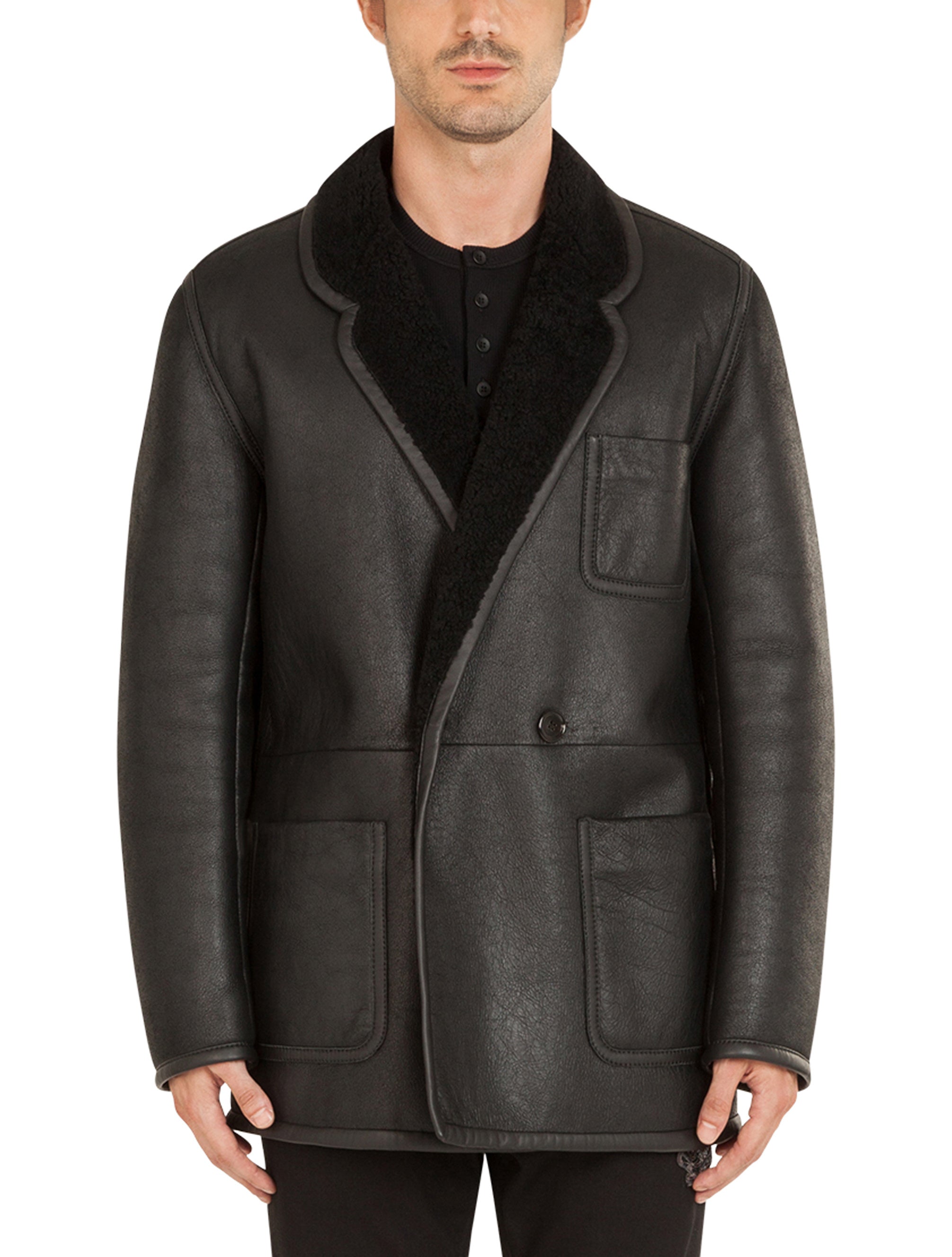 In the Dolce&Gabbana collection, our Sicilian roots and tailoring expertise mix with layering and new volume to create a sophisticated and contemporary update on our signature aesthetic. Double-breasted shearling pea coat: • Regular fit • Notched lapels • Button fastening at the front • Patch pockets • Inner patch pockets • Half-belt on the back with branded buttons • The piece measures 80 cm - 31.5 inches from the rear collar seam on a size IT 48 • The model is 185 cm - 72.8 inches tall and wears a size IT 48 • Made in Italy External composition: 100% Lambskin