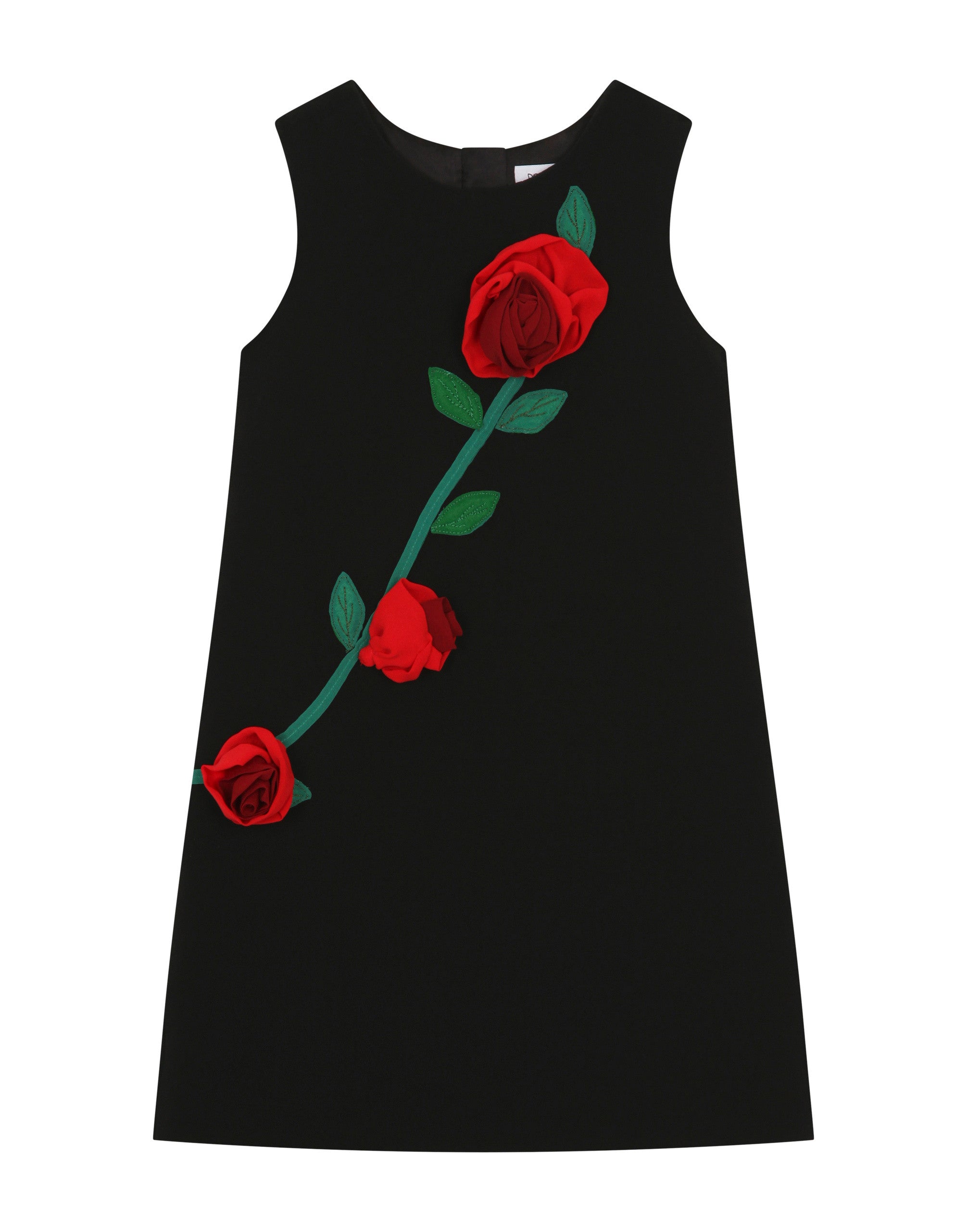 Italian craftsmanship and the “homemade” are the beating heart of the Fatto a mano Collection, the mini-me version of our Women's Collection. The star of the theme is the knitwear, which is imbued with Dolce&Gabbana’s key colors of red and black and conveys Sicilian tradition and love with a modern feel. Red rosebuds, in georgette and tulle, applied to a green stem, give this A-line dress a 3D effect, making it seem as though a branch of love is blooming on it. • Regular fit • Round neck • Sleeveless • Lined • Concealed zipper fastening on the back • The item in the size 3 years measures 50.5 cm - 19.9 inches from the center back • Made in Italy Composition: 97% Viscose 3% Spandex