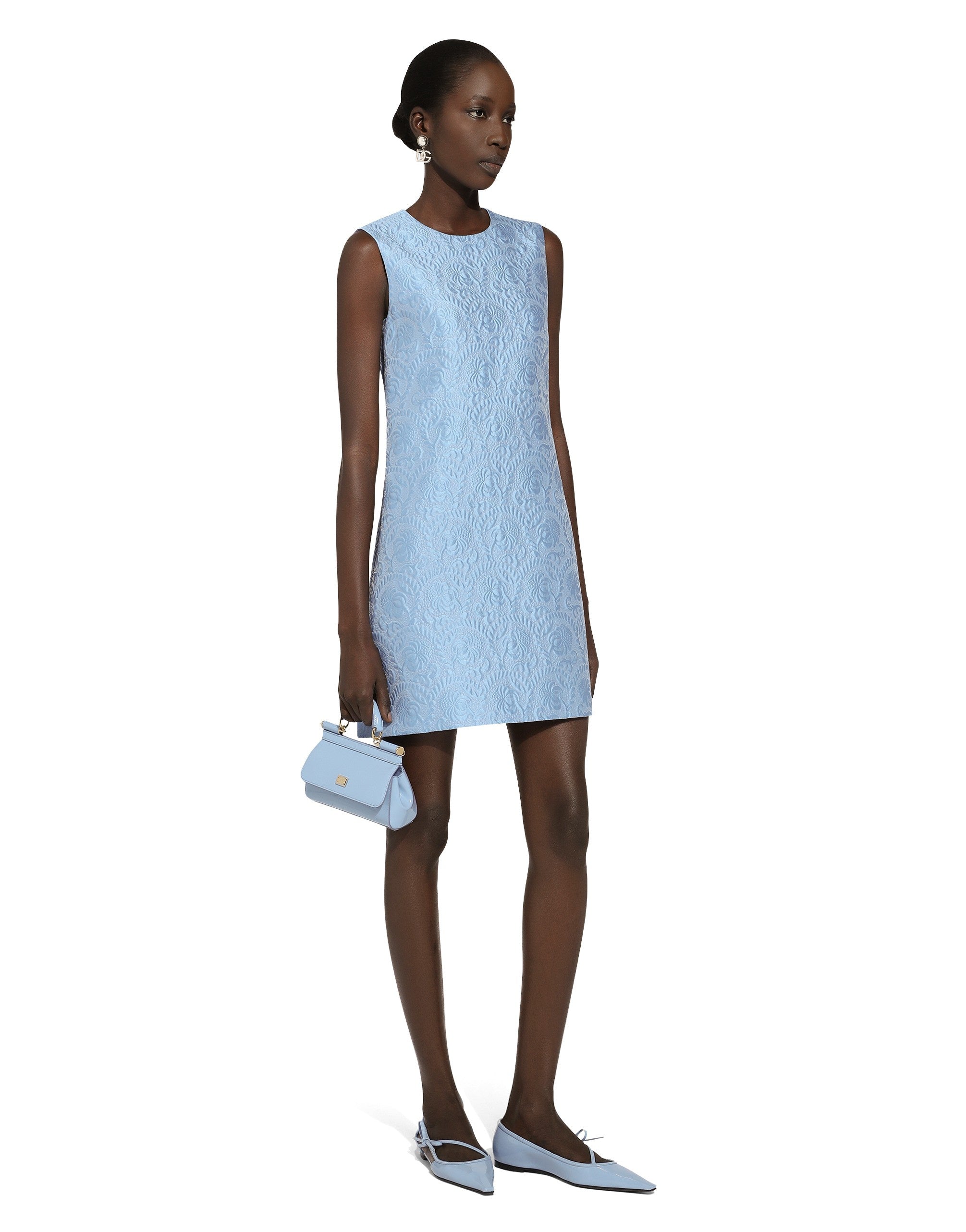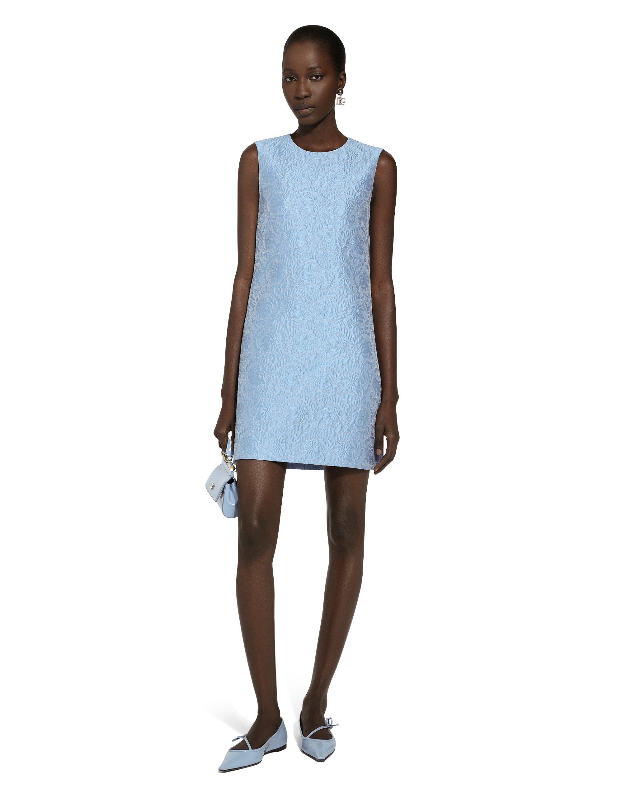 The DNA collection is distinguished by timeless shapes, bringing together three concepts: Sicilian flair, tailoring and sensuality. Nero Sicilia black and optical white predominate and pair with colors that catapult us onto the island of Sicily and make us dream. The designers channel the timeless wardrobe made up of creations that are instantly unmistakable in their simplicity, presenting us with sophisticated beauty loaded with meaning and symbolism that transcends fashion. Short floral quilted jacquard A-line dress: • Yellow • Round neck • Sleeveless • Tonal stretch silk satin lining • Rear zipper and hook-and-eye fastening • The piece measures 45 cm from the waist down on a size IT 40 • The model is 175 cm tall and wears a size IT 40 • Made in Italy
