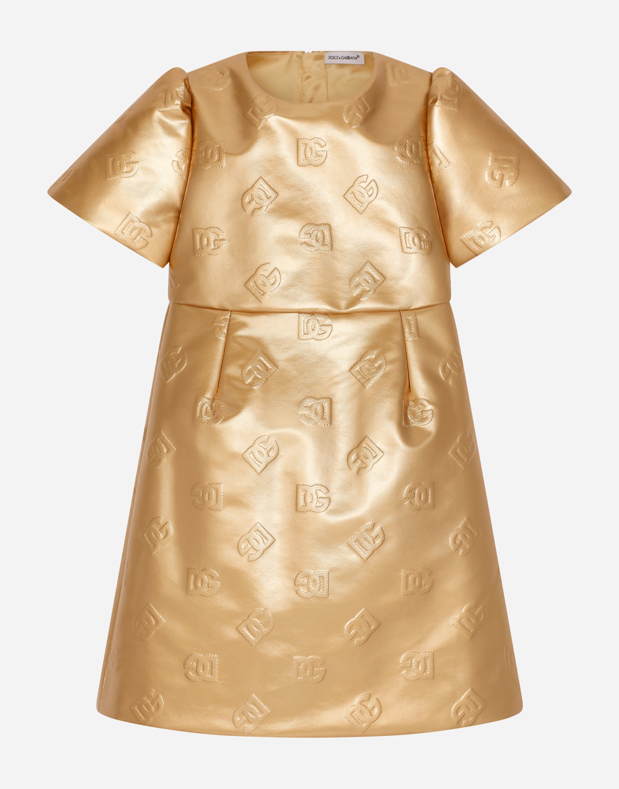 Dolce&Gabbana is presenting a futuristic vision of its signature aesthetic in this new collection. Sicily, iconic black and the logo have been reworked and catapulted into the metaverse, a digital world where video game heroines dressed in neon and iridescent foiled hues become the stand-out stars. This short foiled jacquard dress will be perfect for the most special of occasions. •Regular fit •Round neck •Short sleeves •Lined •Concealed zipper fastening on the back •The item in the size 3 years measures 57 cm from the shoulder seam •Made in Italy