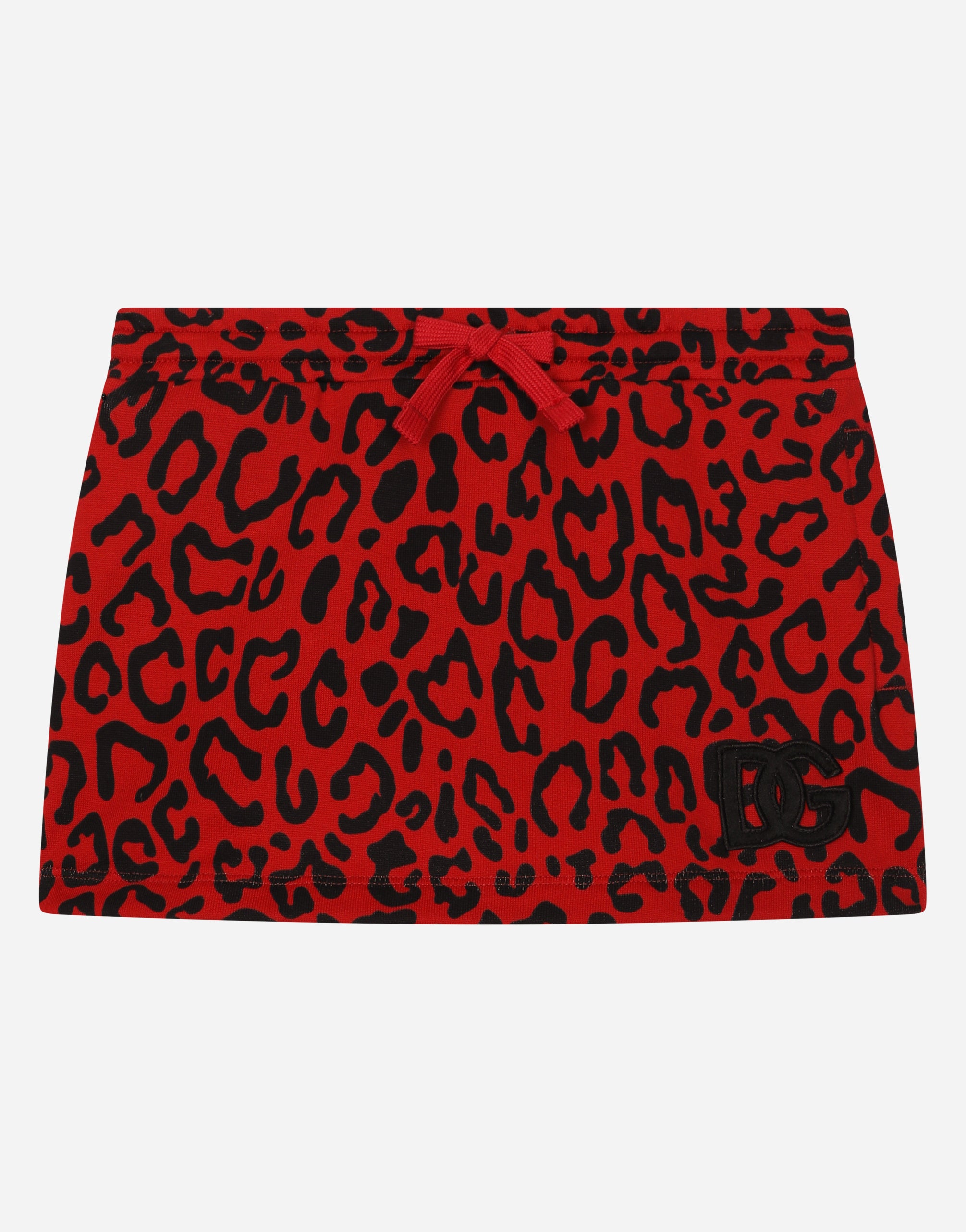With the Rosso collection, Dolce&Gabbana is exuding elegance and bold visual impact. The choice of impalpable fabrics highlights the iconic heart of the brand: volcano red becomes the symbol of love and dynamism, the leopard print a pure graphic design, and the black the emblem of all things Sicilian. Short jersey skirt with leopard print: • Regular rise • A-line • Drawstring waist • DG logo patch • Welt pockets • Unlined • The item in the size 3 years measures 26.5 cm in length • Made in Italy