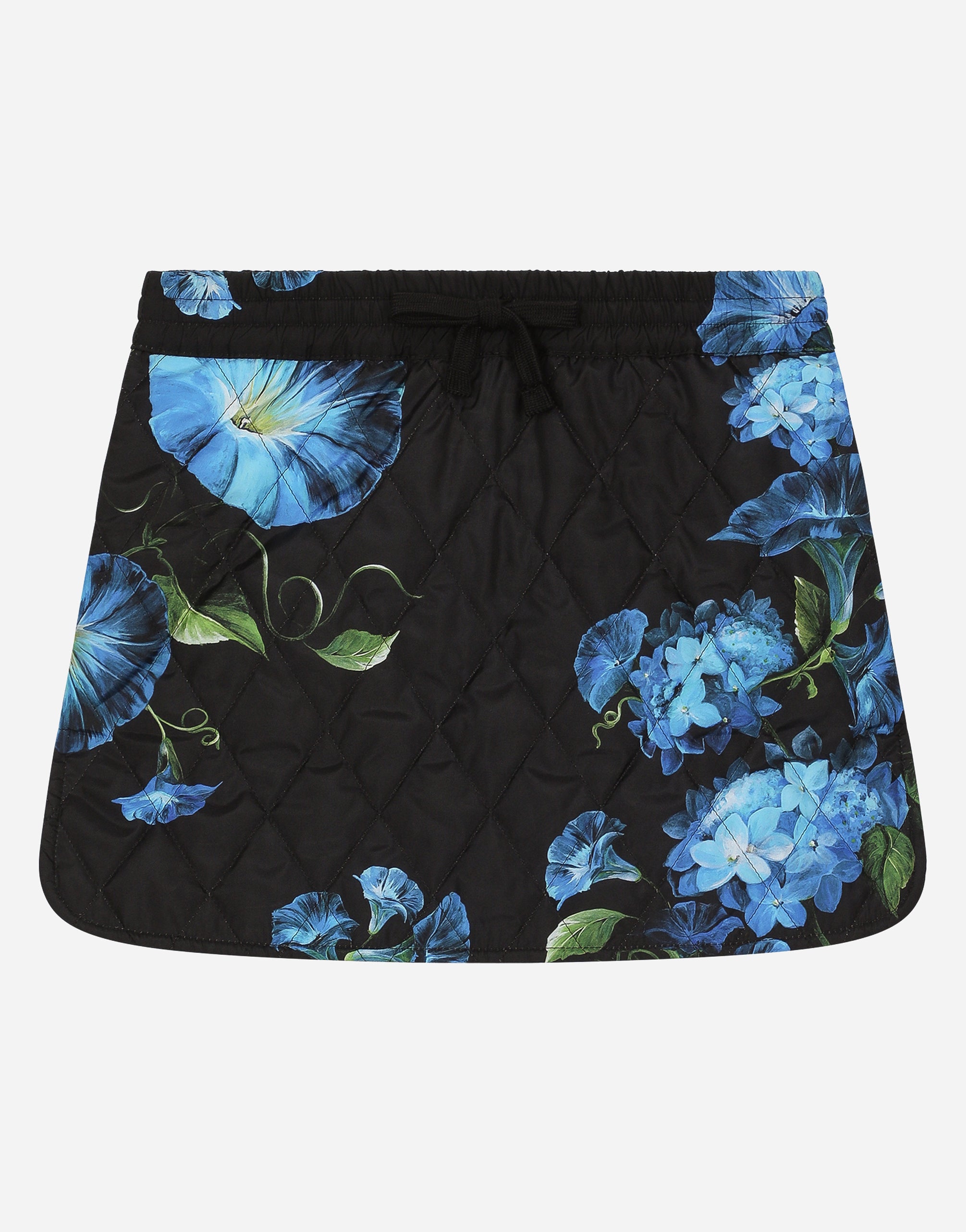 The spirit of the 1960s is the source of inspiration that envelops the Flower Power collection for girls. Floral total looks translate the vibrancy and Italian verve of the women’s collection for girls. The mix&match of prints reminds us of all the sensibility and eclecticism that was typical of that time. By revisiting that unique historical period, the designers propose joyful, colorful looks that merge with the quintessential feel of the Mediterranean, conveying good humor and joie de vivre. Short nylon skirt with all-over bluebell print: • Multi-colored • Regular rise • Stretch waistband with drawstring • Nylon lining with leopard print • Lightly padded • Placed print • The item in the size 6 years measures 32.5 cm in length • Made in Italy The difference in the print placement that you may find on this product is a feature of Dolce&Gabbana’s “Handmade” pieces. A detail that makes every garment or accessory unique and exclusive.