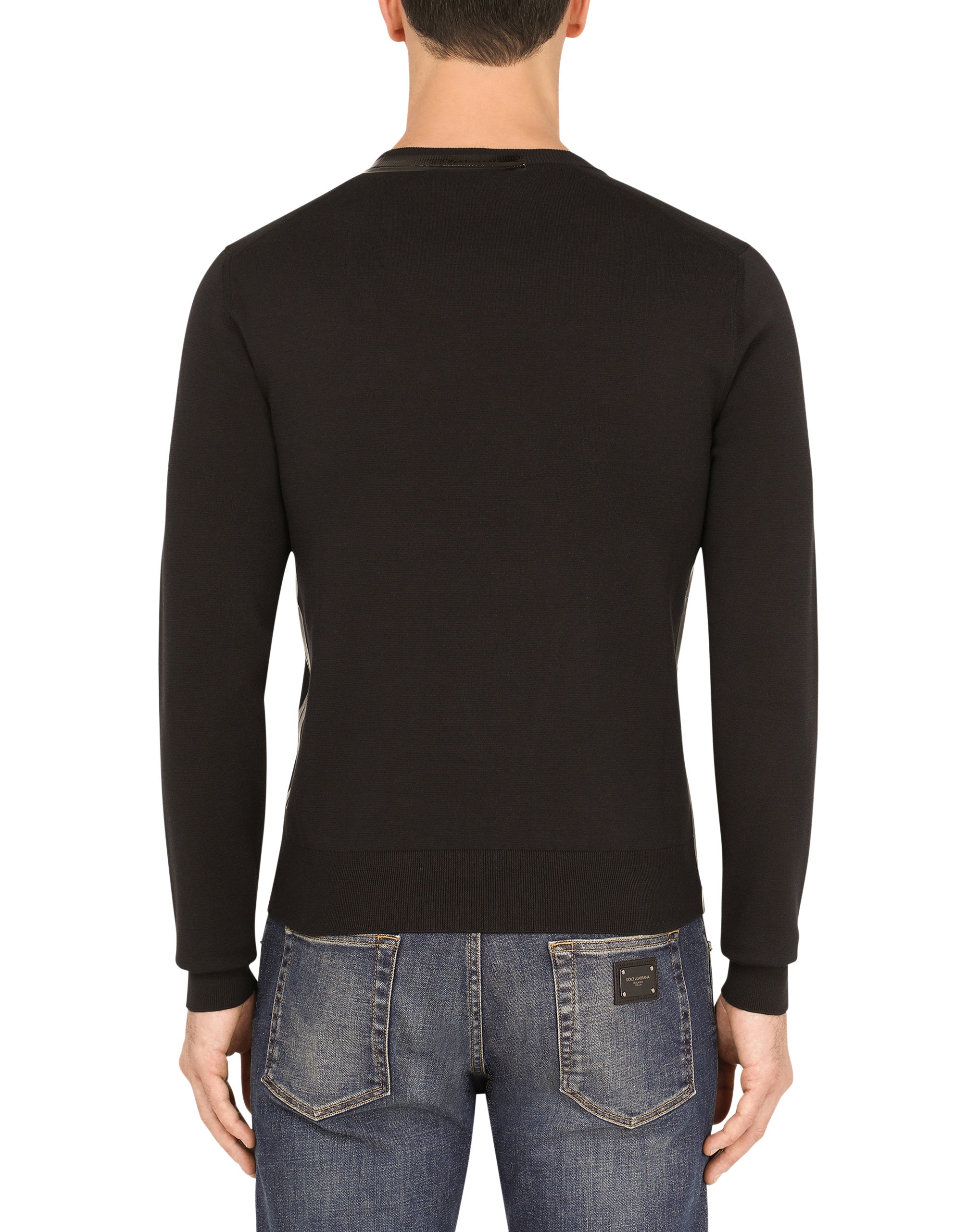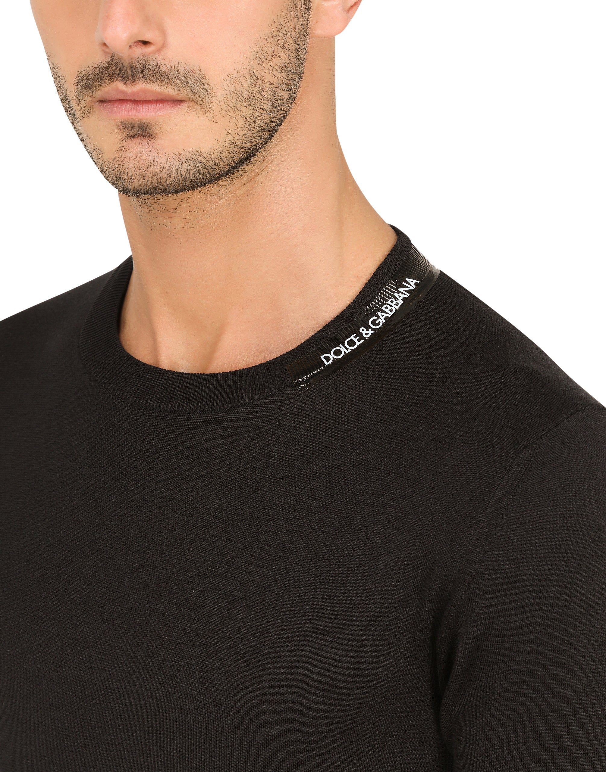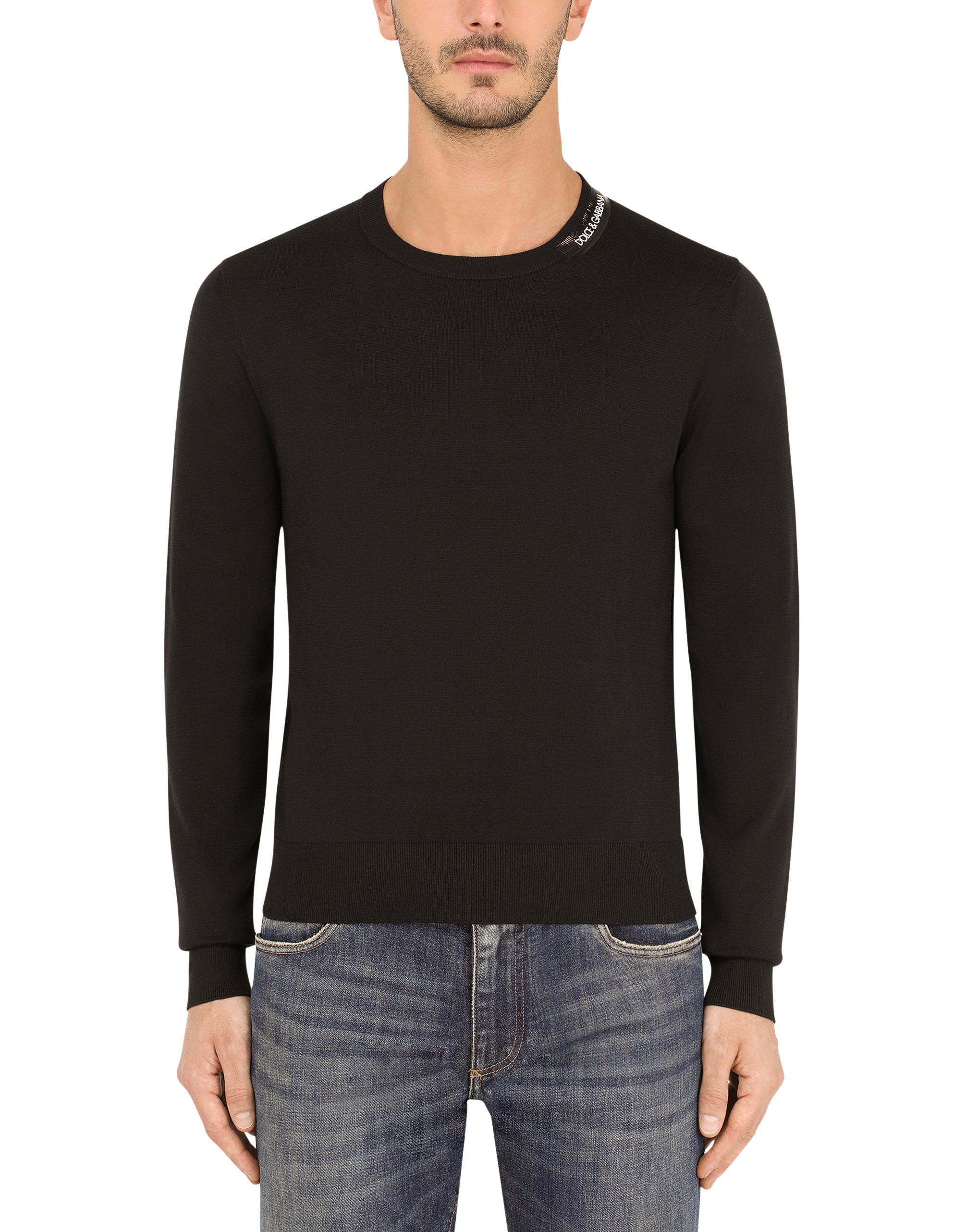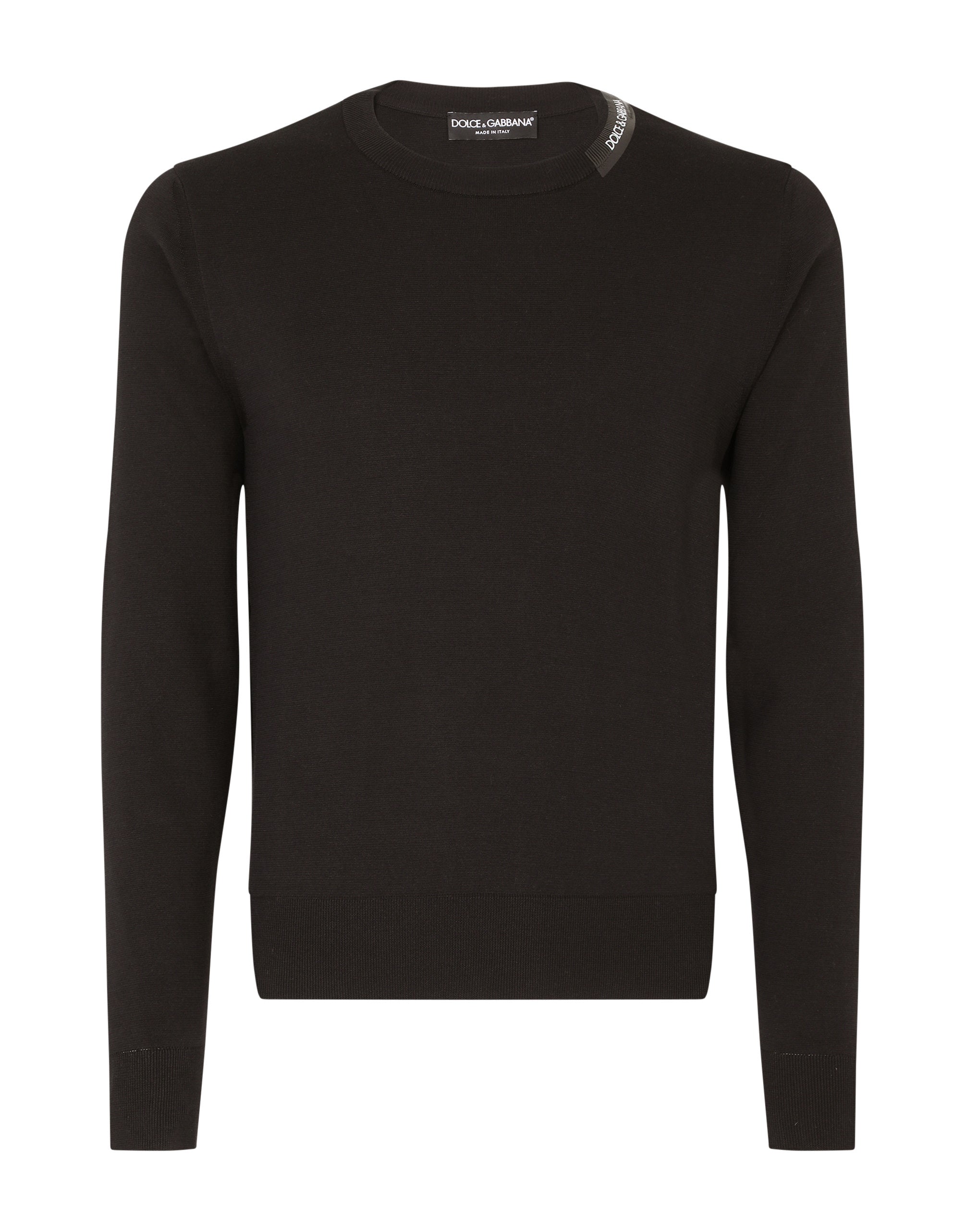 In the Dolce&Gabbana collection, our Sicilian roots and tailoring expertise mix with layering and new volume to create a sophisticated and contemporary update on our signature aesthetic. Round-neck silk and cotton sweater with fusible Dolce&Gabbana logo tape: • Regular fit • 18-gauge plain knit • The piece measures 69 cm - 27.2 inches from the rear collar seam on a size IT 48 • The model is 185 cm - 72.8 inches tall and wears a size IT 48 • Made in Italy External composition: 55% Silk 45% Cotton