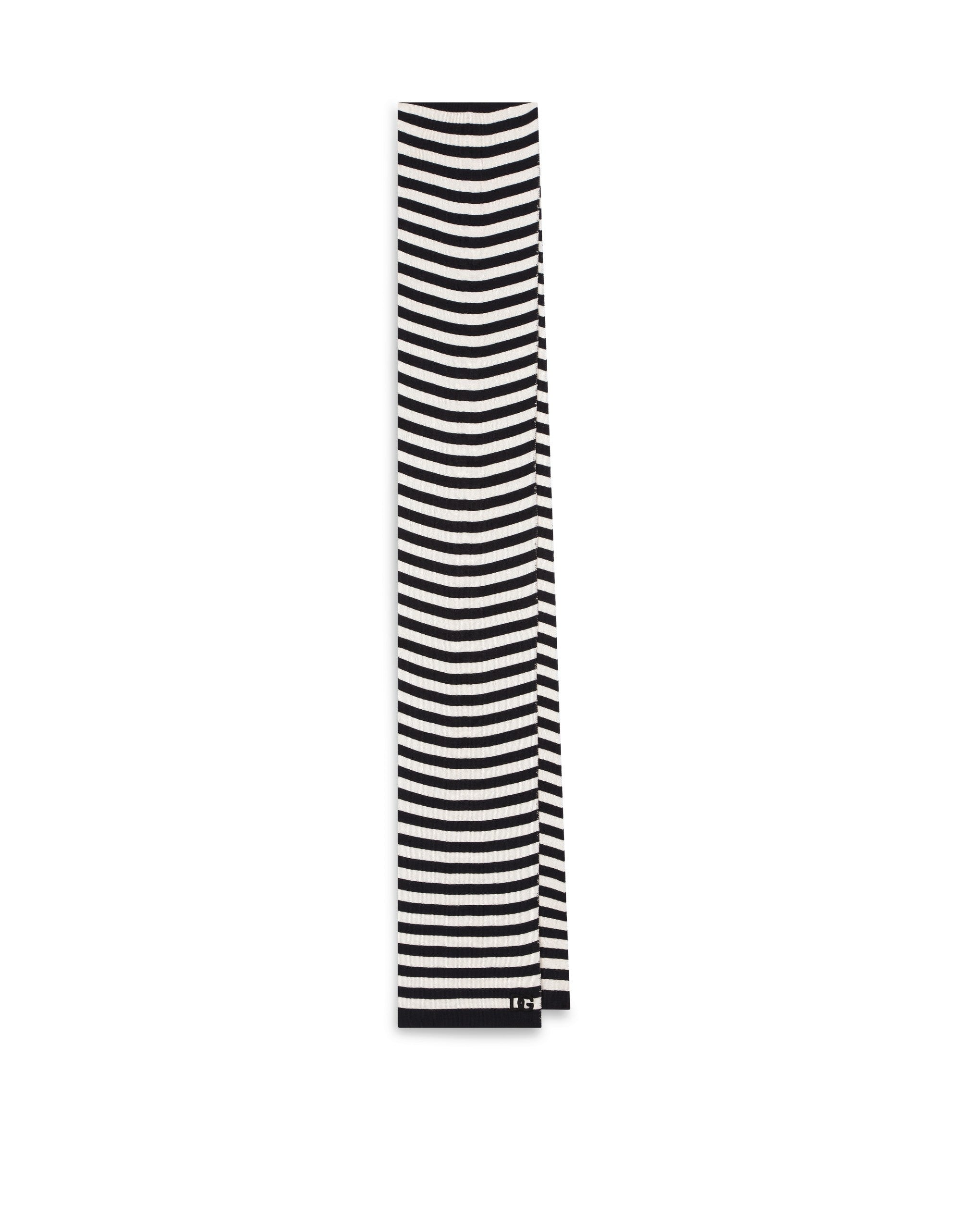 The Marina line has us dreaming of the Mediterranean sea and its myriad shades of blue, while also bringing weathered sailors to mind, yet with a contemporary edge. Aesthetic influences and clear lines. Stormy sea blue jackets, multi-pocket pieces, waterproof garments, anchor prints and materials that invite us to discover the “lighthouse keeper”. Fascinating, enigmatic and at times lonely, it tells the tale of a new masculine sensuality built with small yet precise proportions and attention to stylish detail. Silk scarf with DG logo patch: • Blue and White • 14-gauge knit • Measurements: 18 x 250 cm • Made in Italy