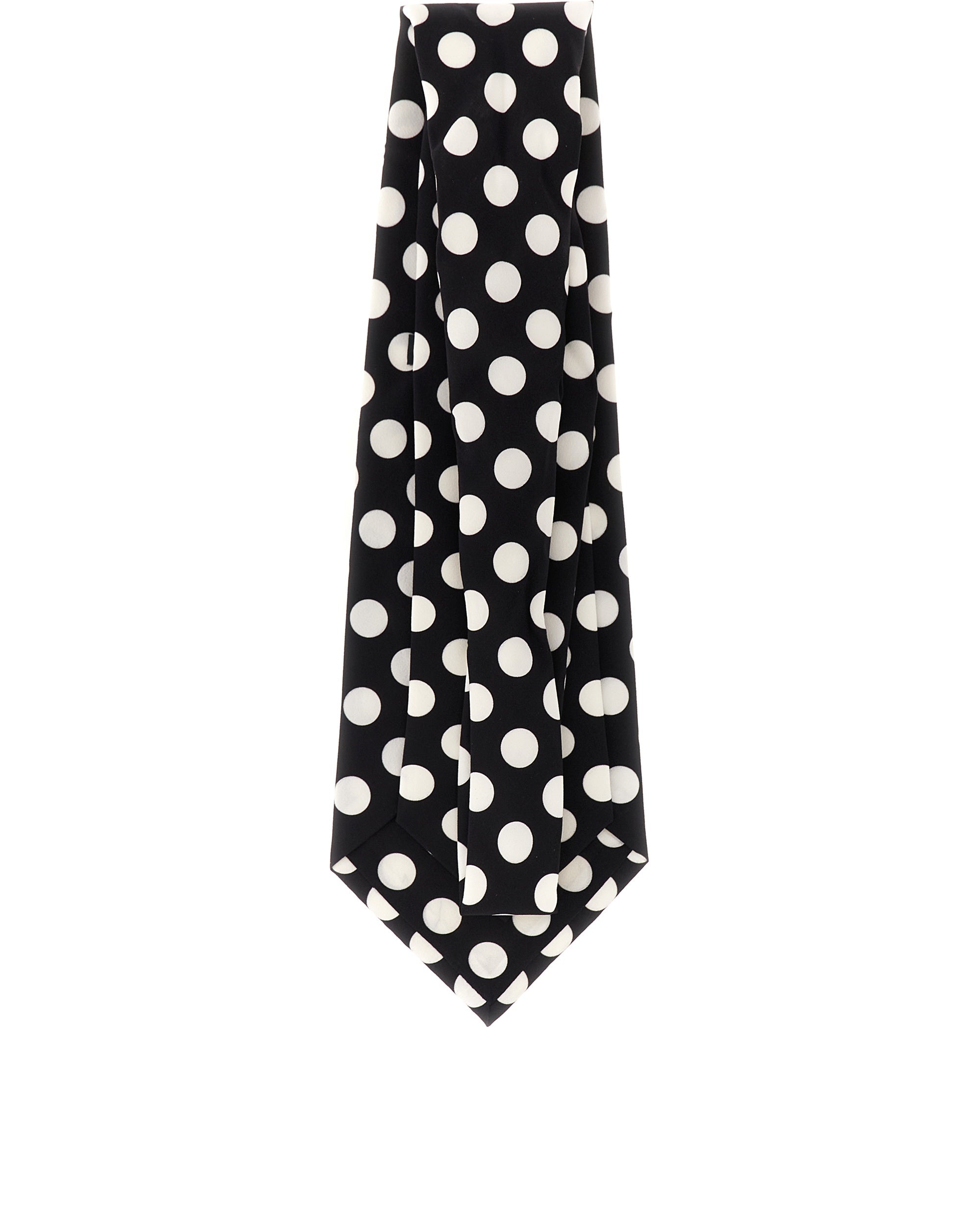 Silk twill tie with polka-dot print: • Pointed tip • 12-cm blade • Single loop on the back with branded label • Made in Italy External composition: 95% Silk 5% Spandex