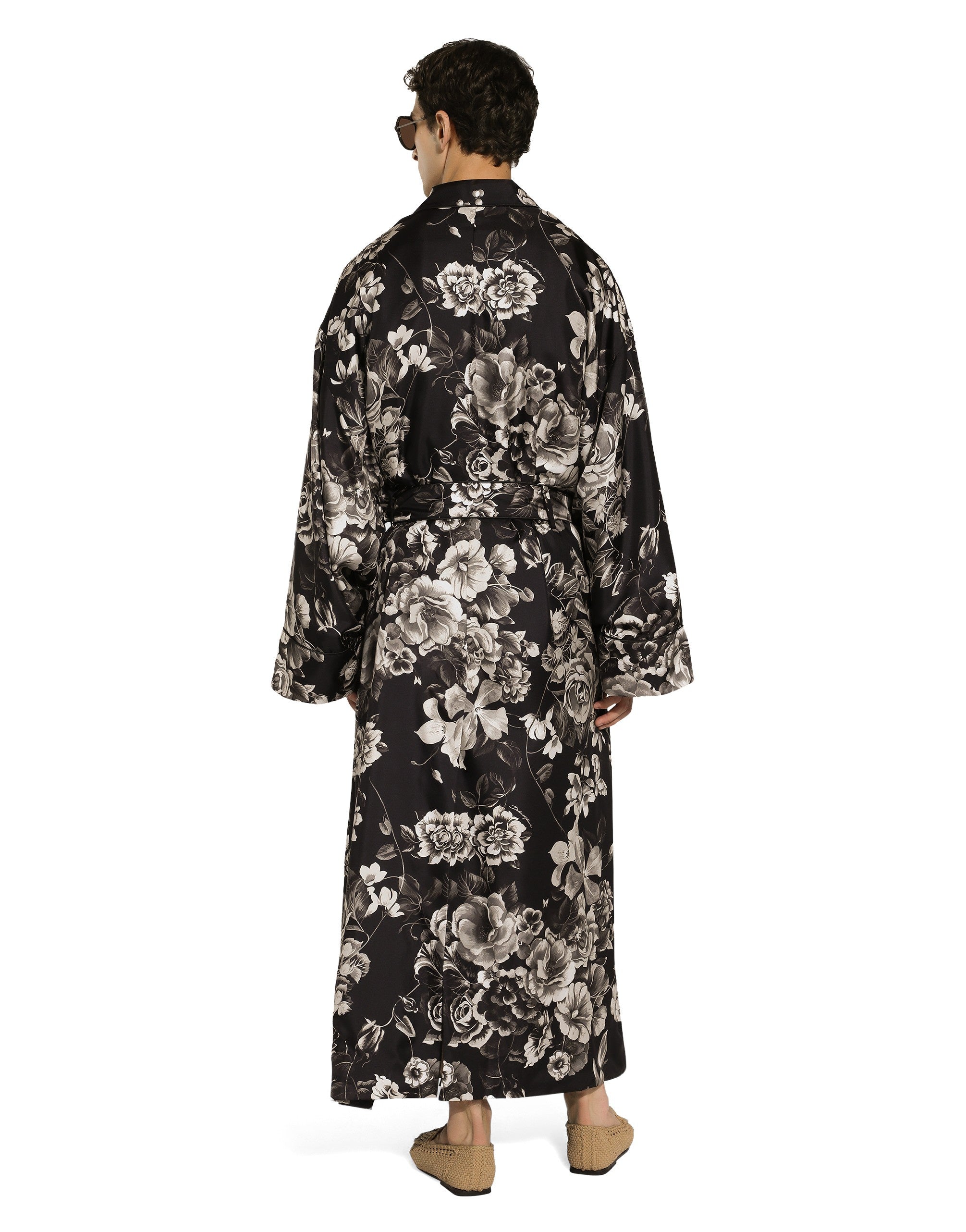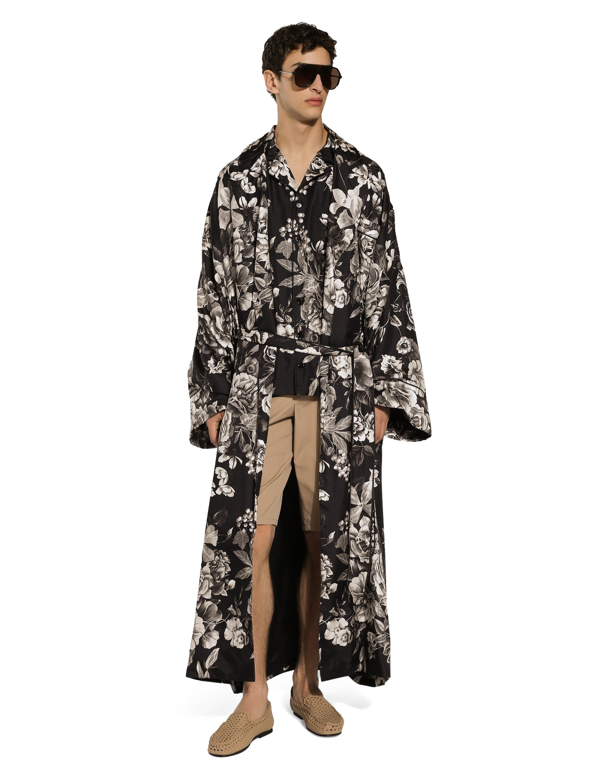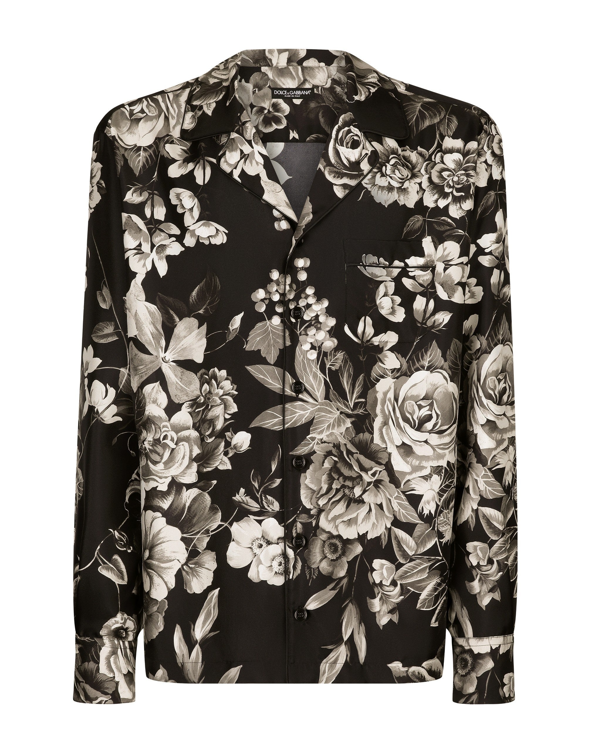 The Palermo collection represents the link between the Sicilian man’s world and the unspoiled nature of the island. A language marked by warm hues – sand, cream, Nero Sicilia black – floral paintings and iconic prints. The Dolce&Gabbana closet must-haves have been reworked in different materials, in pursuit of a new form of harmony. A collection rich in suggestion, such as the stripes inspired by the old mattresses of the 1940s and 1950s, and the timeless aesthetic of the looks. Silk twill shirt with floral print: • Black • Loose fit • Shirt-style collar • Button fastenings • Long sleeves • Patch breast pocket • Tonal piping • The piece measures 78 cm from the rear collar seam on a size IT 40 • Made in Italy The difference in the print placement that you may find on this product is a feature of Dolce&Gabbana’s “Handmade” pieces. A detail that makes every garment or accessory unique and exclusive.