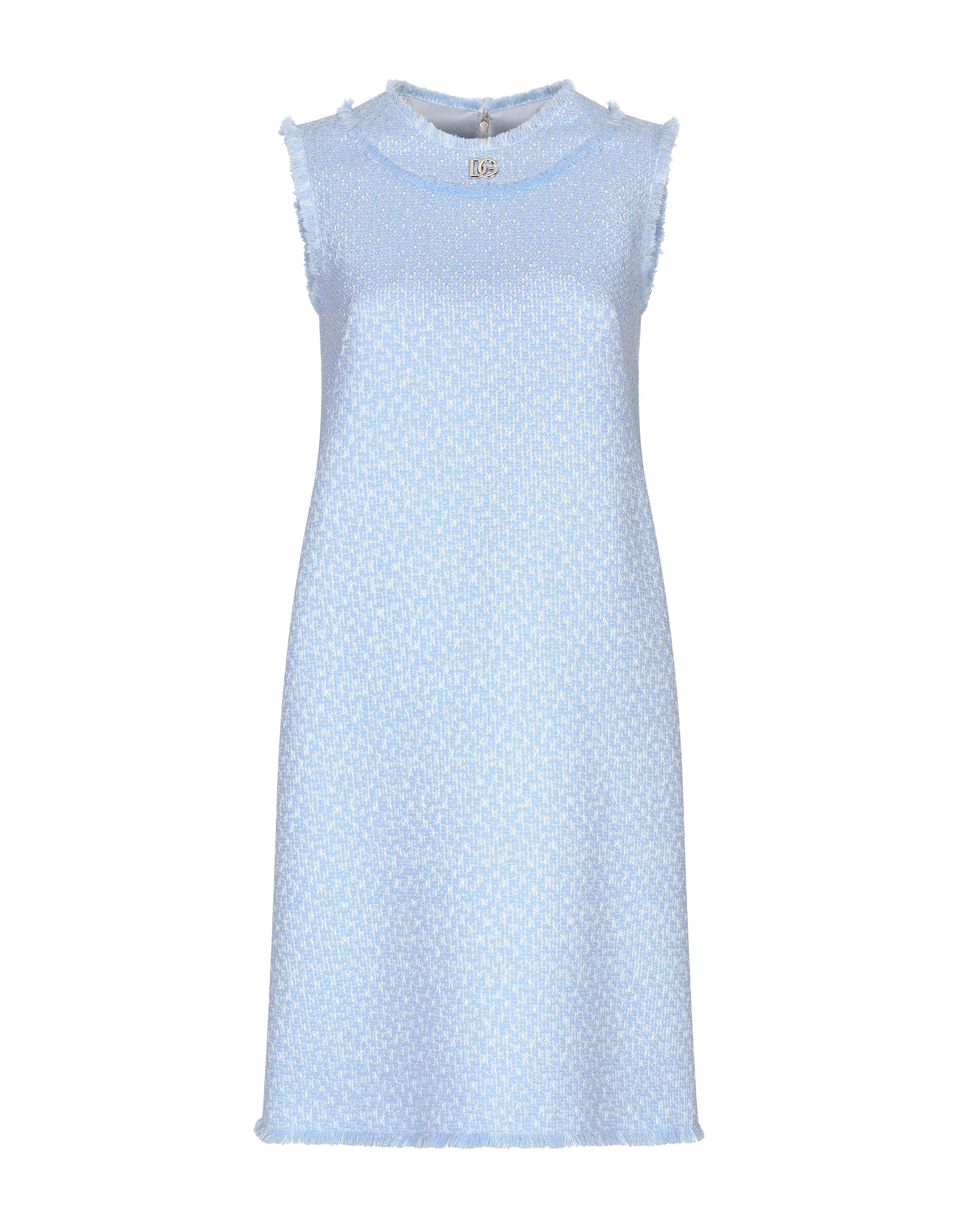 The Women’s DNA Collection is introducing a new side to femininity, which comes in shades of rose quartz, poised between sheerness and opacity, lightness and structure, formality and sensuality. Geometric Dolce Jackets, jacquard pajamas and floral brocade dresses intertwine with ultra-romantic designs. The DG print becomes an iconic statement, while Cordonetto lace and hints of Sicily Black embody the essence of a determined yet romantic femininity. Sleeveless wool raschel tweed dress with DG logo: • Pink • Round neckline • Sleeveless • Sack fit • Tonal stretch silk satin lining • Rear zipper and hook-and-eye fastening • The piece measures 55 cm from the waist down on a size IT 40 • The model is 175 cm tall and wears a size IT 40 • Made in Italy