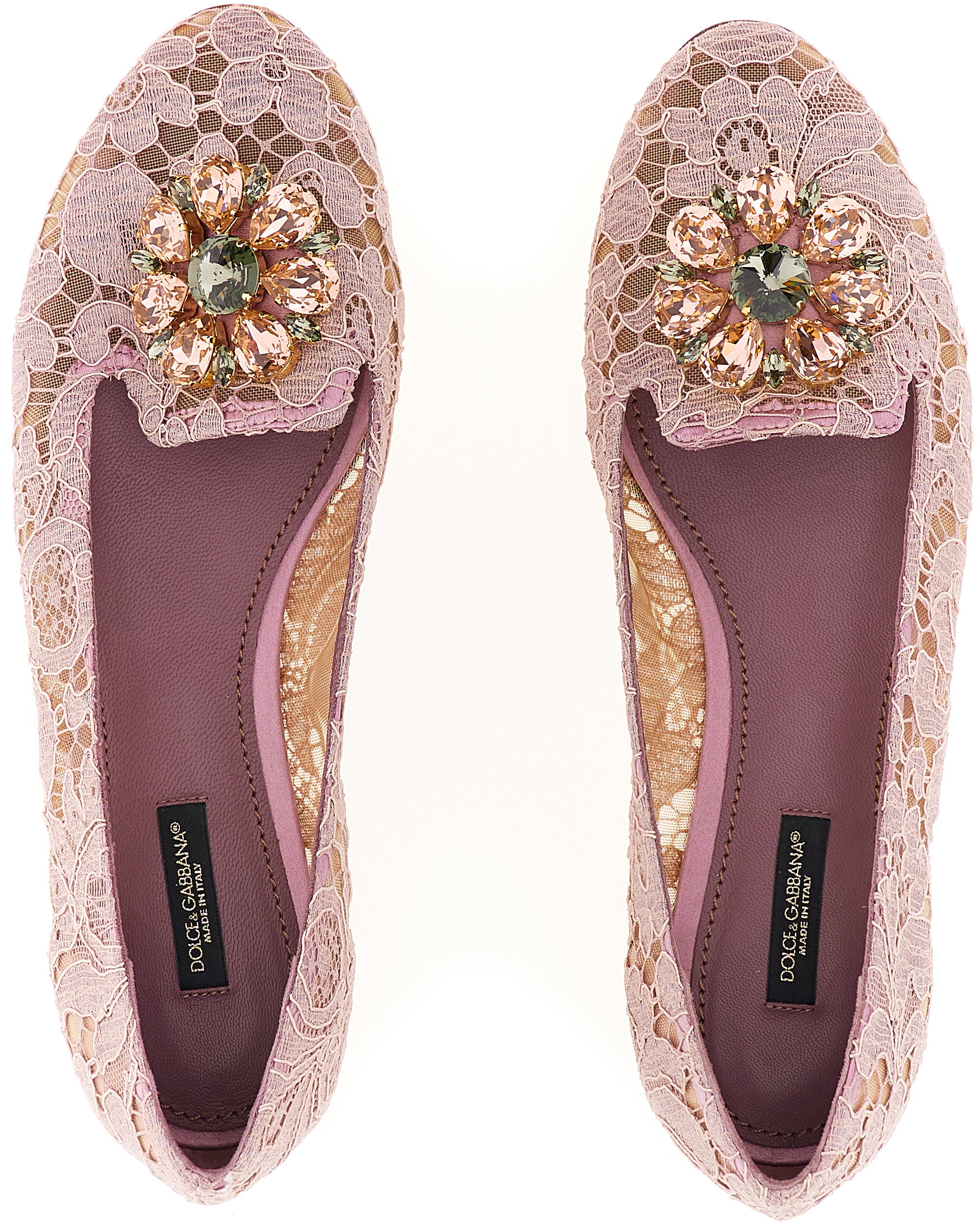 SLIPPER IN TAORMINA LACE WITH CRYSTALS