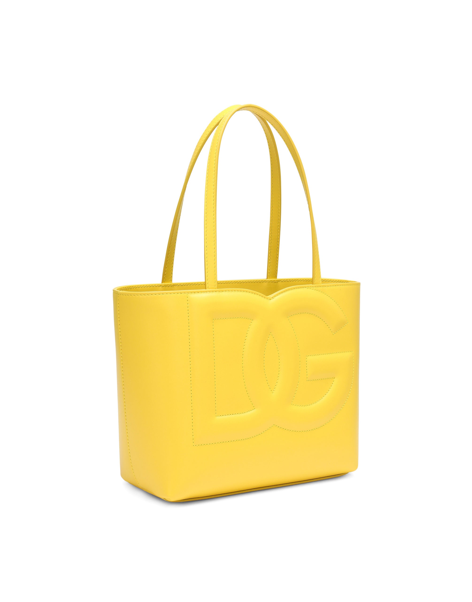 Iconic style is being given some contemporary edge, creating a new vision of the brand’s signature aesthetic. Defined by its refined geometric lines, this small shopper pays tribute to our Logo. Practical and compact, it comes in 100% calfskin and features the quilted 3D-effect DG logo. Small calfskin DG Logo shopper: • Light blue • Calfskin top handles • Printed nylon lining featuring a zipped pocket and flat pocket • Item comes with a branded dust bag • Measurements: H20 x W23.5 x D10 cm • Made in Italy