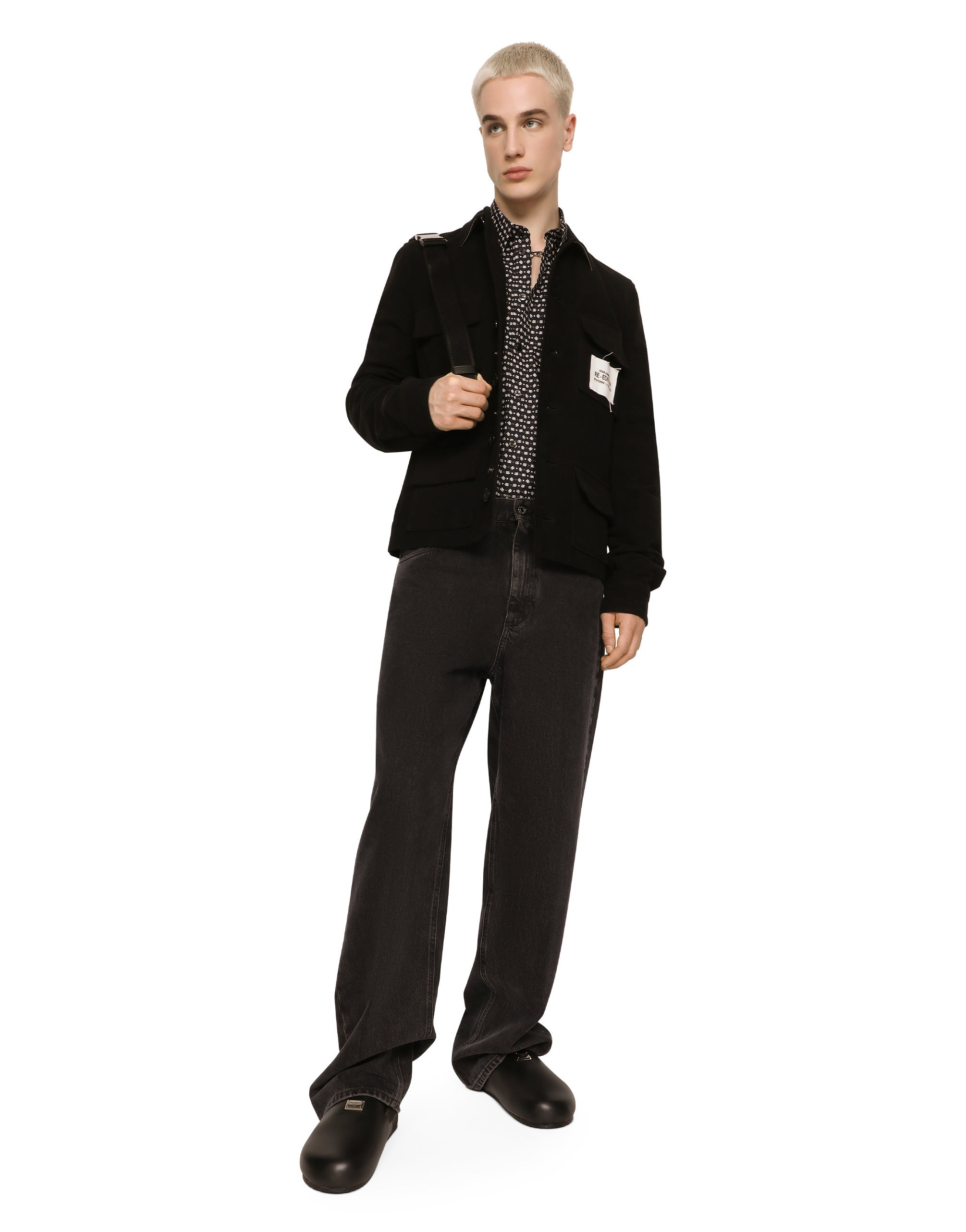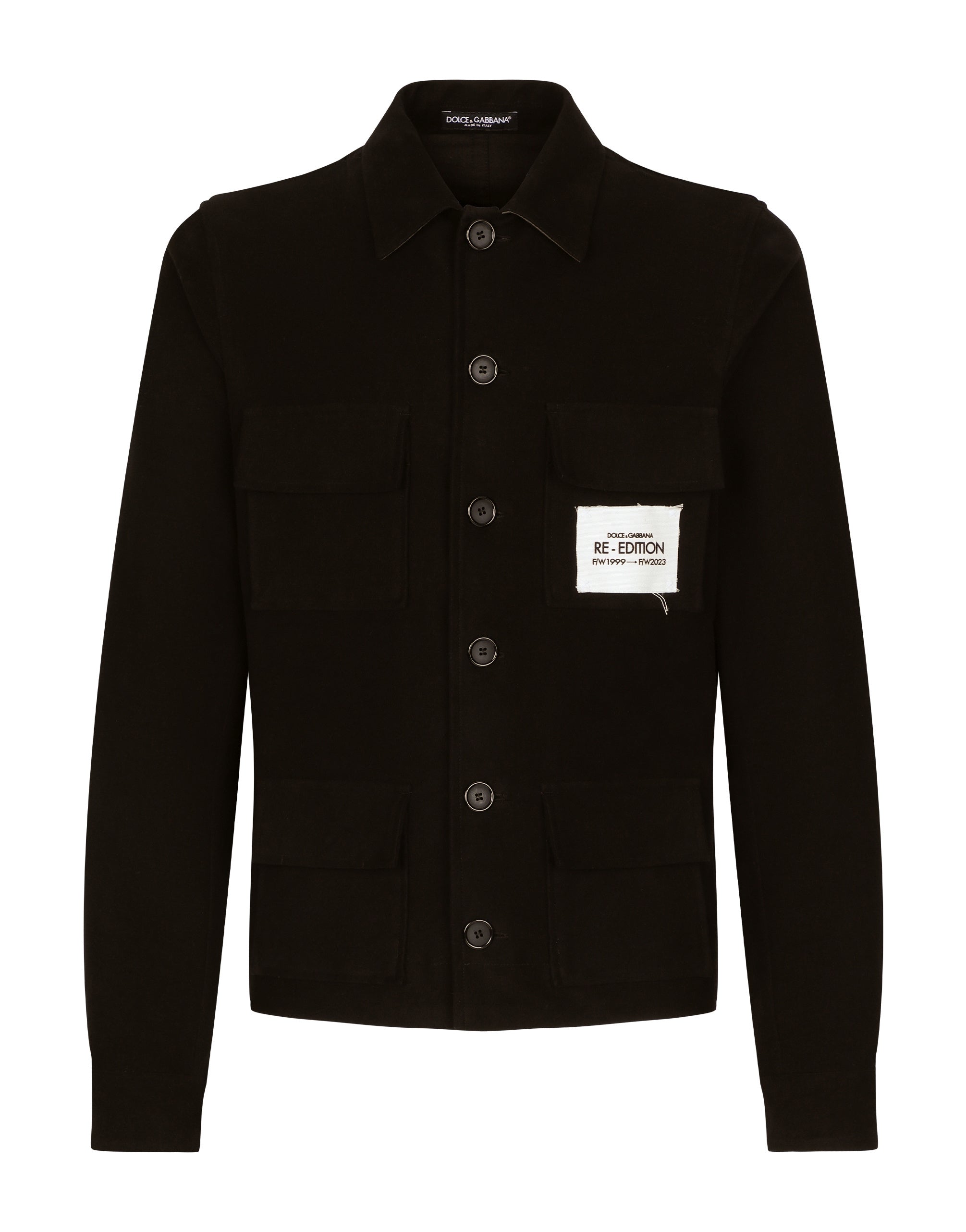 For FW23, Dolce&Gabbana rereads its own historical archive, which is an inexhaustible source of inspiration that is rich in fascination and creativity. The garments accompanied by a “Re-Edition” label report the dates referenced by the collection. Each look enhances in all its sophistication the concept of timeless relevance of a historical archive allowing new generations to discover a past but always current universe that is rich in creative insights and possible personal interpretations. Sporty stretch cotton fustian shirt with multiple pockets and the Re-Edition label: • Black • Regular fit • Kent collar • Long buttoned sleeves • Button fastenings • Flap patch pockets • The piece measures 68 cm from the rear collar seam on a size IT 40 • The model is 185 cm tall and wears a size IT 40 • Made in Italy
