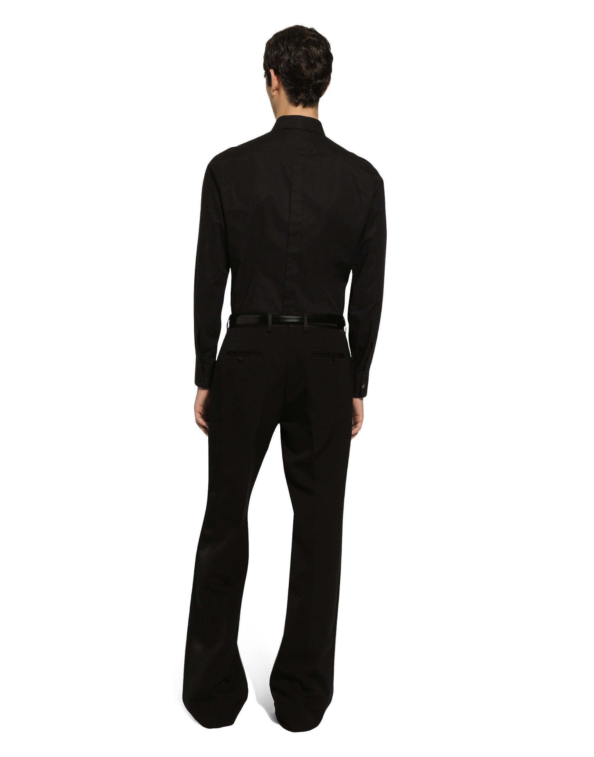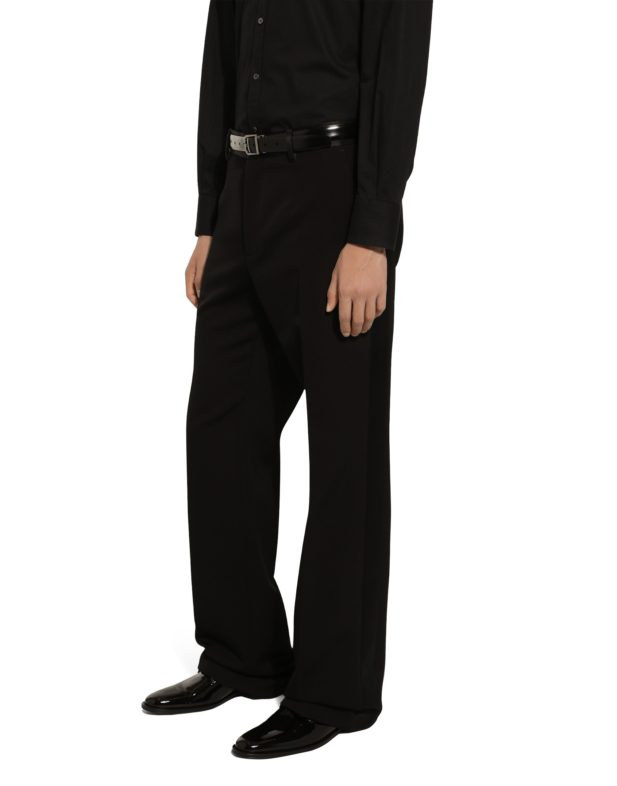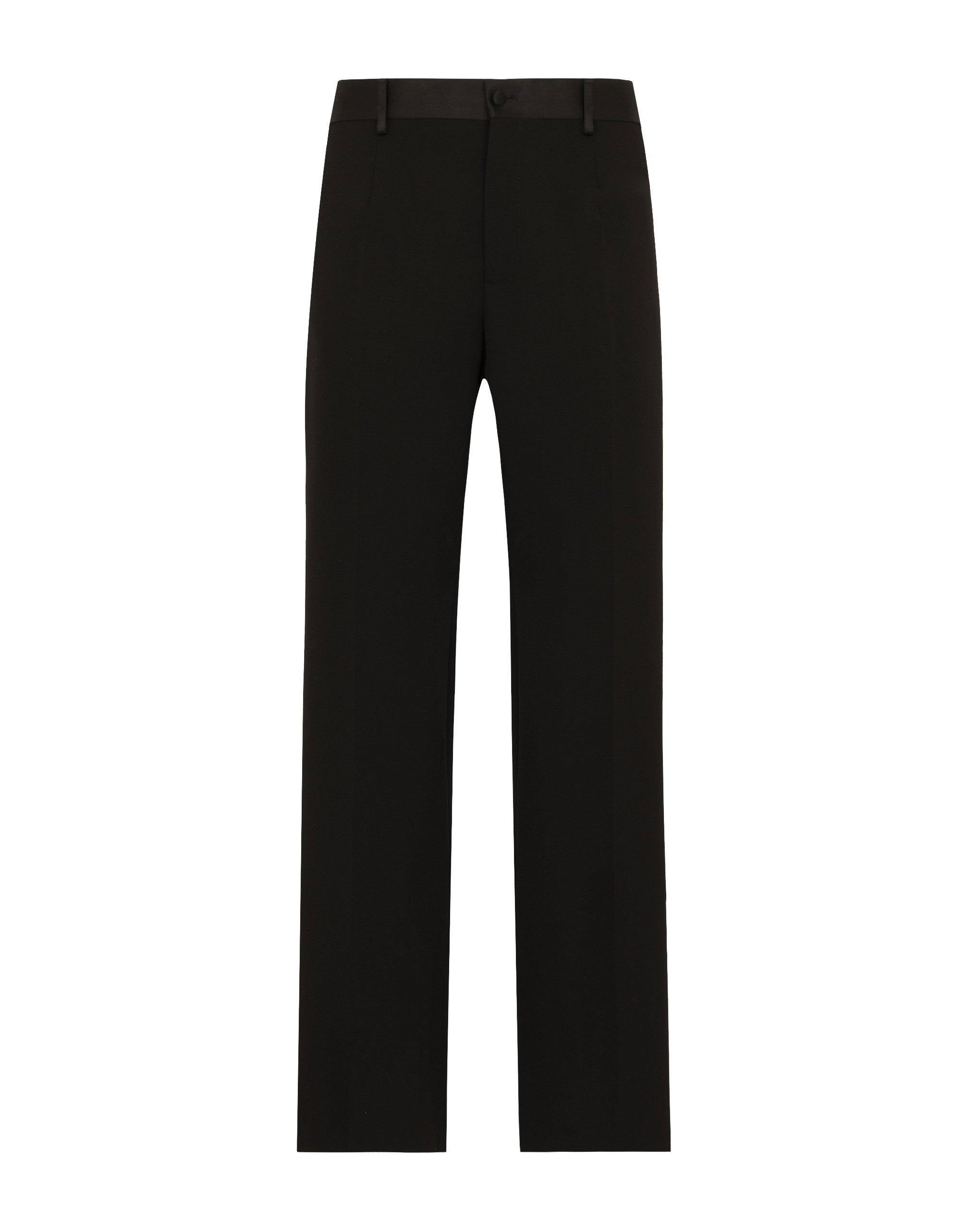 The Holiday collection is an extraordinary story that brings together two worlds: Dolce&Gabbana and the great stars from Hollywood’s Golden Age, who were recognized and admired for their wonderful dresses and extraordinarily glamorous looks. The designers are reinventing and making us dream in front of tailored pieces with breathtaking elegance and visual impact, a sparkling mood that will give everyone a modern, recognizable and unique allure on any occasion. Tailored virgin wool straight-leg pants with silk duchesse details: • Black • Regular fit • Belt loops on the waist • Fly-covered zipper and button fastening • Front slant pockets and buttoned welt pockets at the back • The item measures 120 cm on the outer leg and the hem is 28 cm wide on a size IT 48 • Made in Italy
