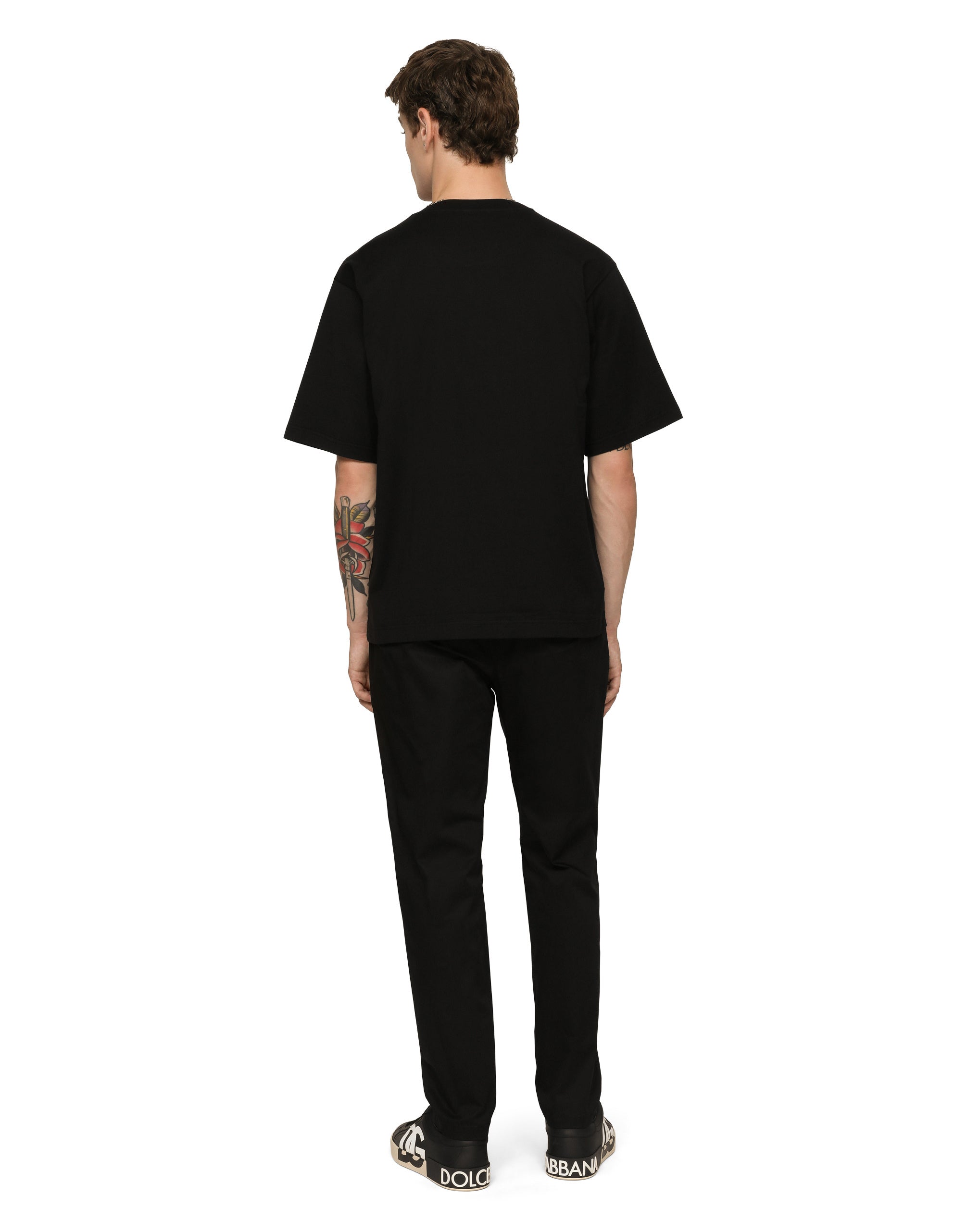 Sporty jogging pants in stretch cotton with a rubberized plate featuring the Dolce&Gabbana logo. • Regular fit • Stretch waistband with drawstring and aglets • Front and back welt pockets with zipper • The hem is 17 cm - 6.7 inches wide on a size IT 48 • The item measures 99 cm - 39 inches on the outer leg on a size IT 48 • The model is 185 cm - 72.8 inches tall and wears a size IT 48 • Made in Italy