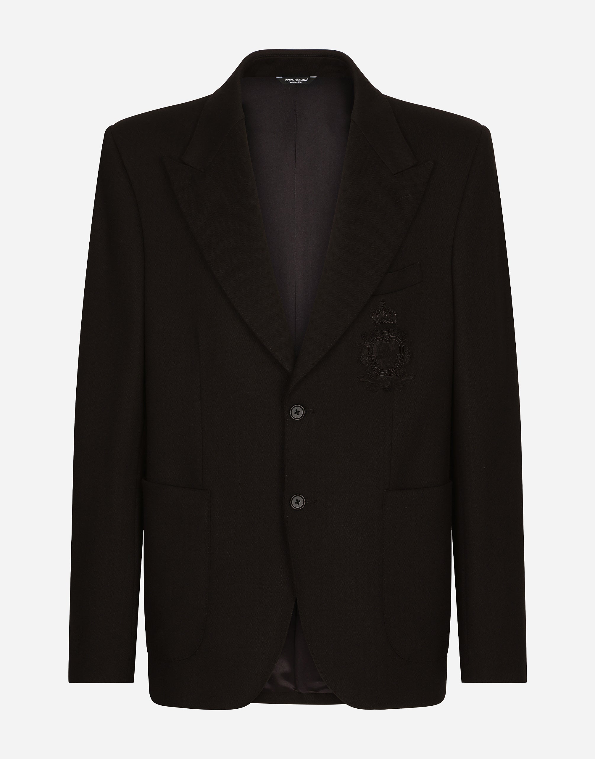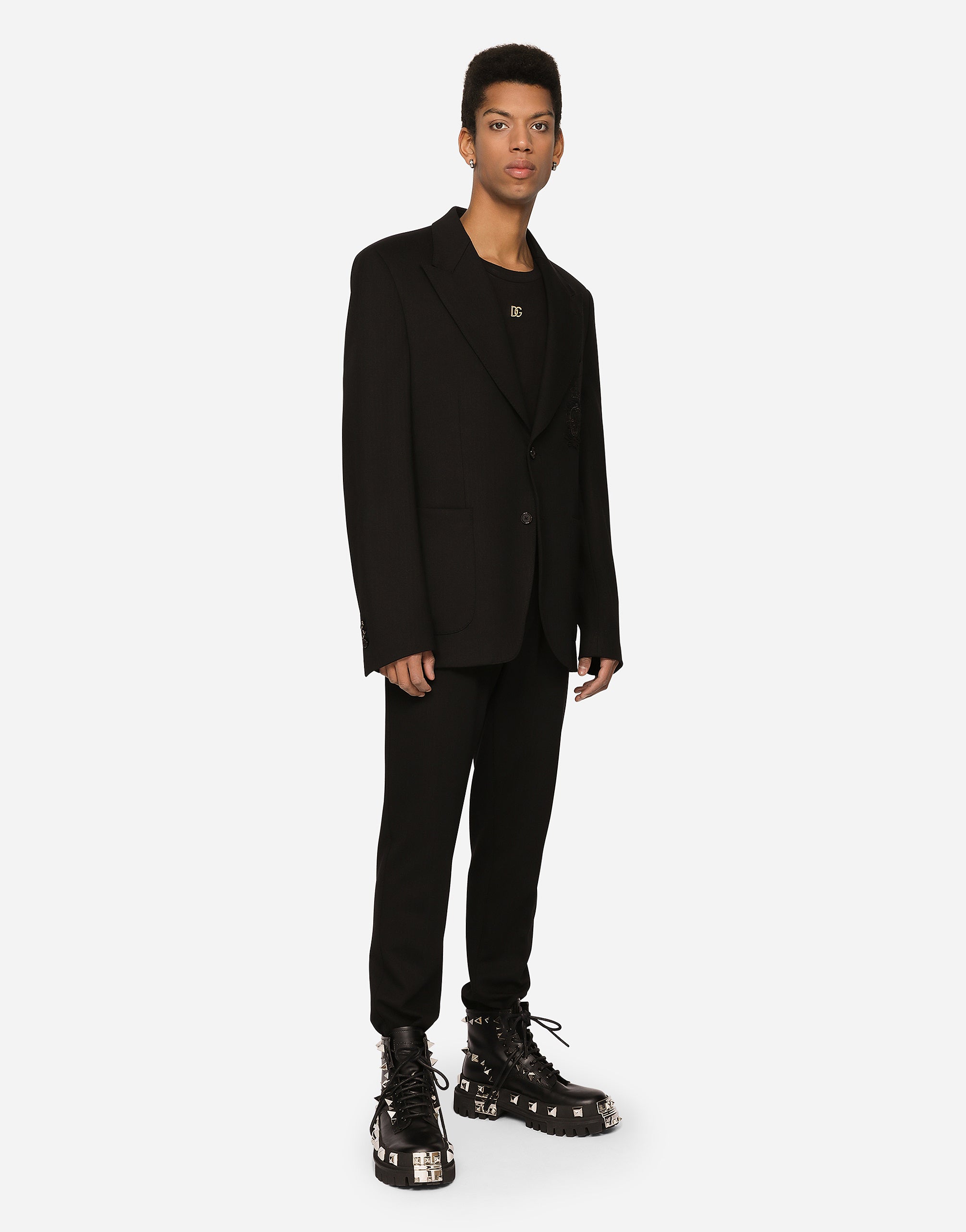 The “Dark Side” Collection is inspired by the Punk Rock movement that was on the rise in England and the United States in the mid-70s. Looking at Punk, Dolce&Gabbana is paying tribute to the legends of entire generations, celebrating uniqueness, individuality and provocation by making men free to express themselves with the language of today. Deconstructed single-breasted stretch jersey jacket with heraldic DG patch. • Regular fit • Peak lapels • Double-button fastening on the front • Outer patch pockets and welt pockets on the interior • Buttoned cuffs • Side slits • Lined • The piece measures 73.5 cm from the rear collar seam on a size IT 48 • The model is 185 cm tall and wears a size IT 48 • Made in Italy