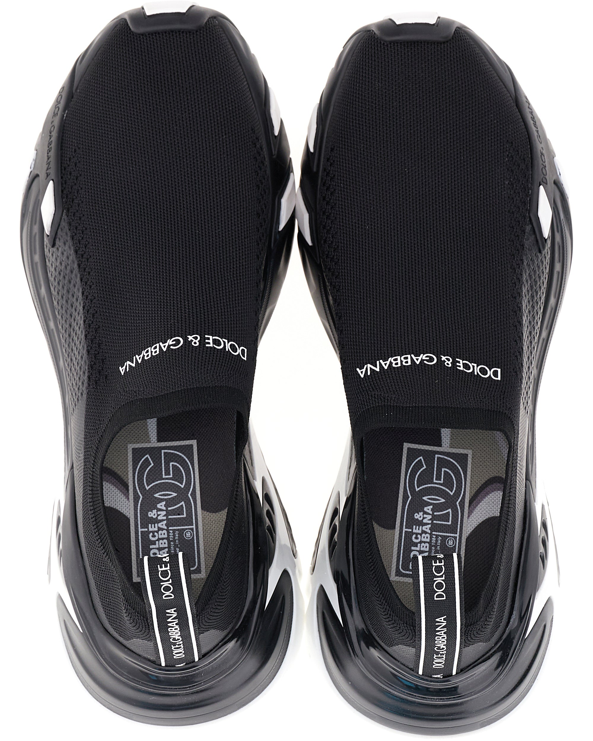 These Fast sneakers come in stretch mesh and feature the new ultra-light sole and contrasting details that emphasize the silhouette. Stretch mesh Fast sneakers with Dolce&Gabbana logo: • Black • Branded pull-tab • Calfskin footbed with branded label • Extra-light two-tone sole • Item comes with a branded dust bag • Made in Italy