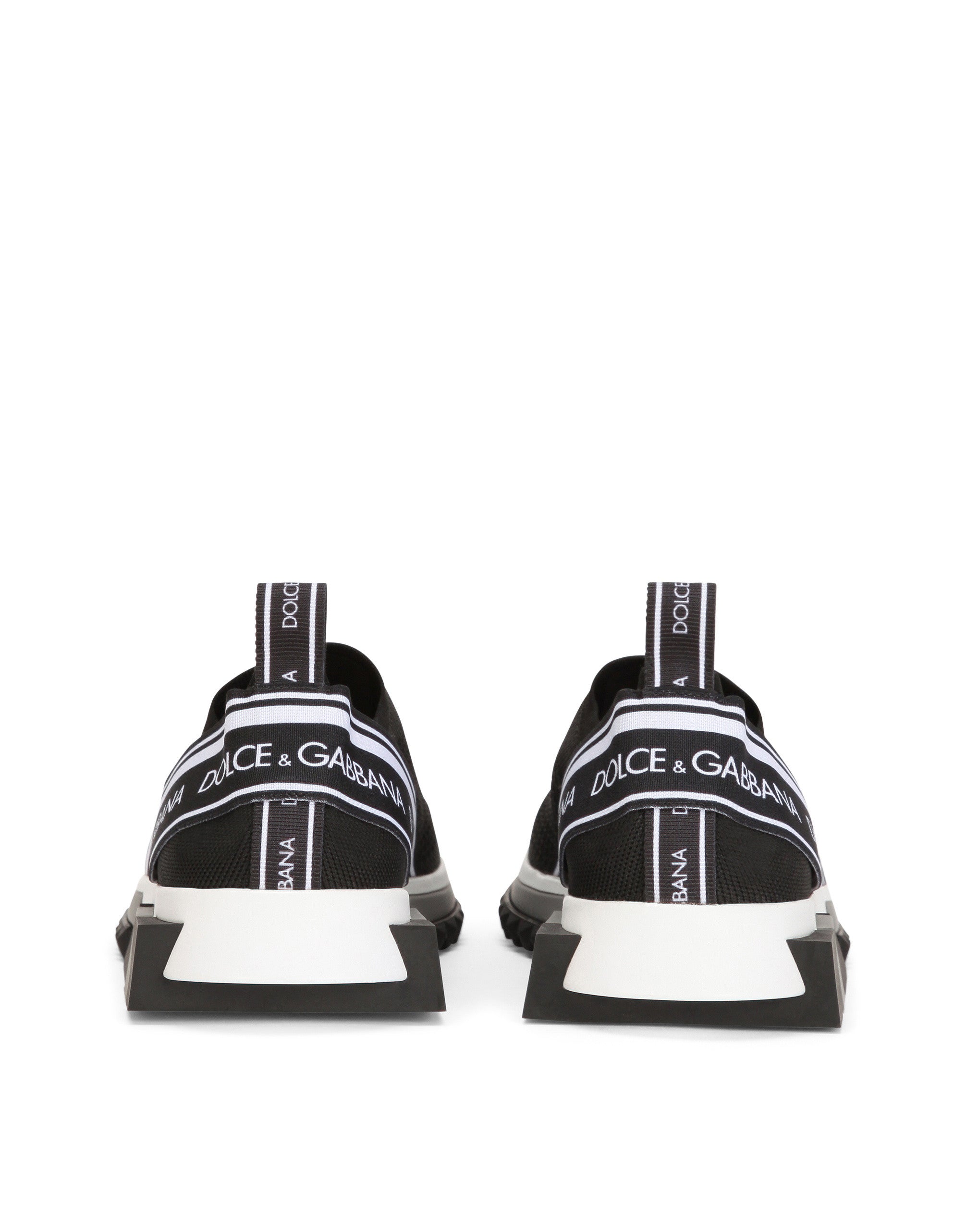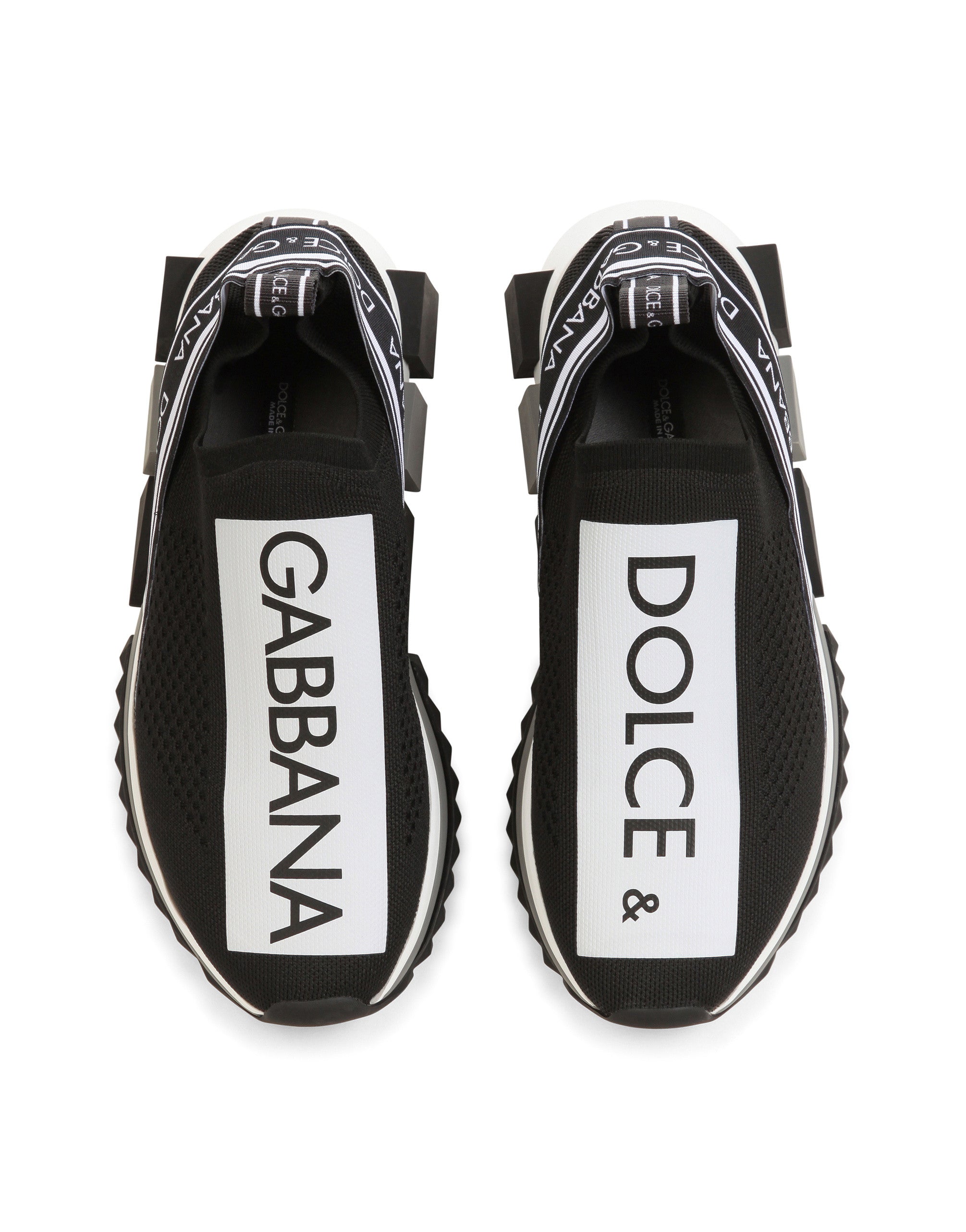 These Sorrento slip-on sneakers come in stretch mesh with the logotape print. This iconic sock-shaped style embodies all the distinctive details of the line. contemporary urban style, a geometric sole and the Dolce&Gabbana logo. • Printed stretch knit upper • Branded, stretch tape on the back • Calfskin footbed with branded label • Extra-light two-tone micro sole • Item comes with themed packaging • Made in Italy • Small fit. we recommend choosing a larger size.