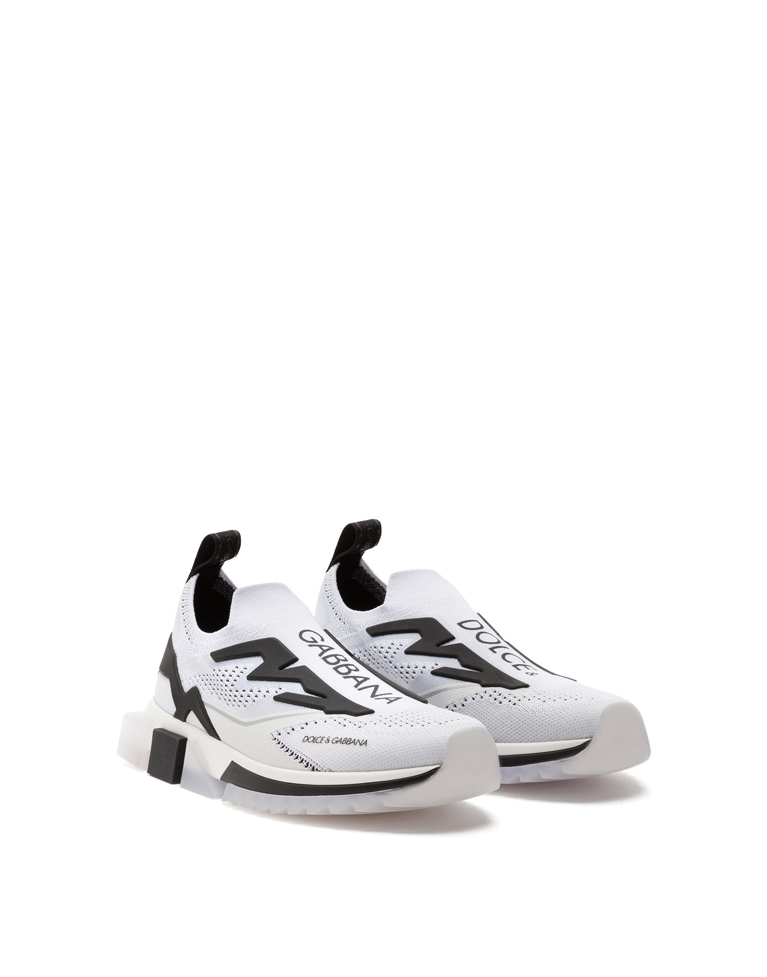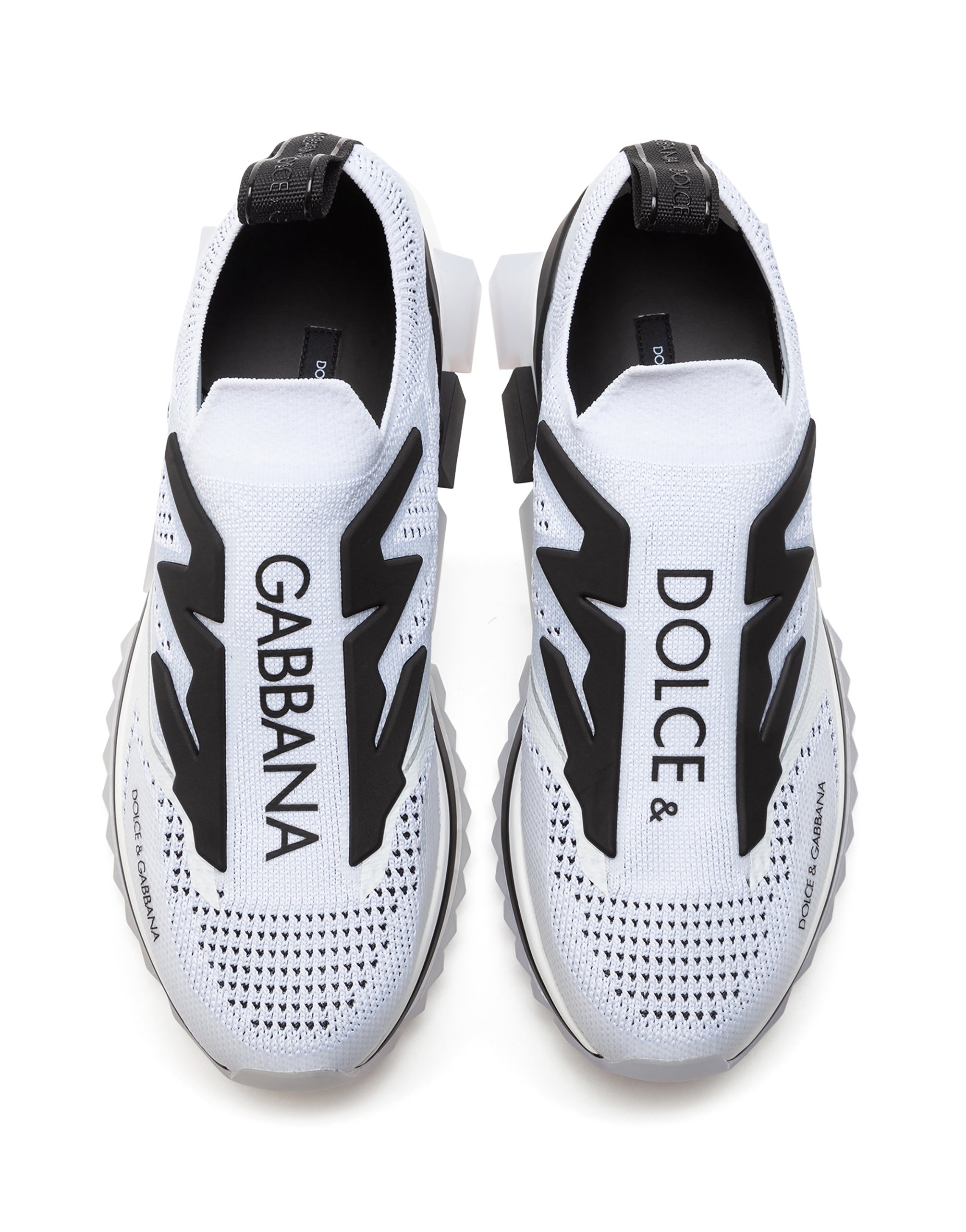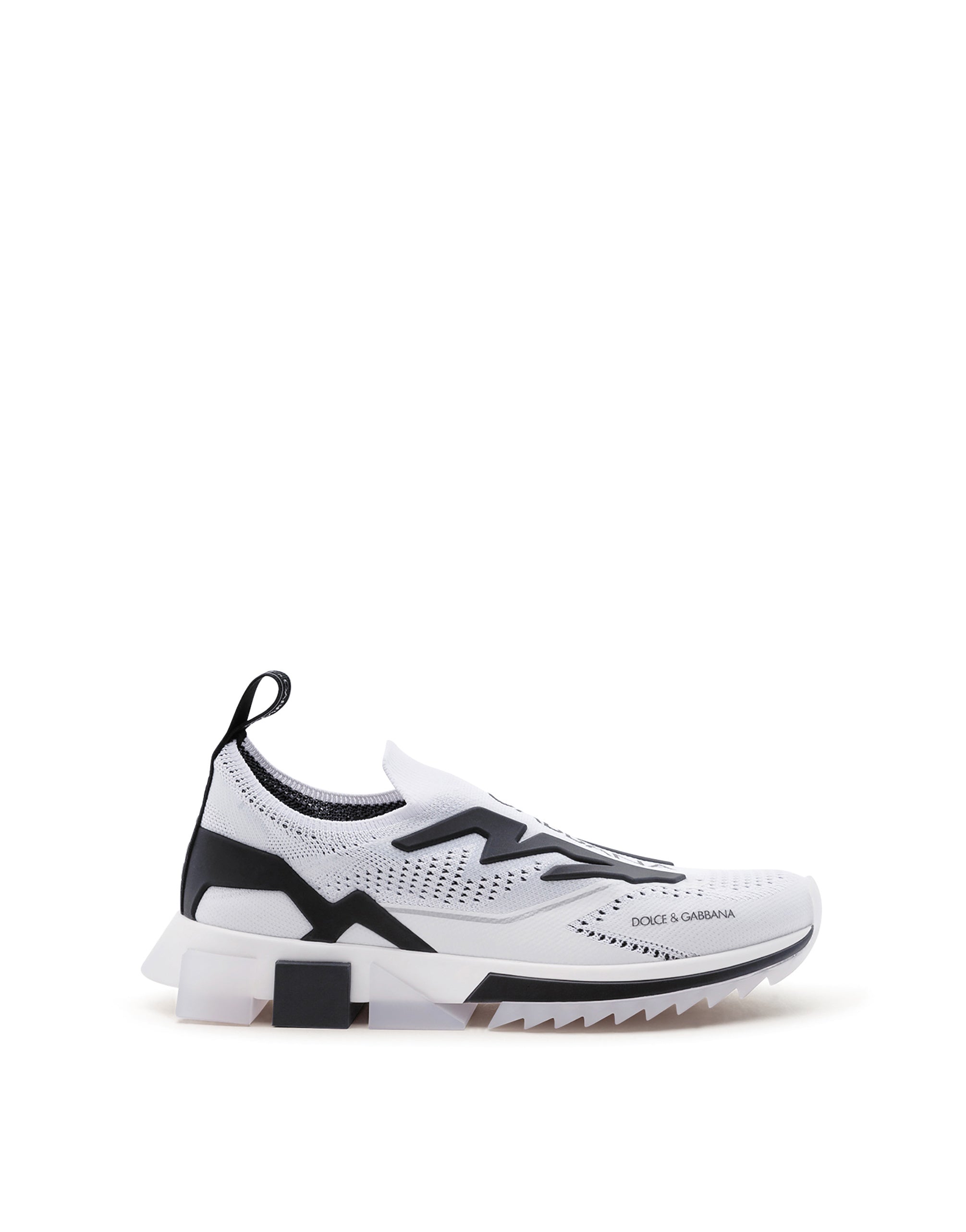 The iconic Sorrento slip-on sneakers in stretch mesh come in a new version, where the logotape print has been framed by rubberized geometric details. The distinctive details of the line are all still there. the contemporary urban style, a geometric sole and the Dolce&Gabbana logo.