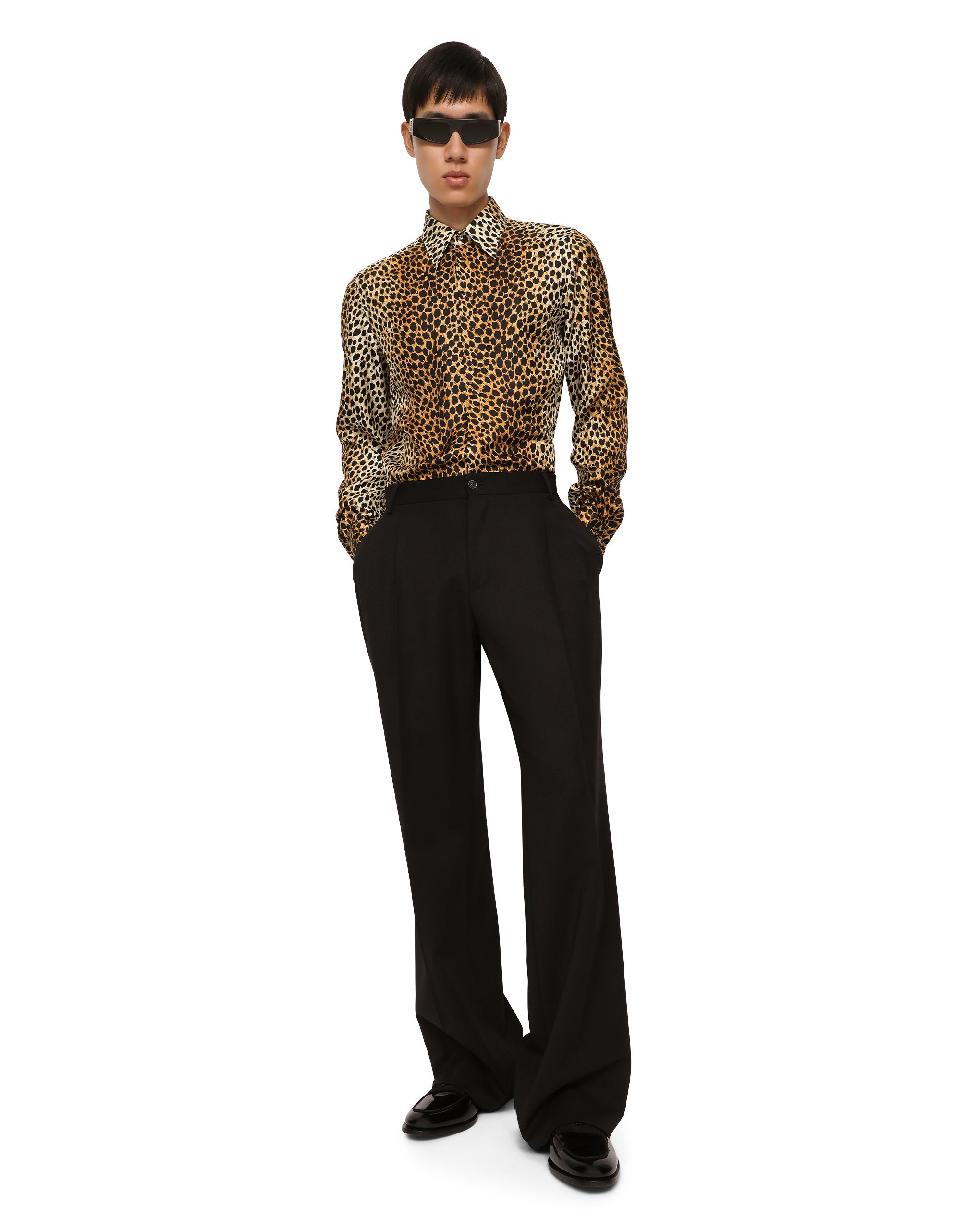 In our “Sartoriale” collection, Dolce&Gabbana’s tailoring tradition has been updated to speak a language that is more suited to the younger generations. New lines and new silhouettes with special details, such as the concealed buttoning on the new Sicilia jacket, the large revers and new proportions, make the iconic tailoring utterly modern. Tailored stretch virgin wool pants with a straight leg: • Regular fit • Belt loops on the waist • Fly-covered zipper and button fastening • Single dart • Front slant pockets and welt back pockets • The item measures 99 cm on the outer leg and the hem is 24 cm wide on a size IT 48 • The model is 185 cm tall and wears a size IT 48 • Made in Italy