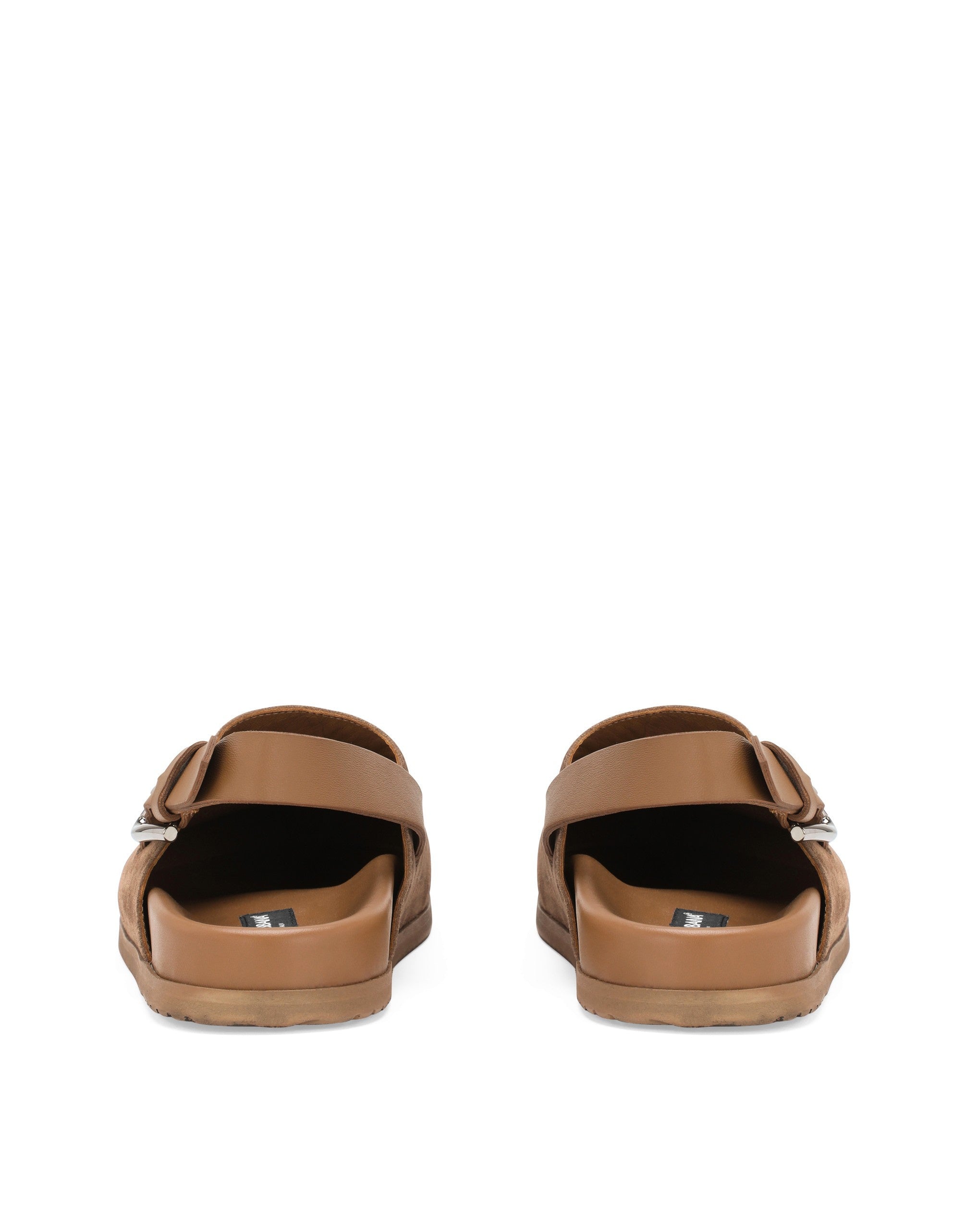 Versatile and contemporary, these D.G. Day mules come in suede and feature the branded tag. Suede mules: • Brown • Branded tag featuring two metal plated finishes • Adjustable calfskin strap • Calfskin footbed with branded label • Branded rubber sole • Item comes with a branded dust bag • Made in Italy
