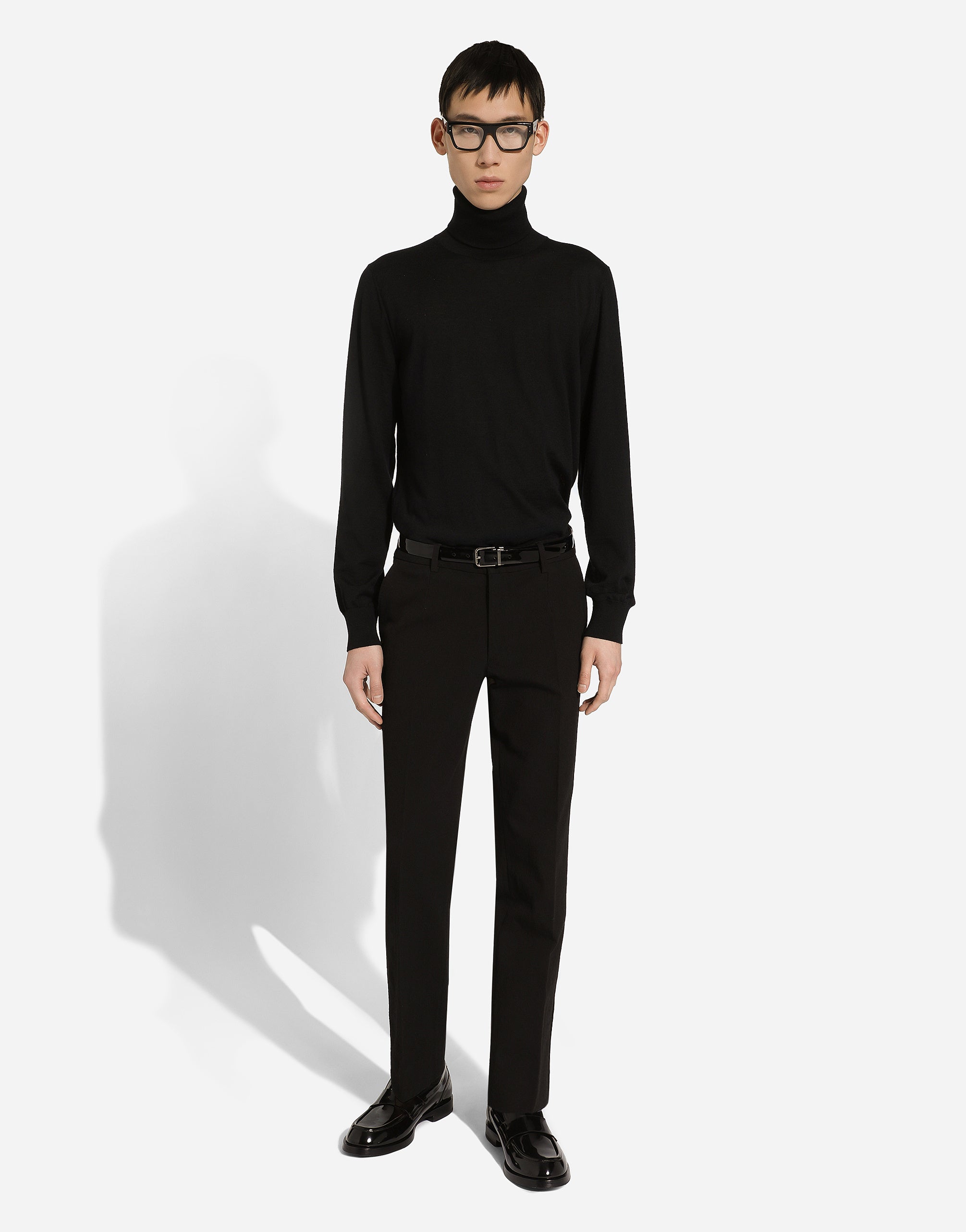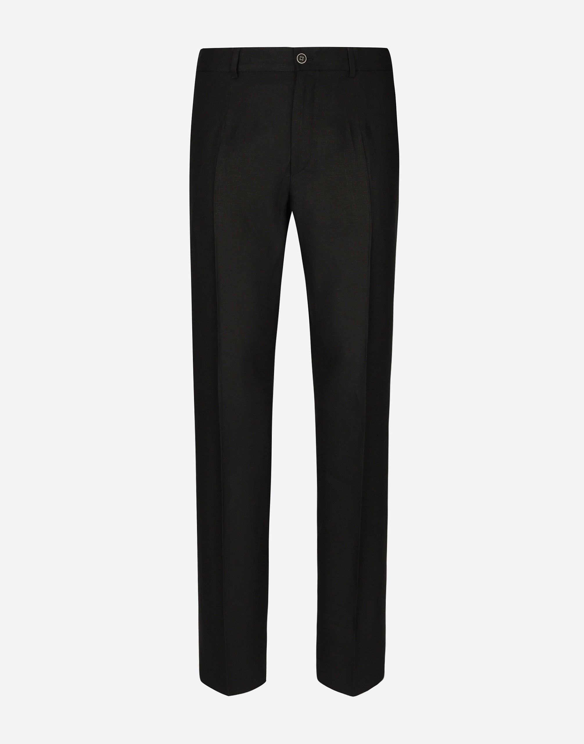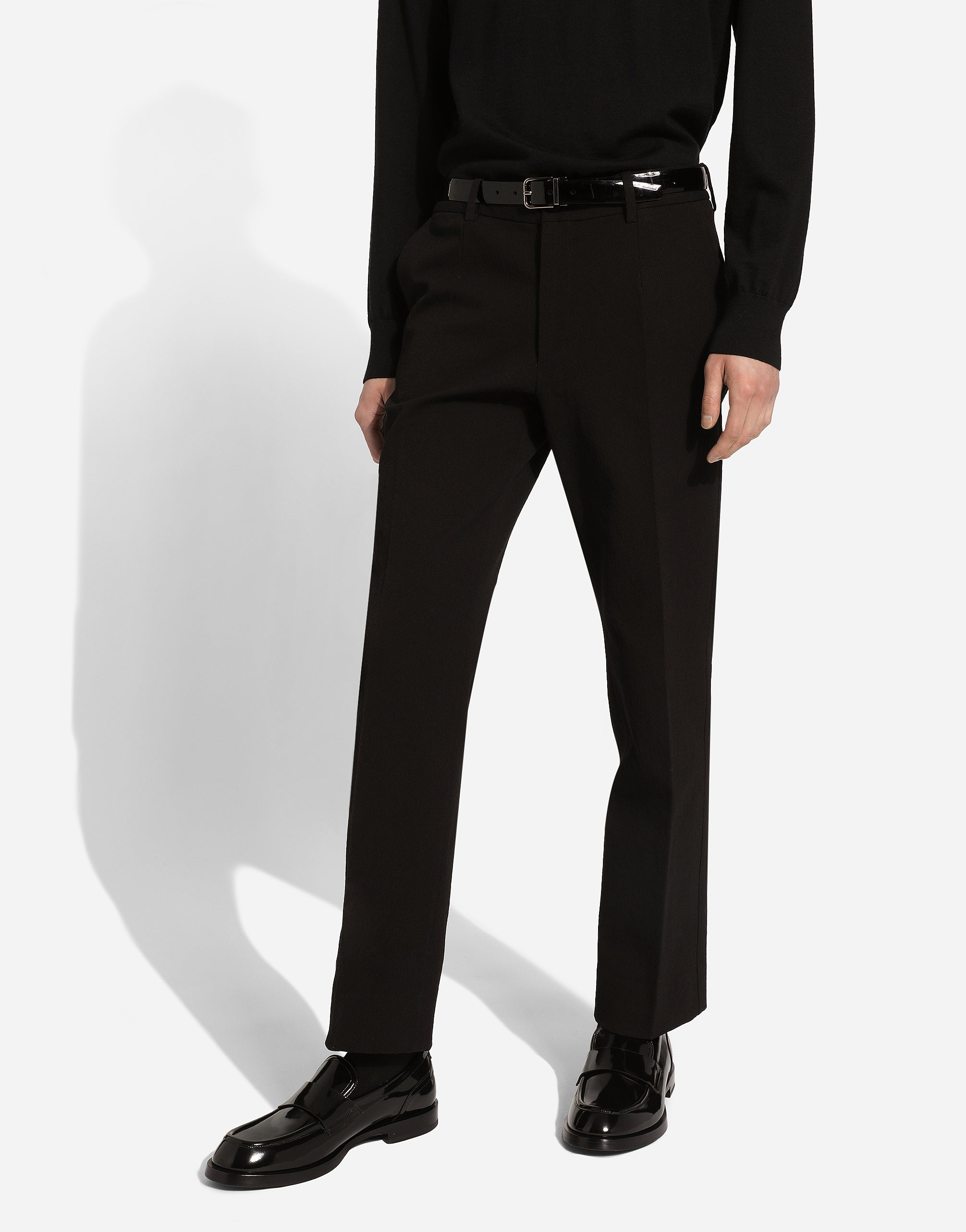The SS24 “Stile” Collection recounts and clearly presents a strong concept: the unique and unmistakable style of Dolce&Gabbana. A word that is more than a statement. It is a concept! The designers work with surfaces, textures, layers and color nuances, as well as the sheen and fineness of the materials themselves, creating a “Stylish” collection. We’re going back to our roots with the desire to reaffirm the “Stile” - style -, flair and iconic DNA of the brand. Tailored stretch cotton pants: • Black • Regular fit • Belt loops on the waist • Fly-covered zipper and button fastening • Front slant pockets and buttoned welt pockets at the back • The item measures 105 cm on the outer leg and the hem is 22 cm wide on a size IT 48 • Made in Italy
