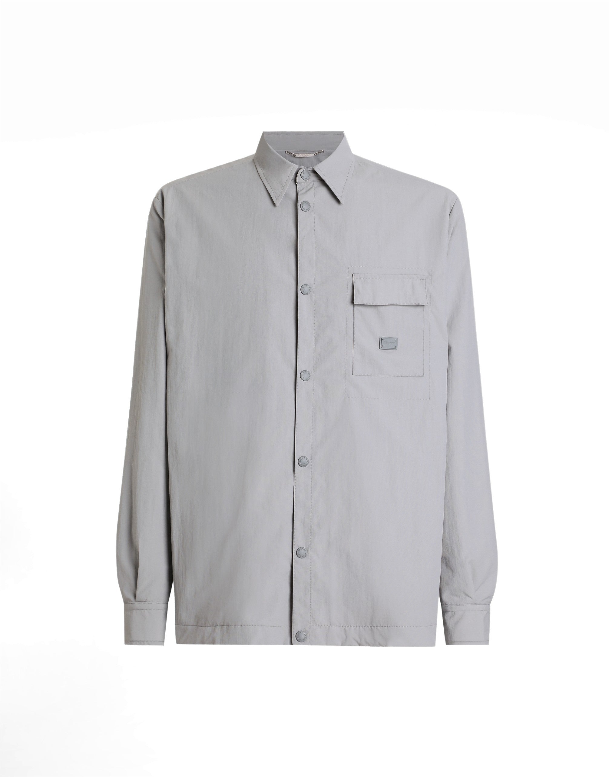 The DNA Men's Collection reimagines daily wear with bold contrasts, meticulous details, and innovative silhouettes. Outerwear stands out with clean lines and high-tech materials, merging sportiness with sophistication in sweaters, sweatshirts, and trousers. A striking color palette, including Black Sicily, caramel, cream, burgundy, and stone gray, pairs with iconic prints like Leopard and Polka dots, enhancing the collection's authentic and refined look. Technical fabric parka with a rubber tag and the tonal Dolce&Gabbana logo: • Gray • Regular fit • Press-stud fastenings on the front • Shirt collar • Patch breast pocket with press-stud fastening • Lined • The piece measures 78 cm from the rear collar seam on a size IT 48 • Made in Italy