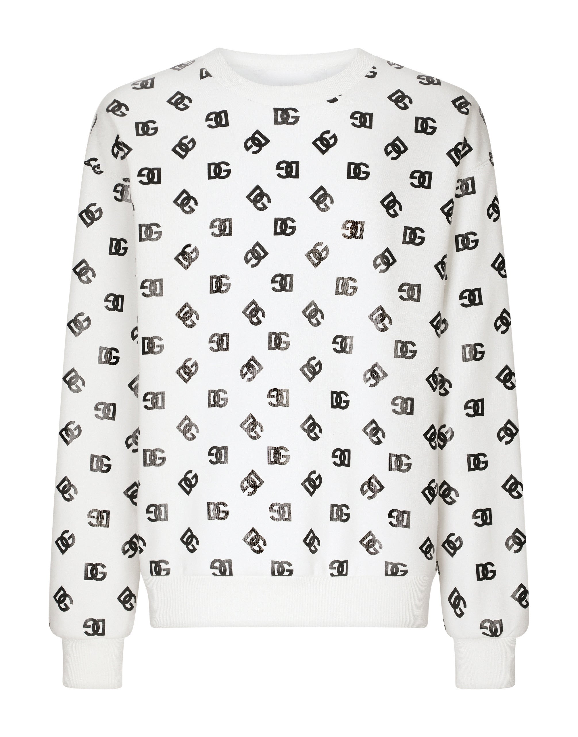 The FW22 Fashion Show was built around new proportions and geometries and features silhouettes that have been created with technical fabrics, graffiti prints and all-over logo detailing. A collection that looks to the future, conveying the current world through technology, the metaverse, the virtual world and the younger generations. Round-neck technical jersey sweatshirt with all-over DG print. • Regular fit • The piece measures 69 cm from the rear collar seam on a size IT 48 • The model is 185 cm tall and wears a size IT 48 • Made in Italy