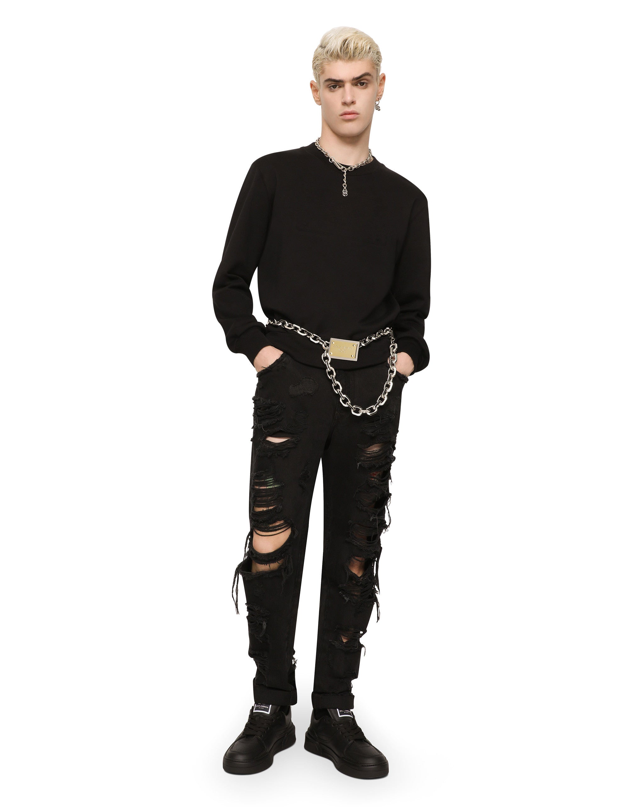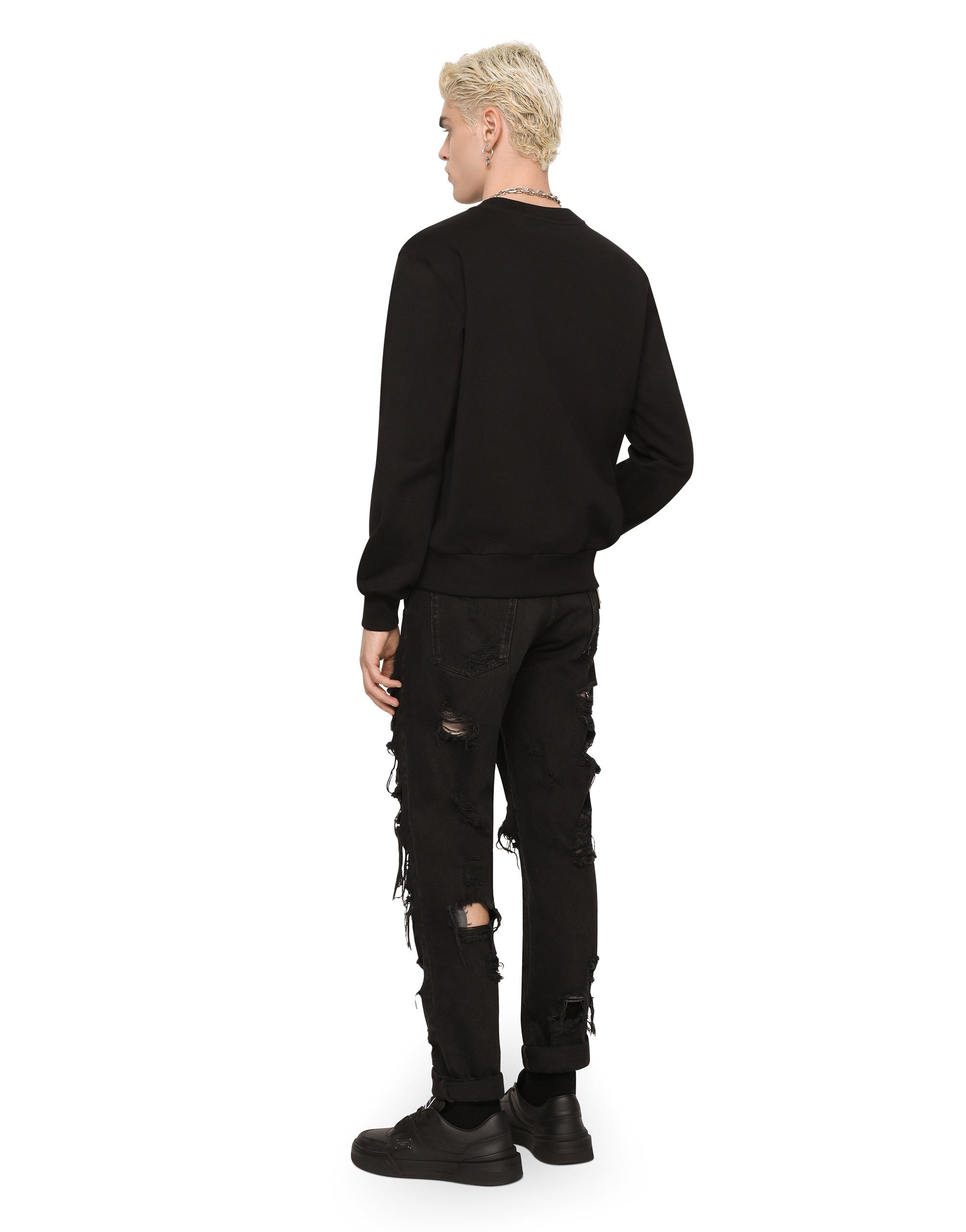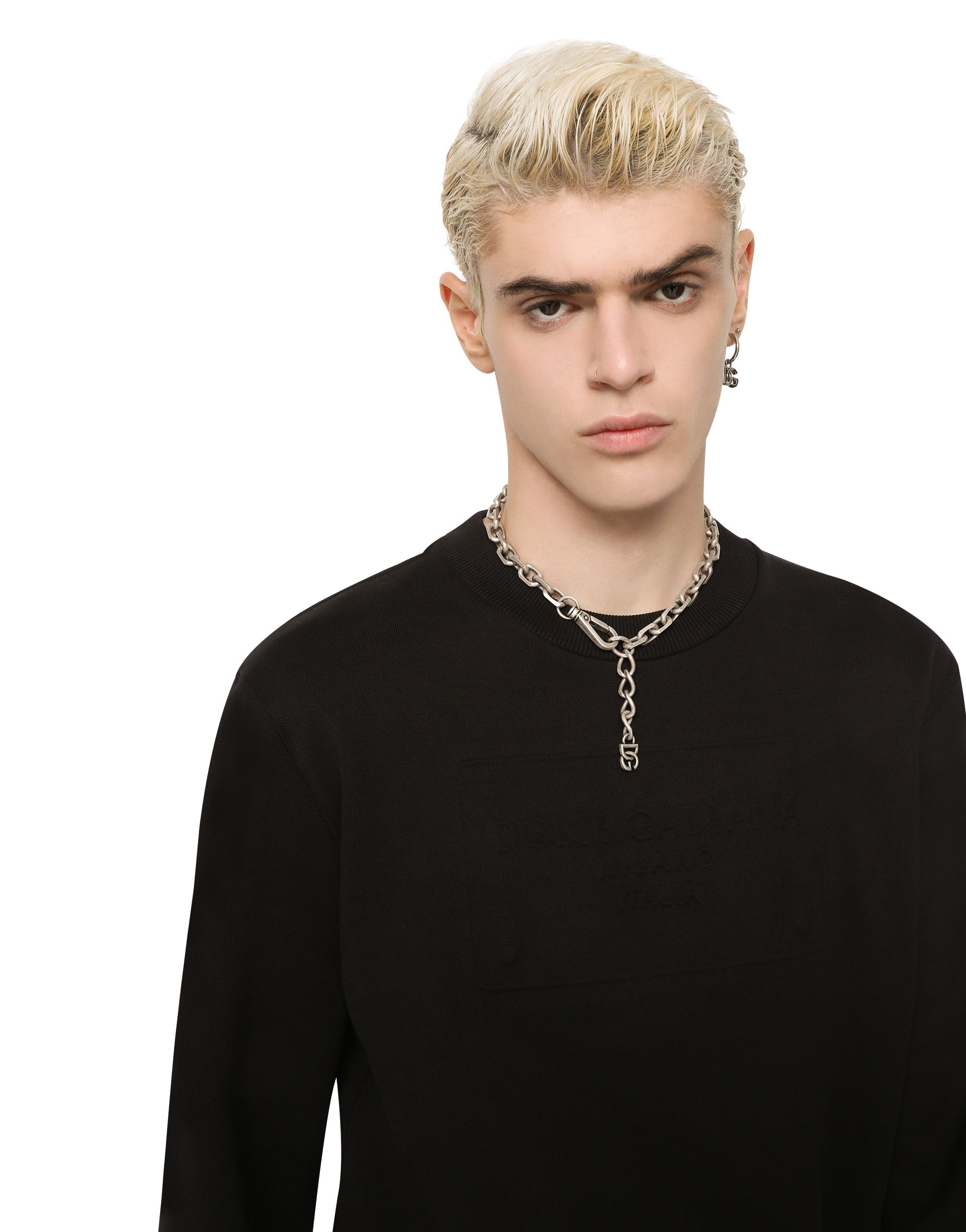 In the “Sport” Collection, basic clothing pieces become emancipated from their purely sporty function to become contemporary and unique everyday outfits. Round-neck technical jersey sweatshirt with embossed DG logo. • Regular fit • Stretch knit jacquard hem, neck and cuffs • The piece measures 68 cm from the rear collar seam on a size IT 48 • The model is 185 cm tall and wears a size IT 48 • Made in Italy