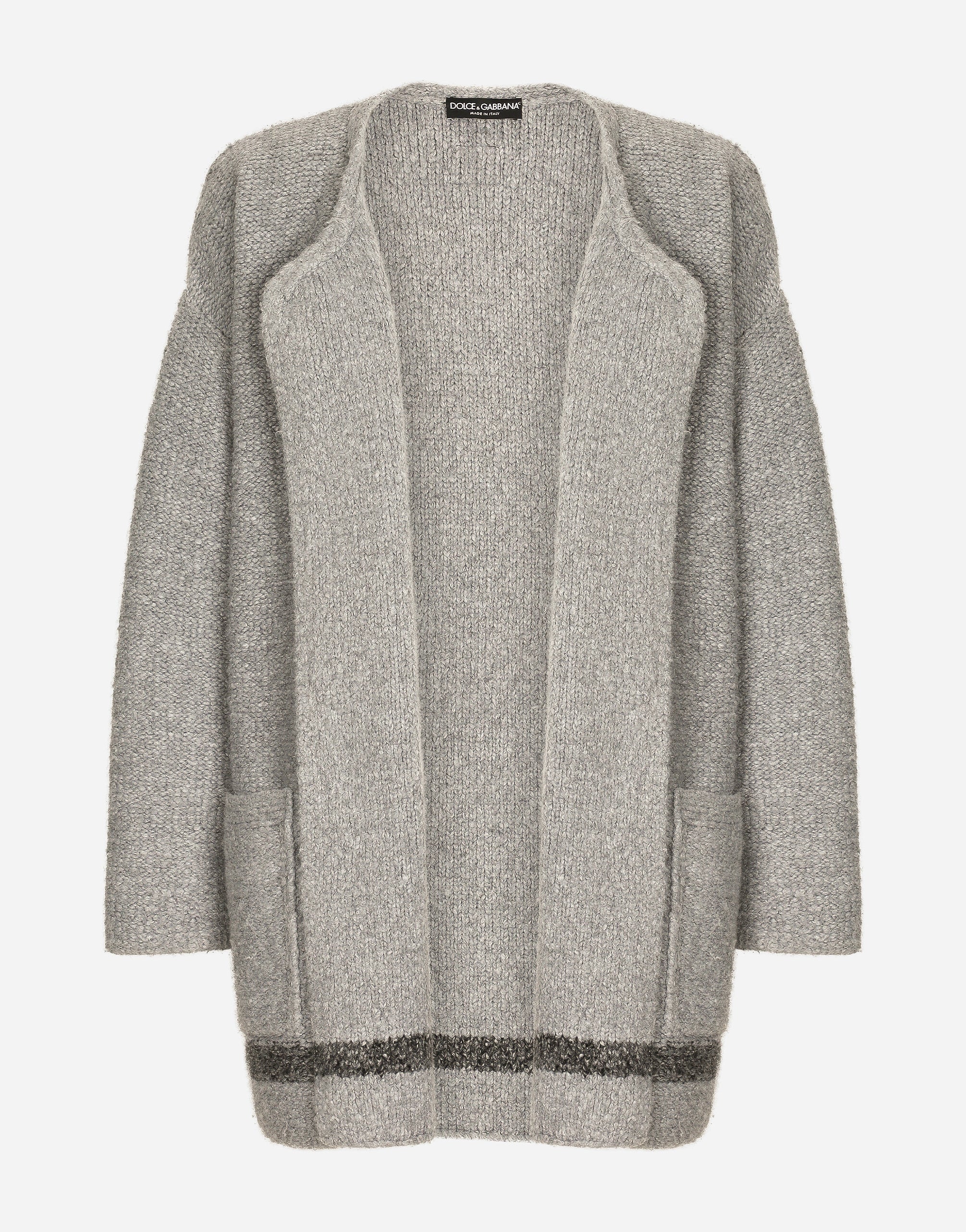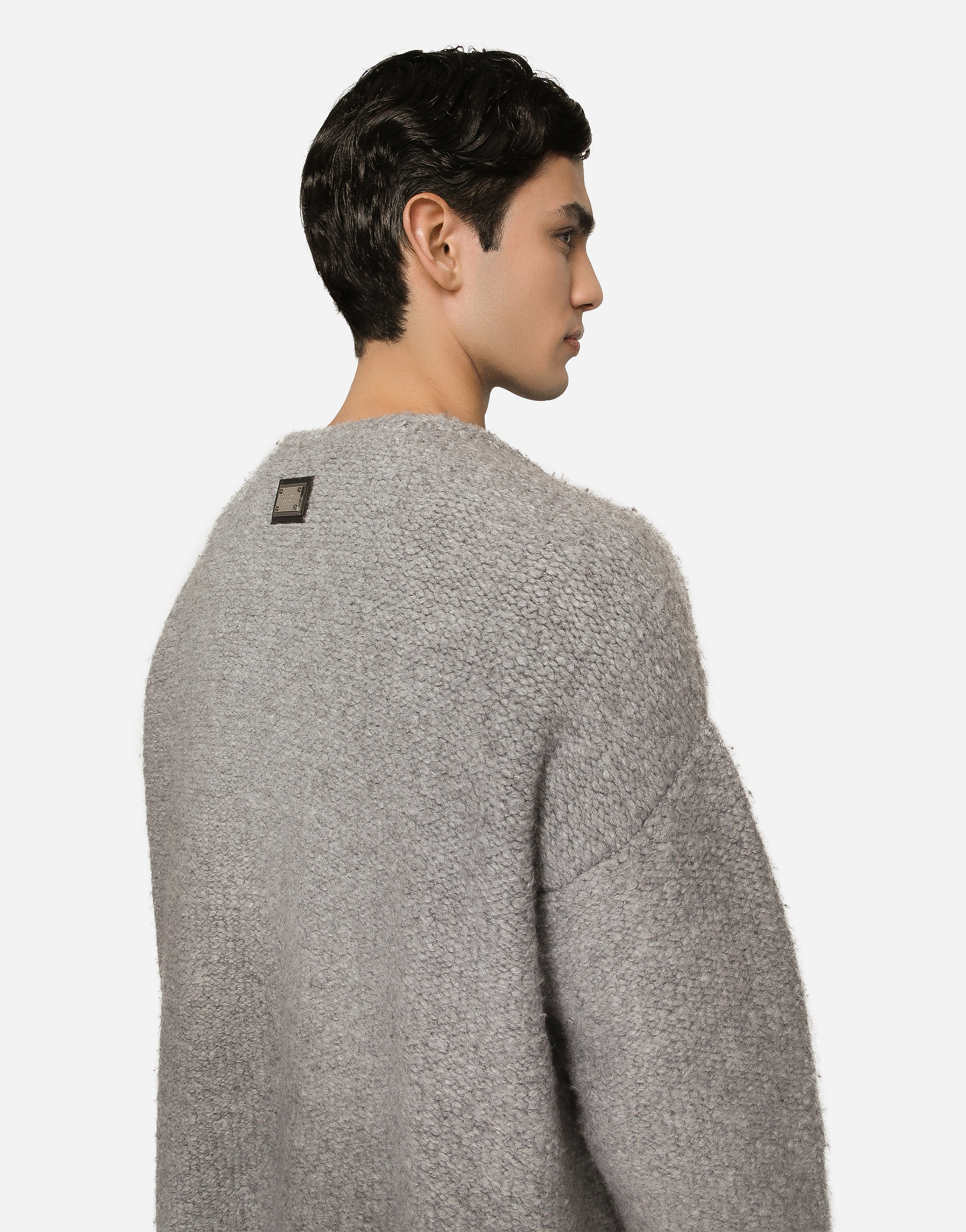 The pieces designed for FW23-24 represent the true essence of Dolce&Gabbana. They dominate with their pure volumes, tailored cut and new proportions. Coats, tops, white shirts, oversize pants, corset girdles and sash-bands that cinch the waist are reissues of the F/W 99-00 collection. Black, the absolute protagonist, which represents elegance, formality and seduction, has been translated into crystal embellishment that brings the wet volcanic stone of Etna and Stromboli to mind. Stretch technical wool round-neck cardigan with metal tag featuring the Dolce&Gabbana logo: • Oversize fit • Button fastenings • 3-gauge knit • Gray • The piece measures 80 cm from the shoulder seam on a size M • The model is 185 cm tall and wears a size M • Made in Italy