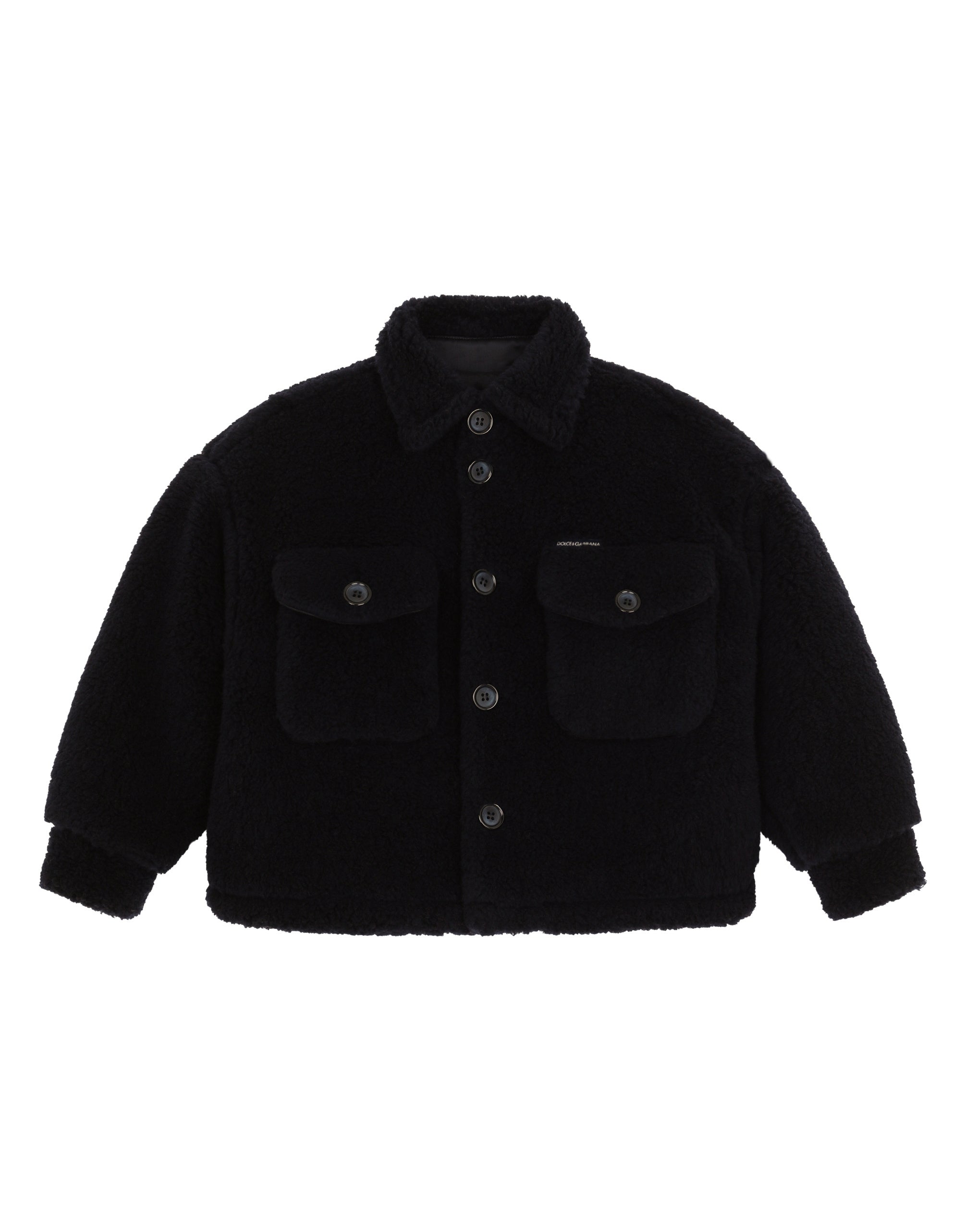 The Back To School capsule collection plays around with bold patterns and accents. colorful letters and numbers invent the new Algebra print, while tartan features on pieces with perfect varsity style, embellished by patches and branded appliqués. A fun and ironic look for comfortable and versatile pieces that are practical and functional. This warm blouson jacket with buttons and patch pockets has all the softness of a teddy bear. • Maxi-fit • Shirt collar • Long sleeves with shirt cuffs • Buttoned patch pockets on the front • Lined • Lightly padded • Button fastenings at the front • The item in the size 3 years measures 39 cm - 15.4 inches from the center back • Made in Italy